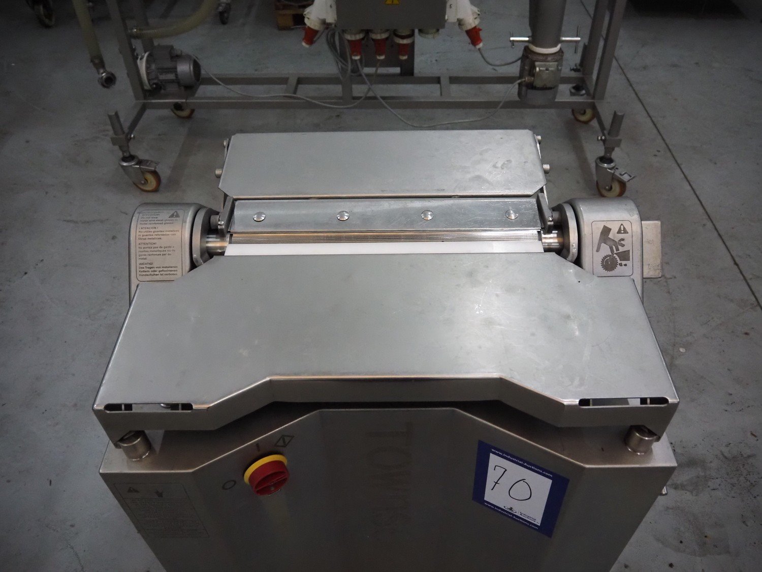 Townsend mobile skinning machine, model: 7620, number: 7710, year of construction: 2005, 380 V, 3 Ph, 50 Hz, working width: 510 mm, total dimensions: 980 mm x 990 mm x 1000 mm. Kavel locatie: Denariusstraat 20, 4903 RC Oosterhout, Nederland