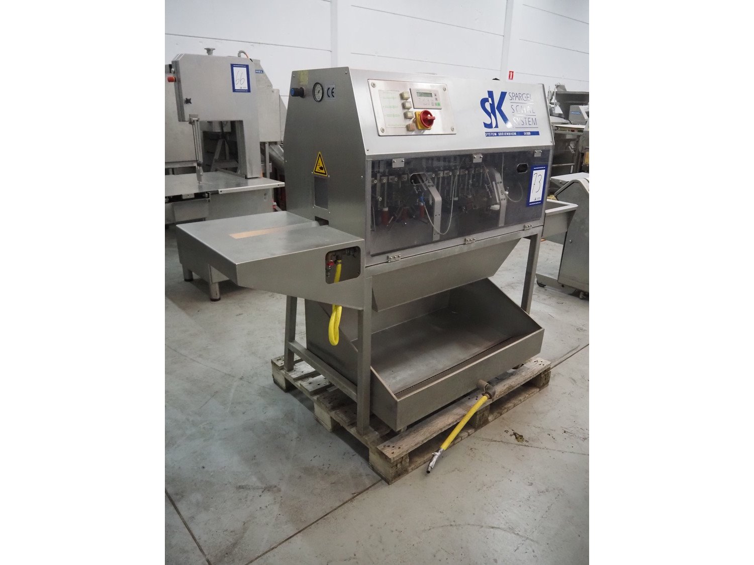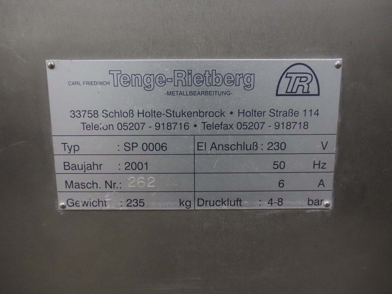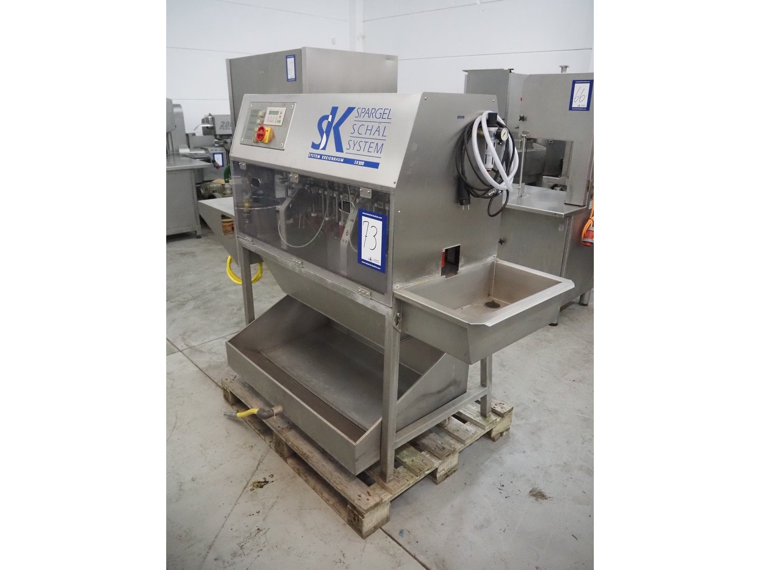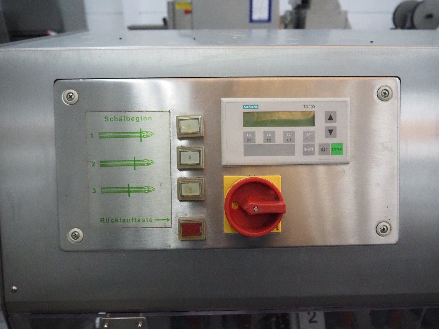 Tenge-Rietberg mobile industrial asparagus peeling machine, type: SP 0006, machine number: 262, year of construction: 2001, 230 V, 50 Hz, 6 A, 235 kg, 4-8 bar, dimensions: 2020 mmx 1000 mm x 1500 mm. Kavel locatie: Denariusstraat 20, 4903 RC Oosterhout, Nederland
