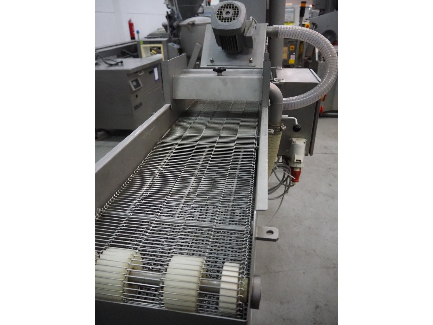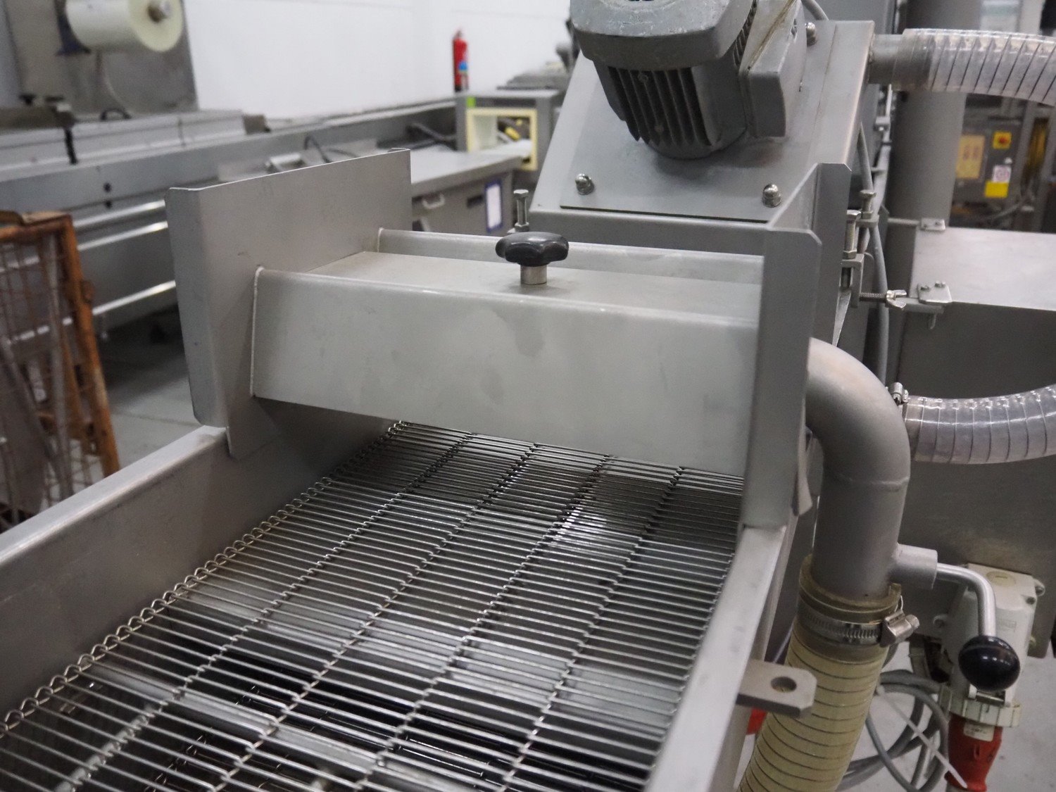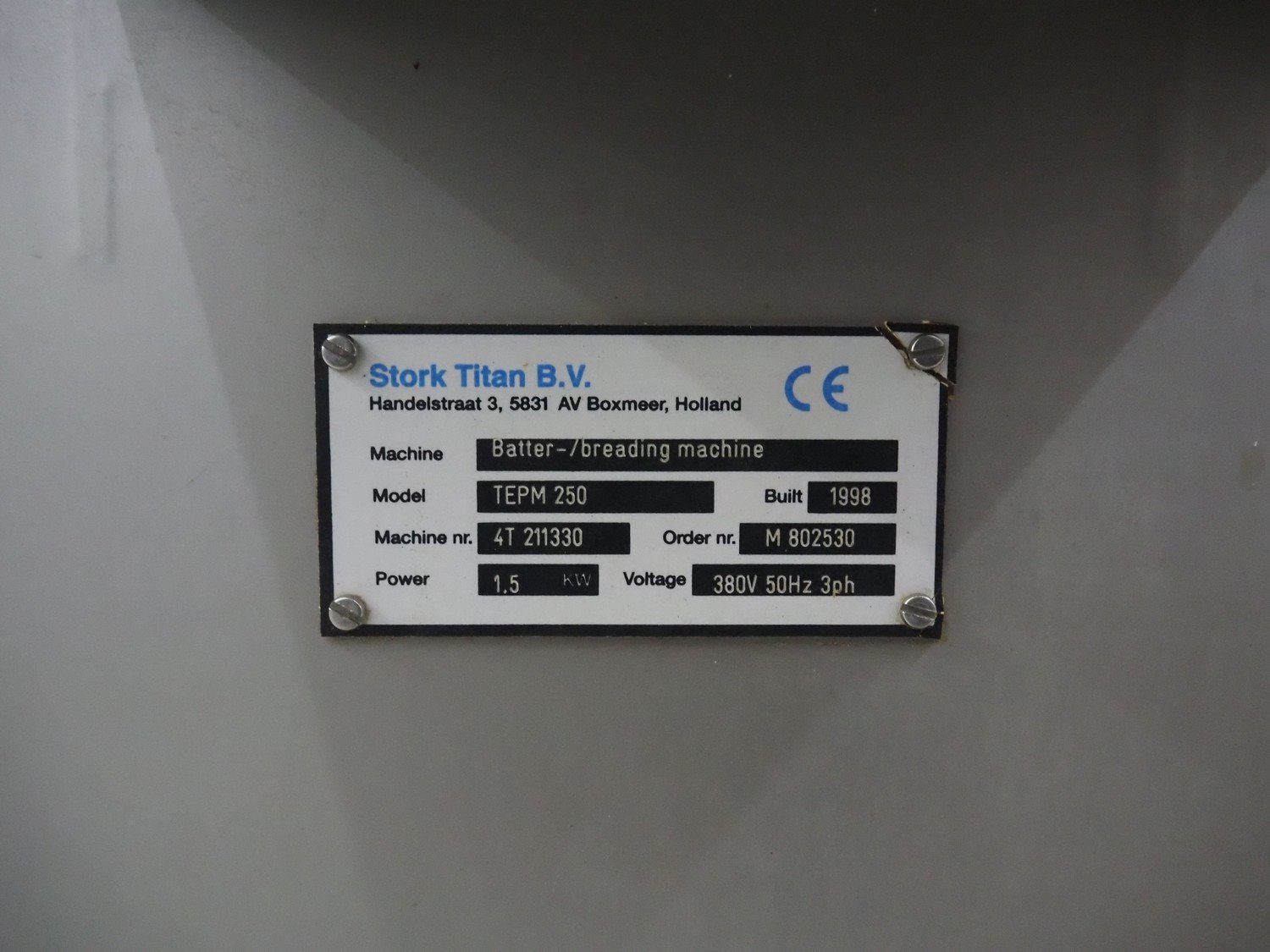 Stork Titan B.V. mobile breading machine, model: TEPM 250, machine number: 4T 211330, year of construction: 1998, 380 V, 3 Ph, 50 Hz, 1.5 kW, s/s mesh belt, belt width: 250 mm, total dimensions: 2500 mm x 700 mm x 1670 mm. Kavel locatie: Denariusstraat 20, 4903 RC Oosterhout, Nederland