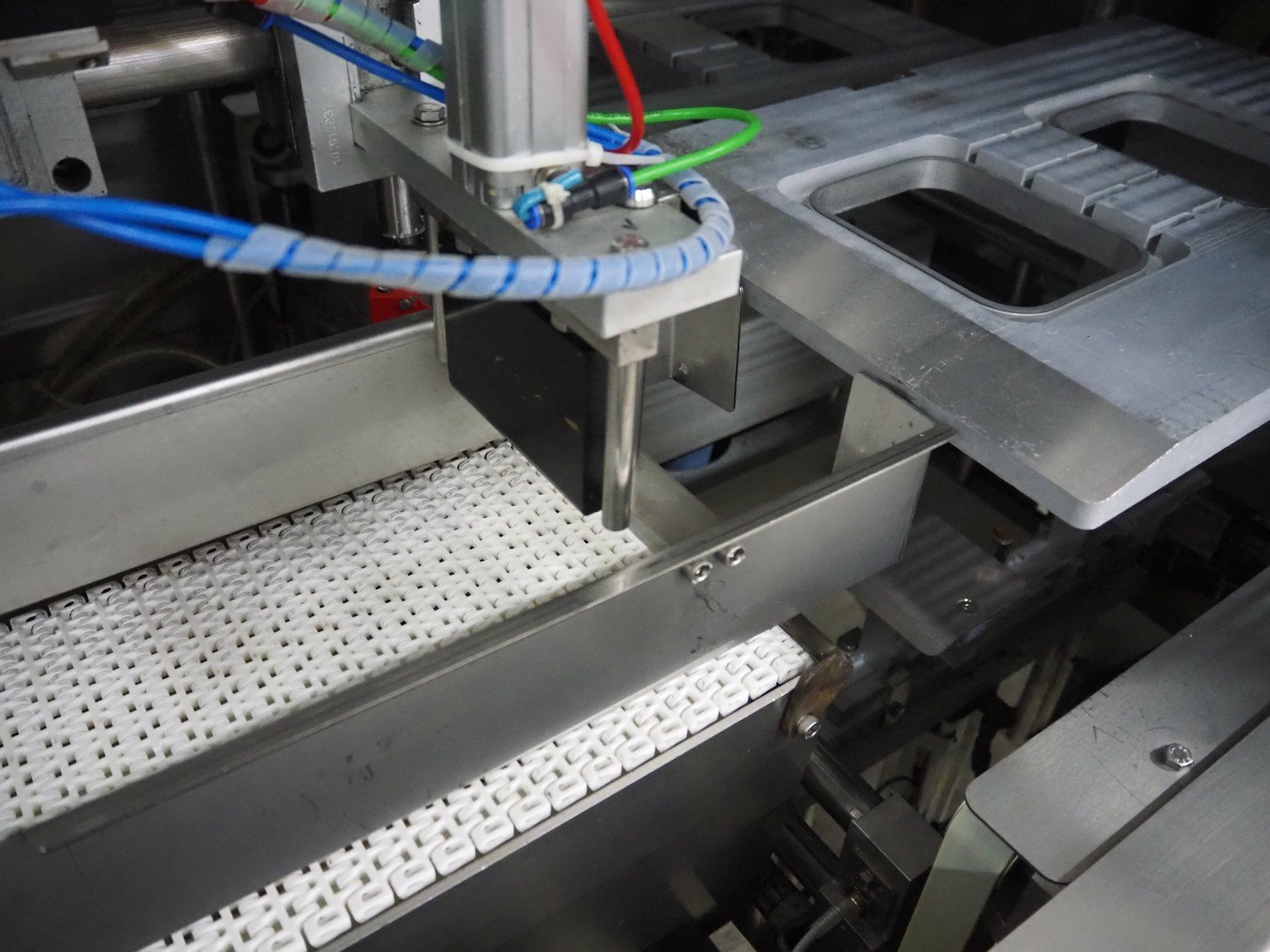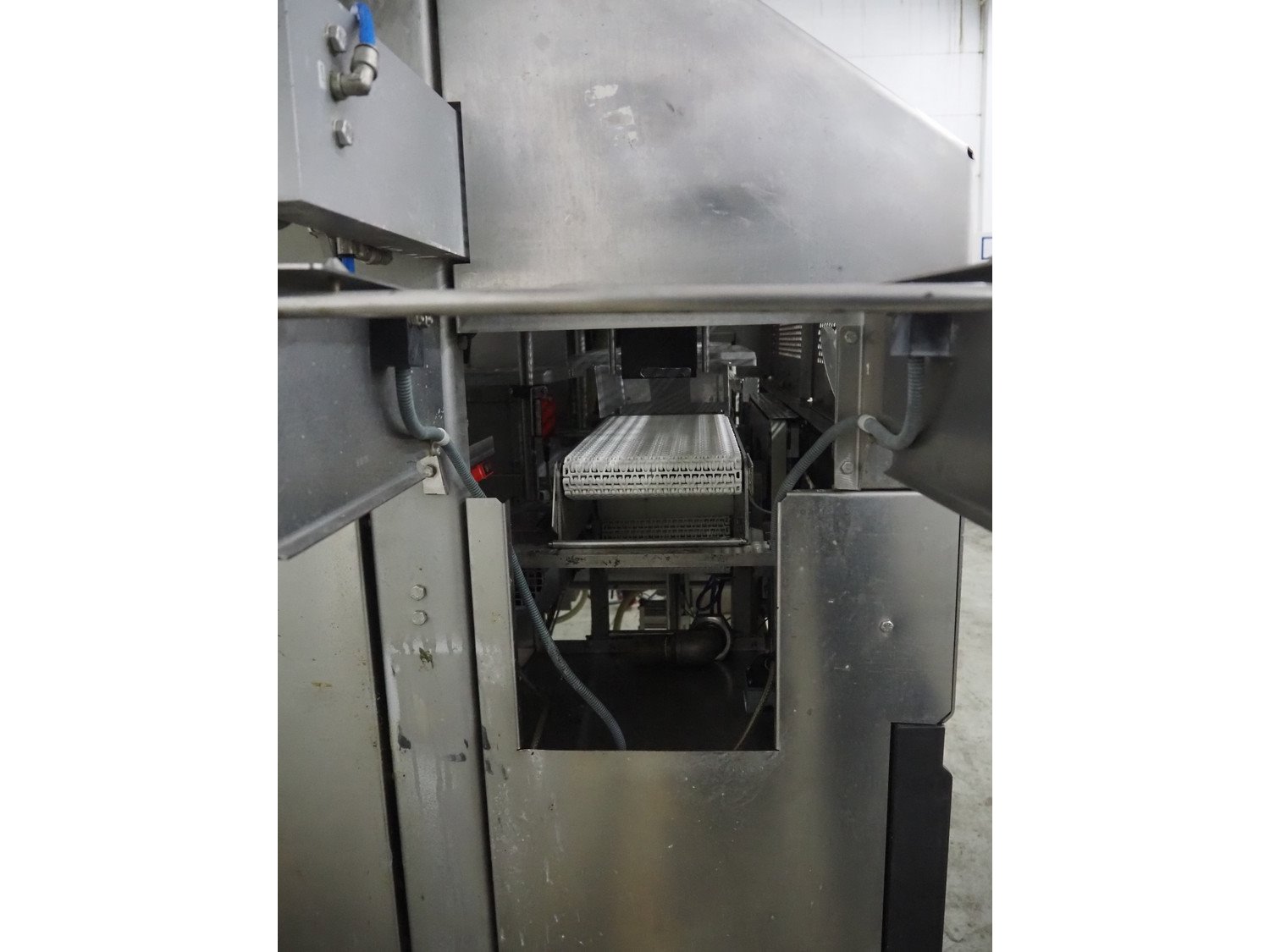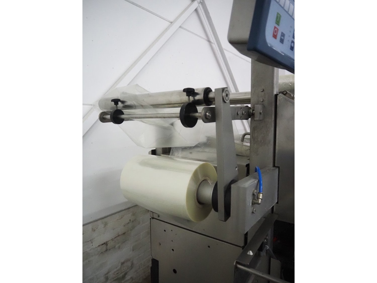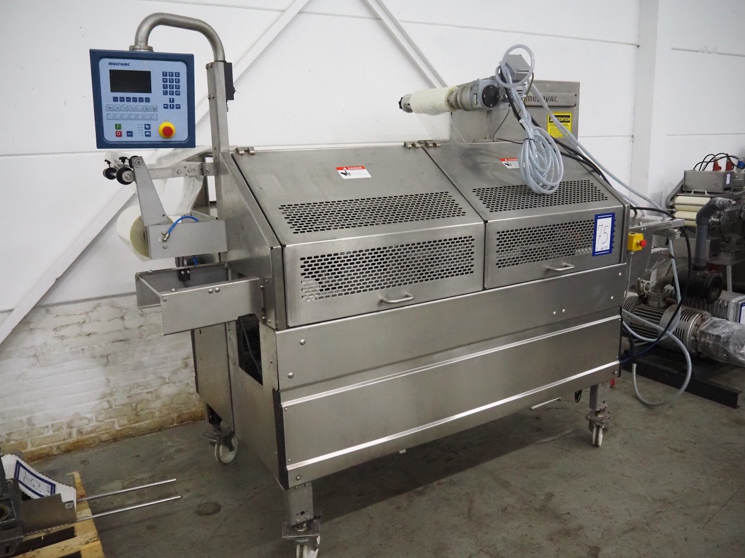Multivac mobile traysealer, type: T350, serial number: 15, year of construction: 2004, 400 V, 3 Ph, 50 Hz, 30 A, 7.5 kW, film width: 280 mm, plastic mesh belt, belt width: 200 mm, dimensions dye: (2x) 135 mm x 170 mm, total dimensions: 3900 mm x 1200 mm x 2100 mm. Including Busch vacuum pump, type: RA 0250 D 5ZI ONXX, capacity: 250 m³ per hour. Kavel locatie: Denariusstraat 20, 4903 RC Oosterhout, Nederland