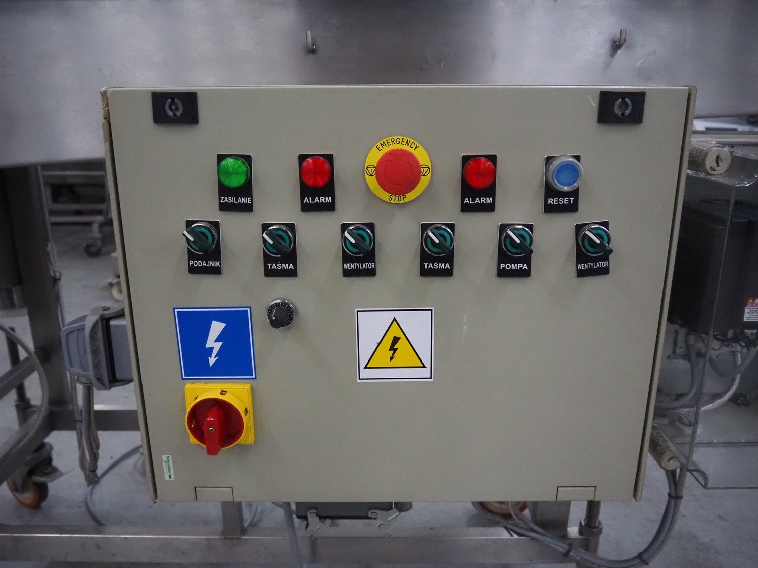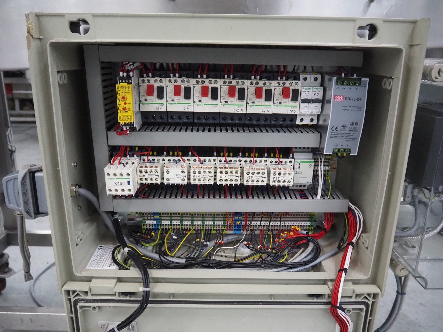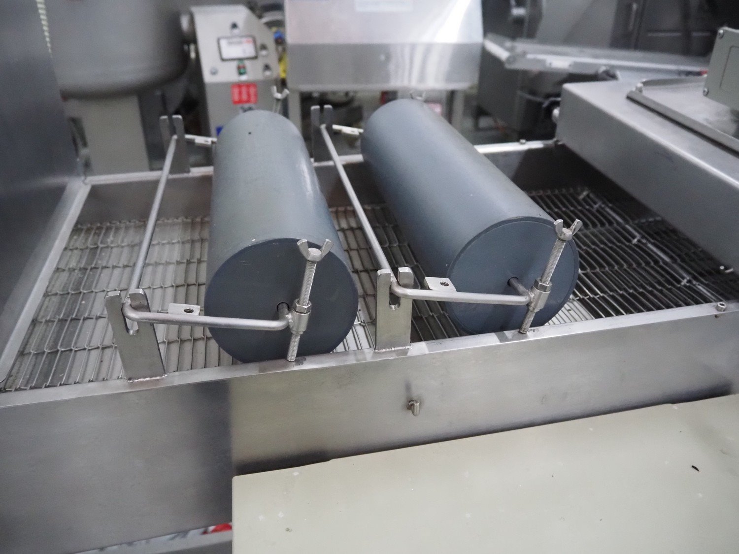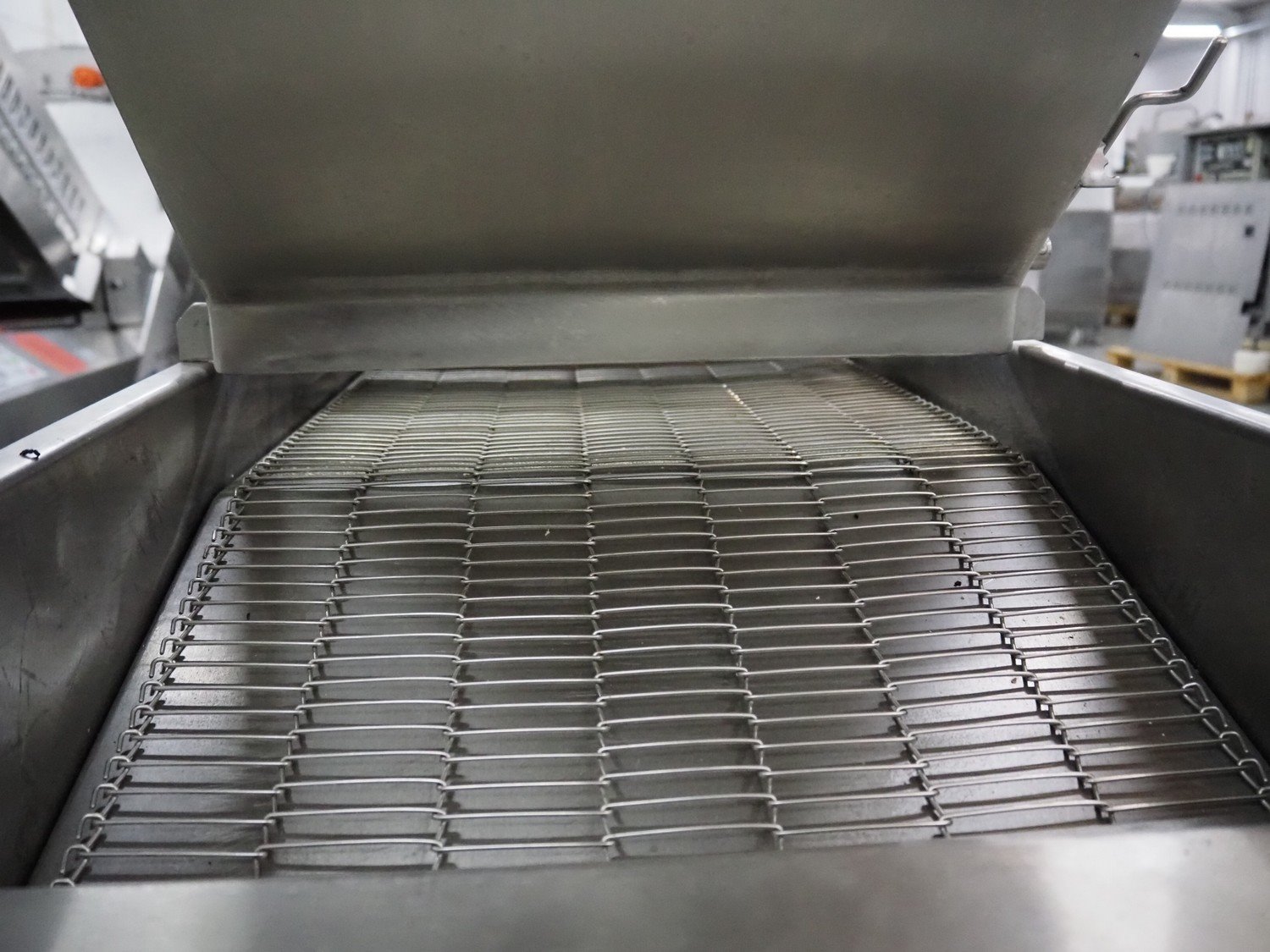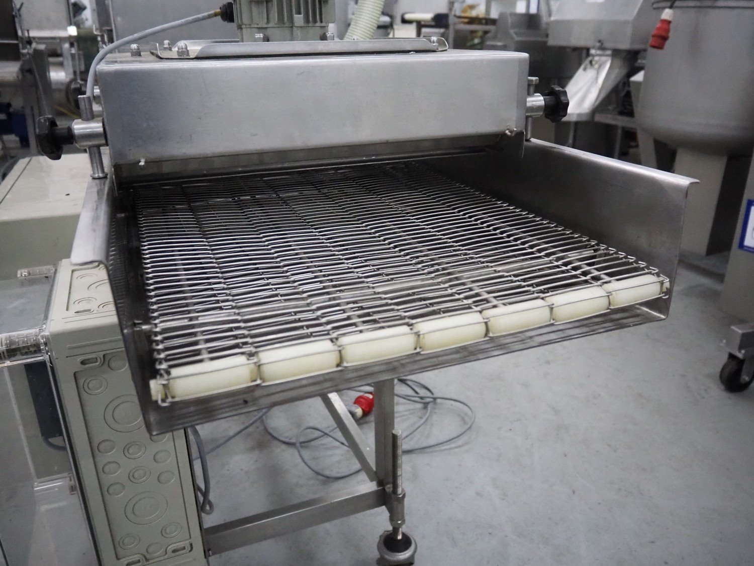 S/s mobile breading machine, s/s mesh belt, belt width: 400 mm, plastic rollers, roller width: 400 mm, total dimensions: 1820 mm x 620 mm x 2150 mm. Kavel locatie: Denariusstraat 20, 4903 RC Oosterhout, Nederland