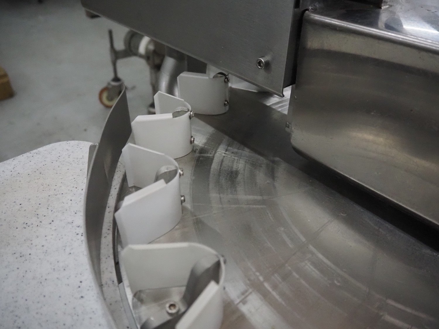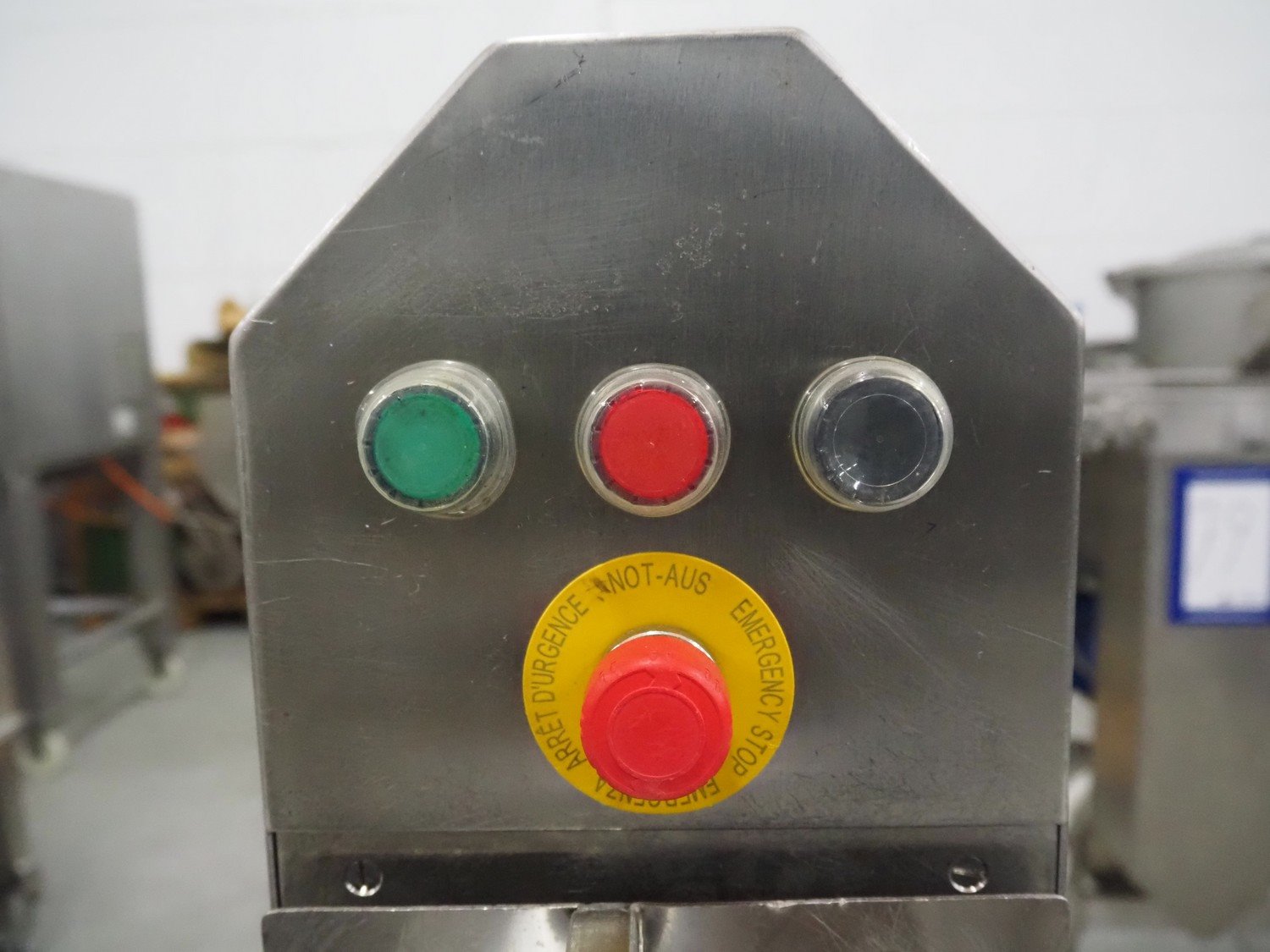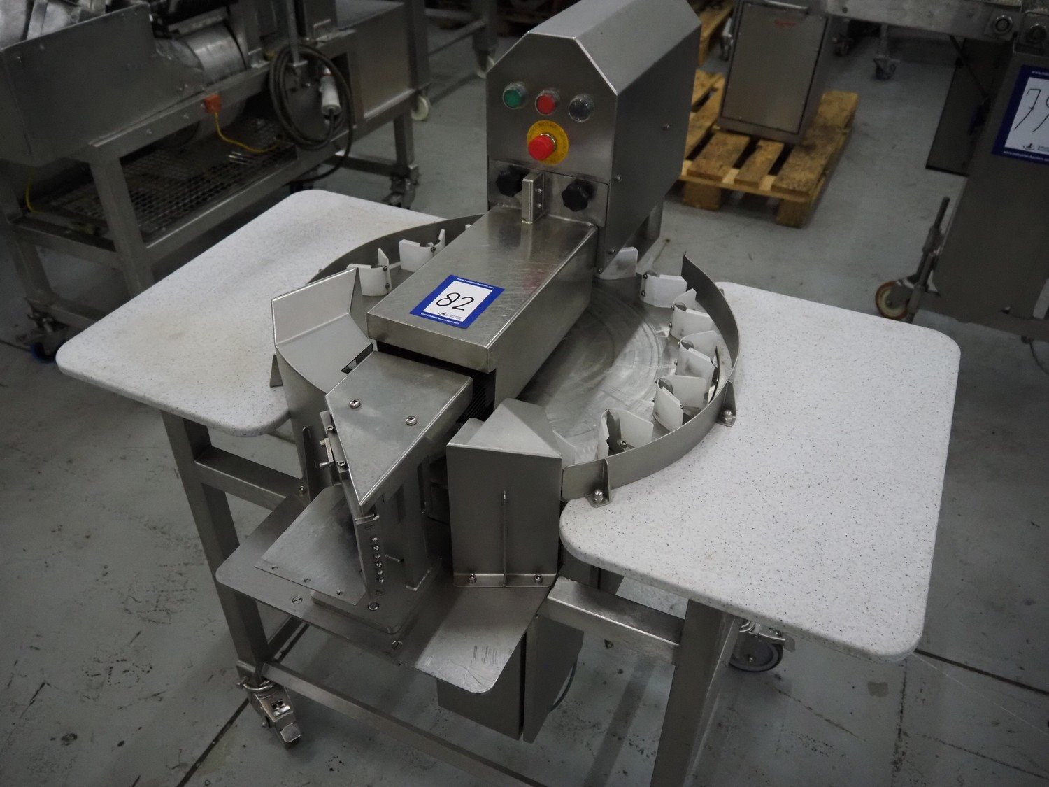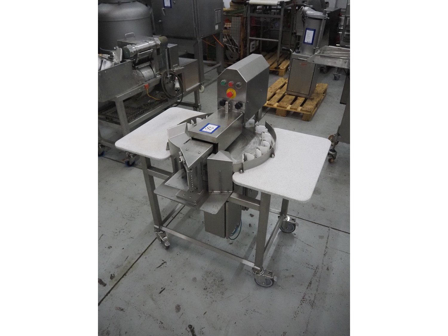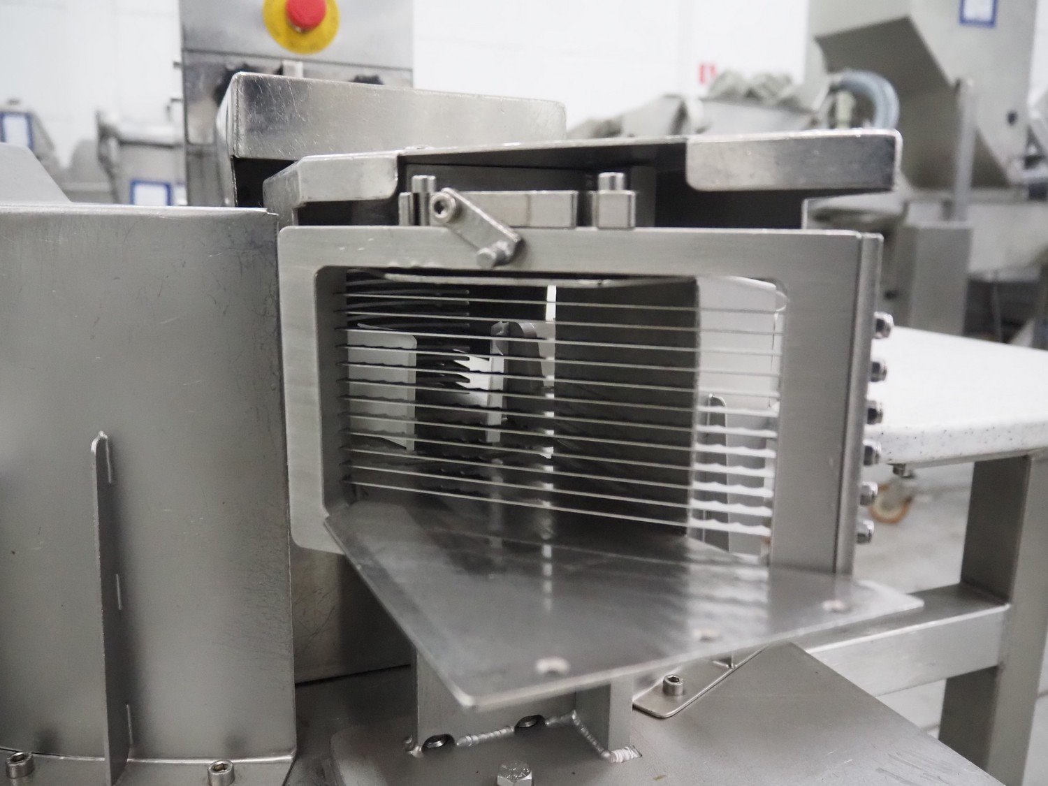 Kronen mobile automatic tomato slicer, working width: 75 mm, distance between knives: 6 mm, total dimensions: 1200 mm x 1000 mm x 1200 mm. Kavel locatie: Denariusstraat 20, 4903 RC Oosterhout, Nederland
