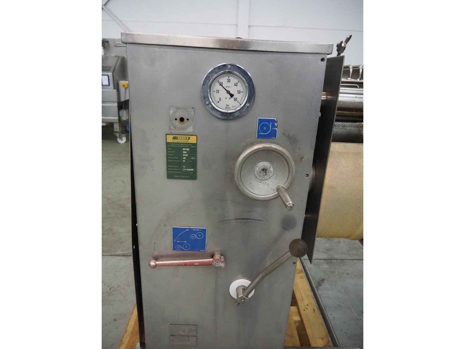 Baader separator, type: 603-508, number: 121297, year of construction: 2004, 400 V, 3 Ph, 50 Hz, perforations: Ø 2 mm, total dimensions: 1100 mm x 1250 mm x 1600 mm. Kavel locatie: Denariusstraat 20, 4903 RC Oosterhout, Nederland