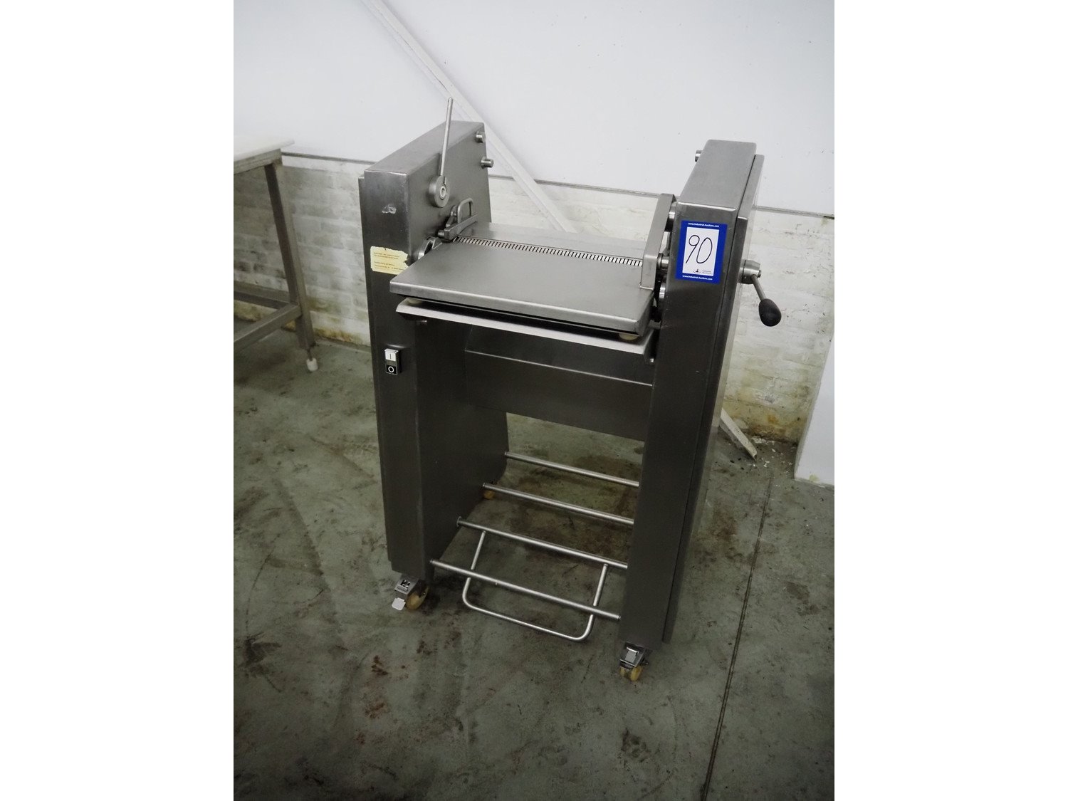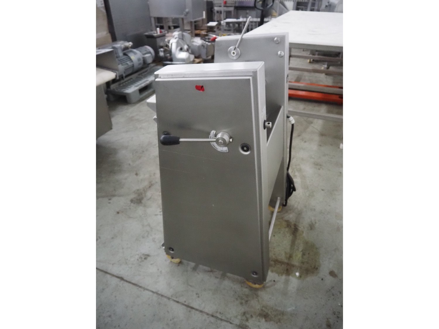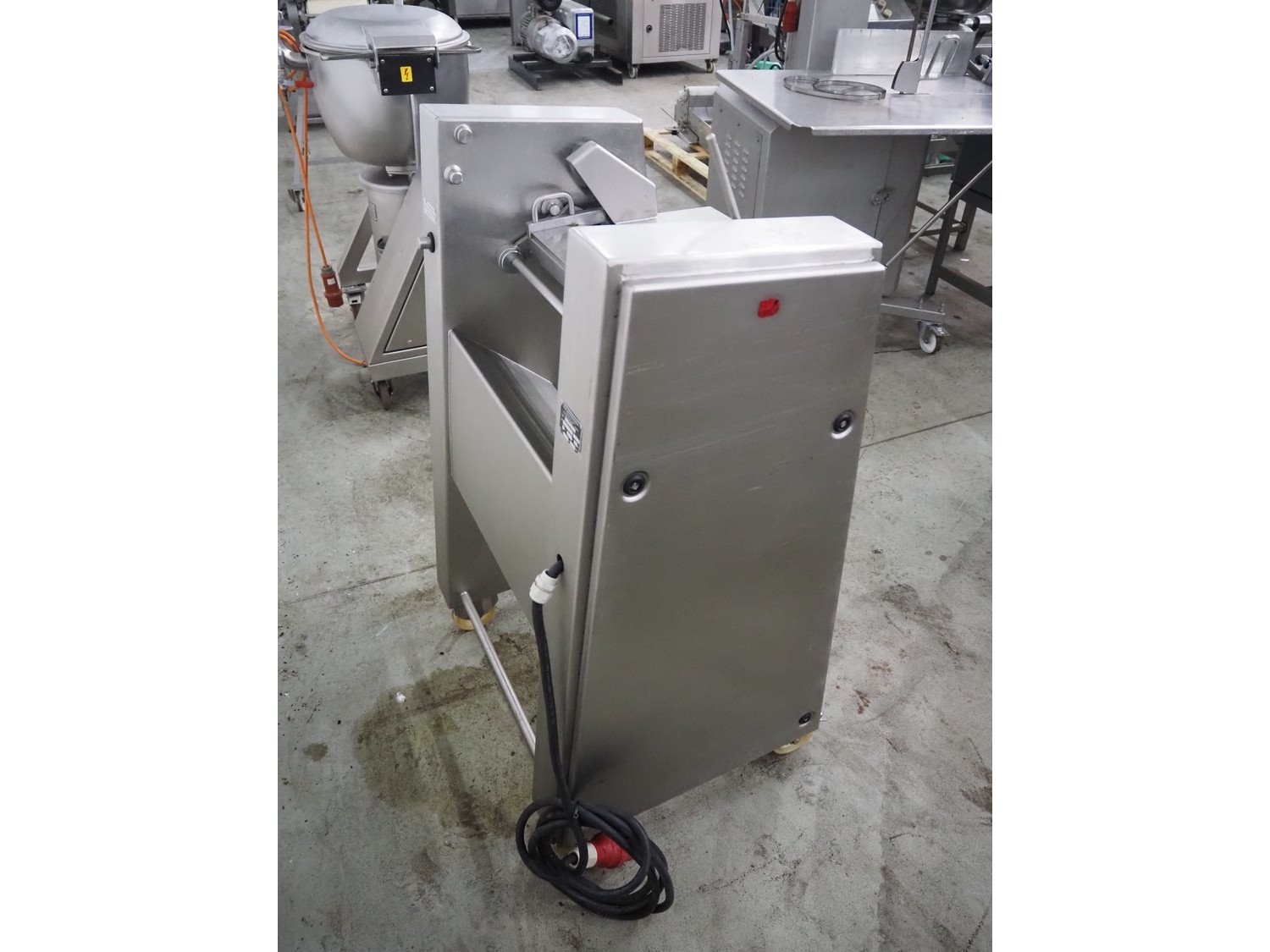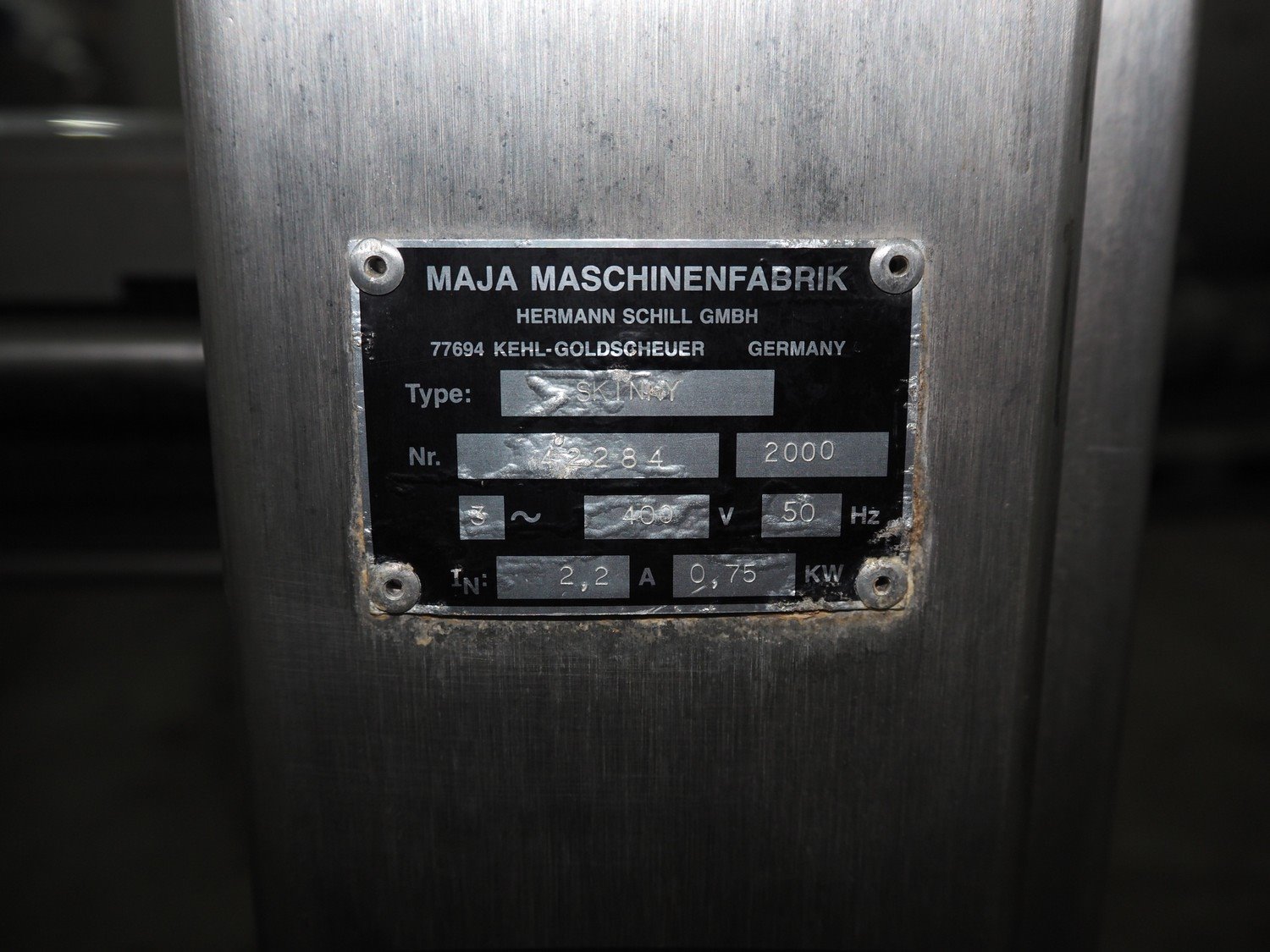Maja-Maschinenfabrik mobile skinning machine, type: Skinny, serial number: 42284, year of construction: 2000, 400 V, 3 Ph, 50 Hz, 2.2 A, 0.75 kW, working width: 425 mm, total dimensions: 830 mm x 600 mm x 1200 mm. Kavel locatie: Denariusstraat 20, 4903 RC Oosterhout, Nederland