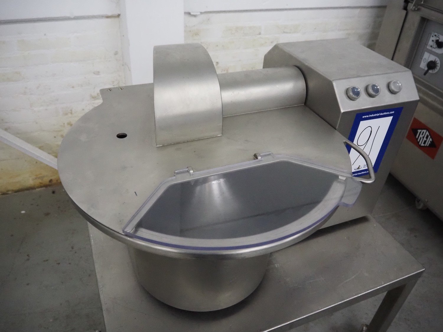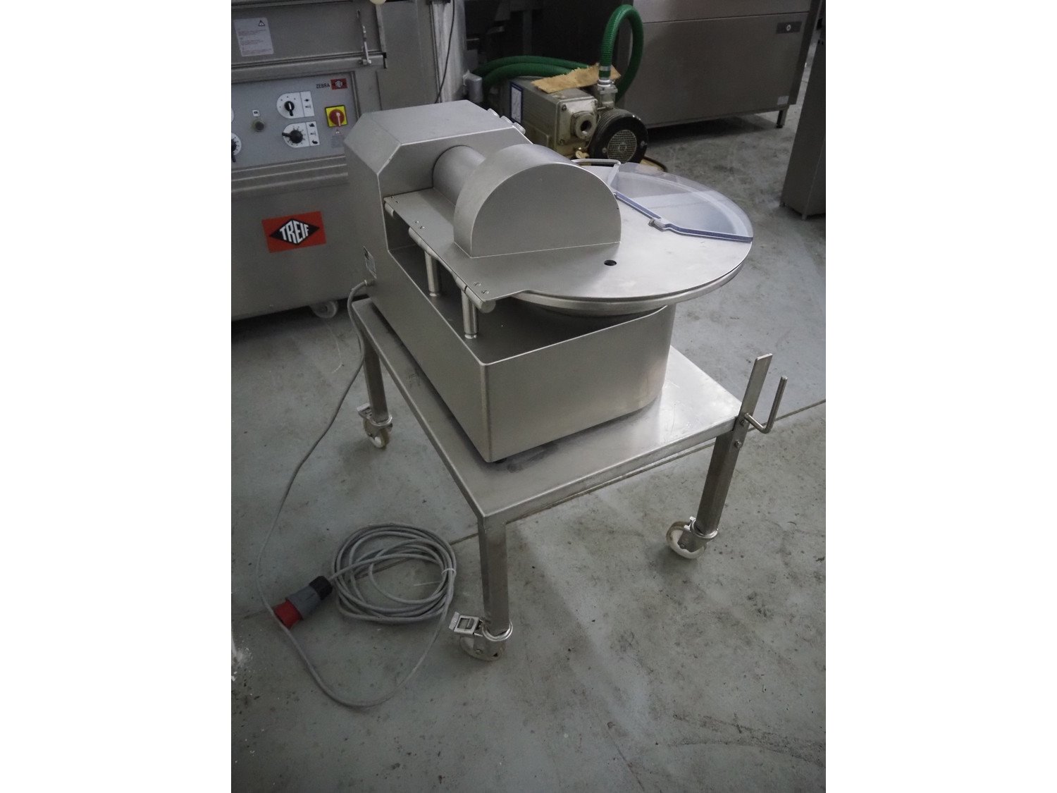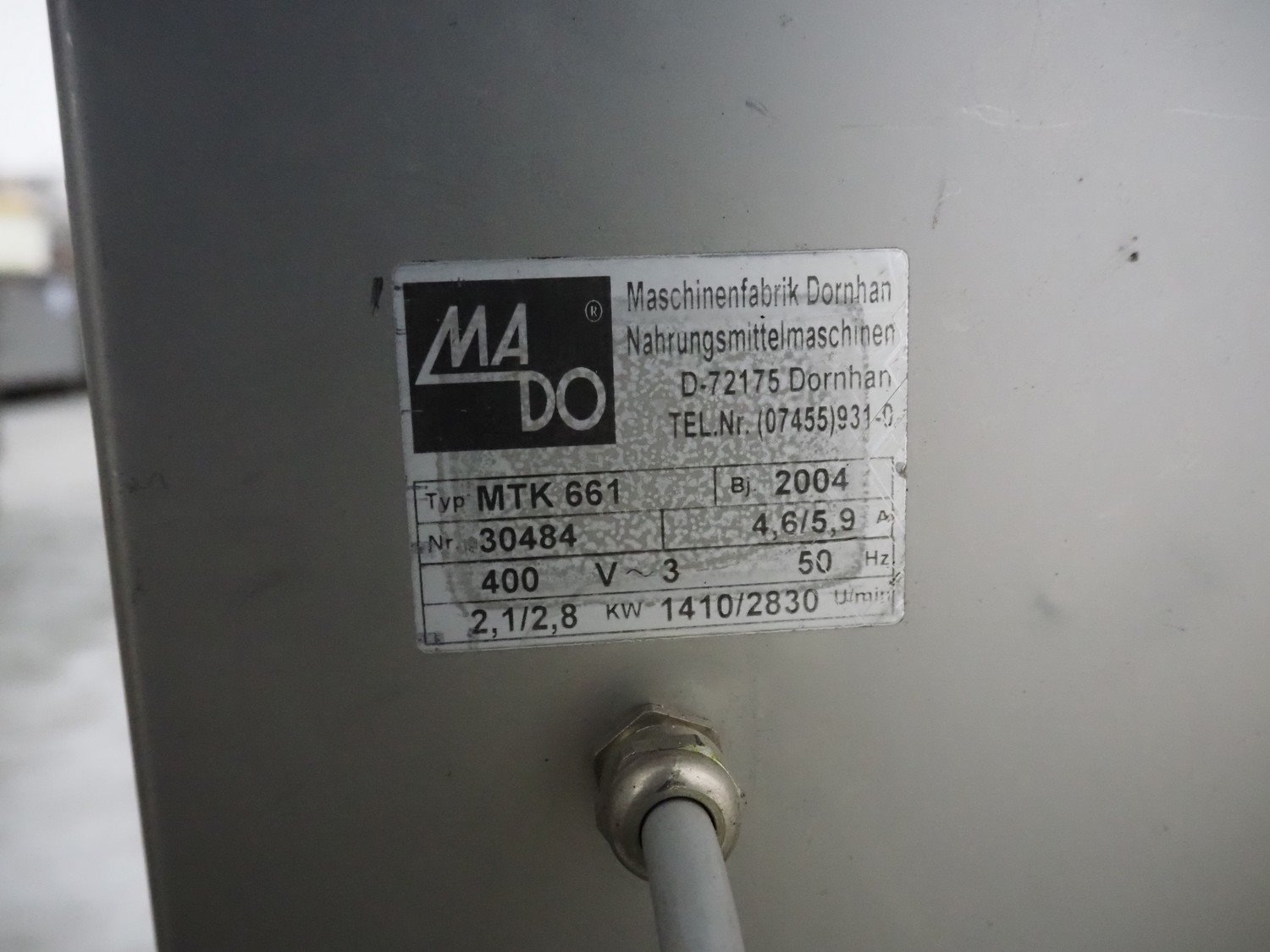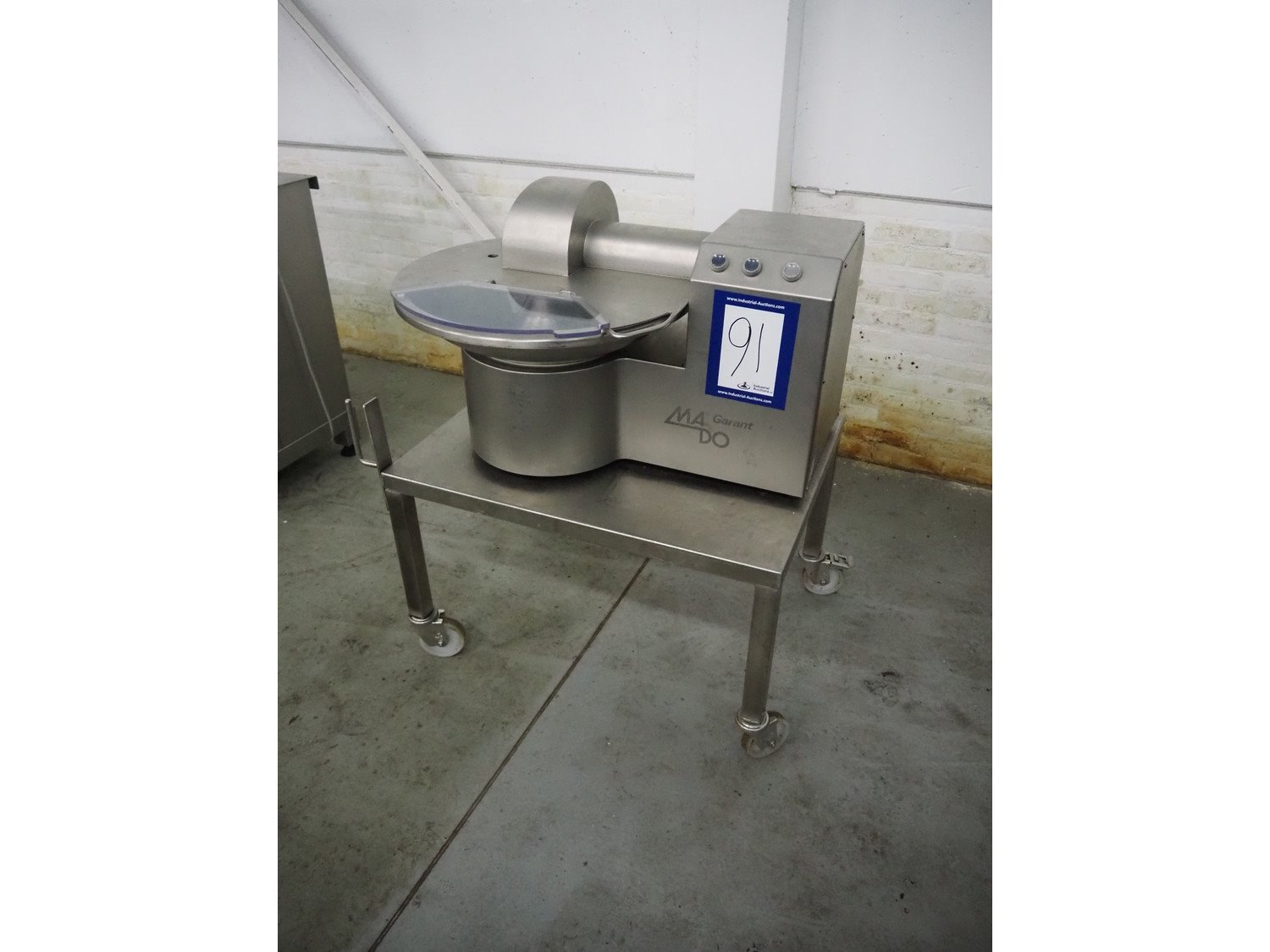 Mado cutter on s/s mobile table, type: MTK 661, number: 30484, year of construction: 2004, 400 V, 3 Ph, 50 Hz, 4.6/5.9 A, 2.1/2.8 kW, s/s bowl, diameter bowl: 500 mm, total dimensions: 900 mm x 600 mm x 1050 mm. Kavel locatie: Denariusstraat 20, 4903 RC Oosterhout, Nederland