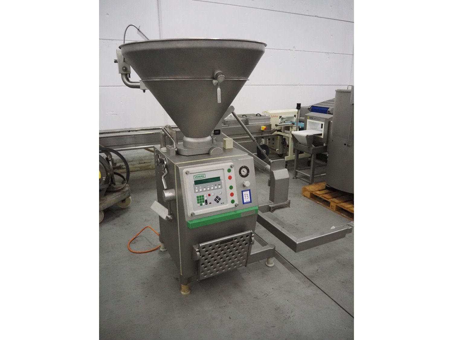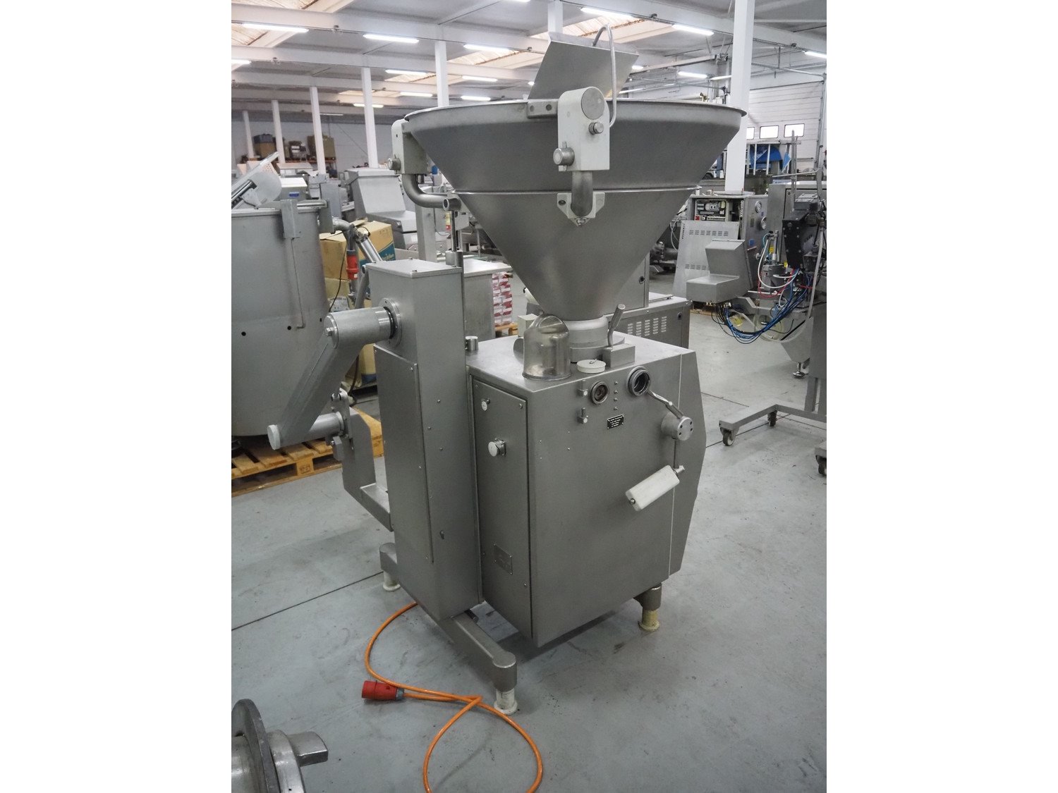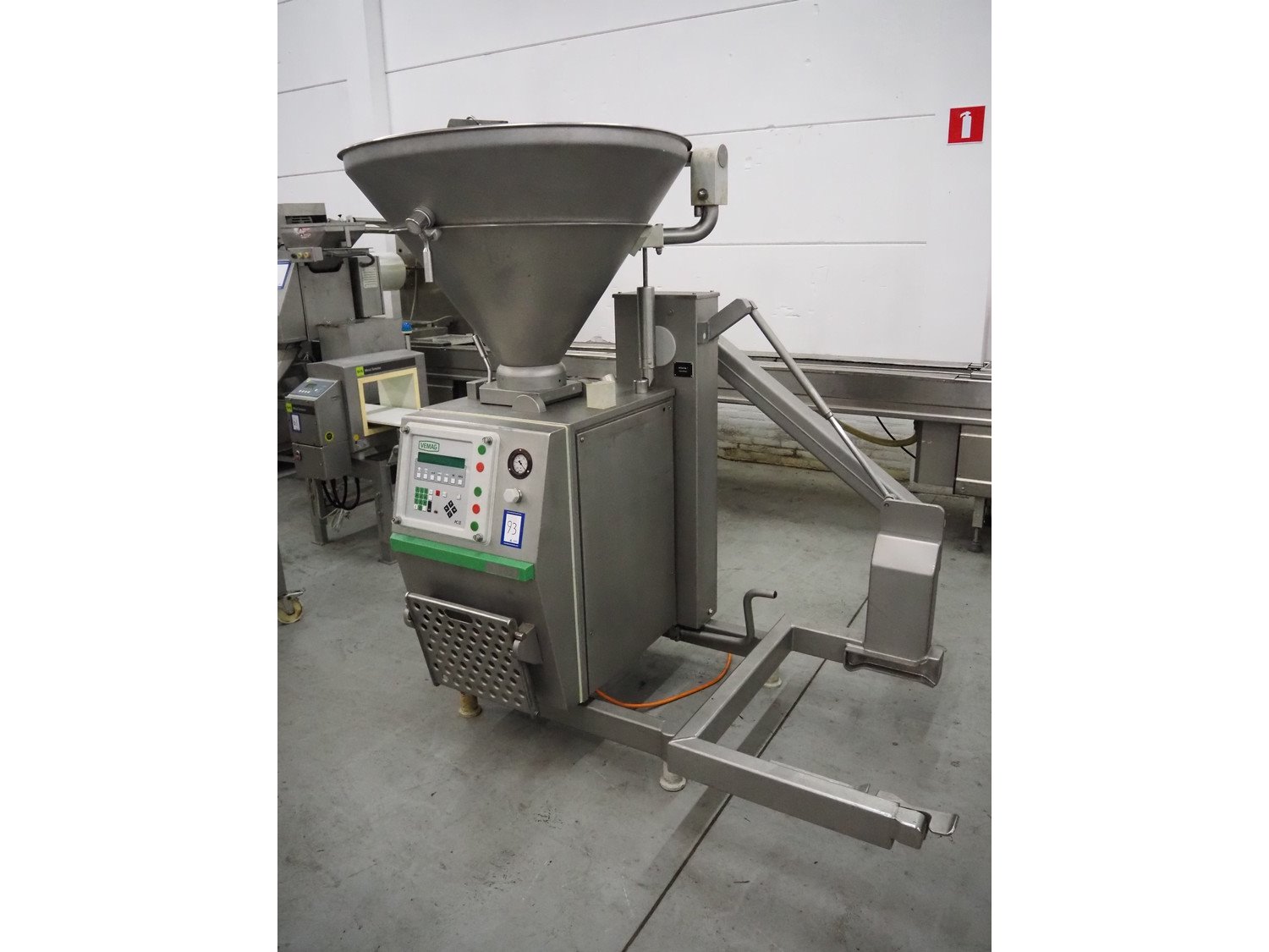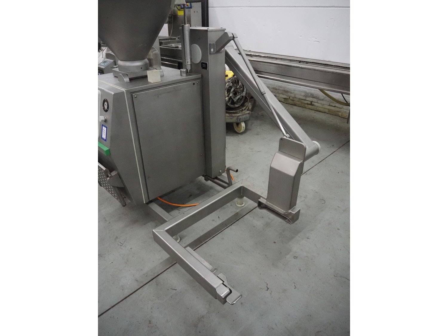 Vemag vacuum filling machine with lifter for 200 liter meat bins, model: Robby 2, type: 135, number: 1350478, year of construction: 2000, Busch vacuum pump, type: KC 0016 E 320, number: 140020158, year of construction: 2014, capacity: 16/19 m³ per hour, dimensions: 1800 mm x 1300 mm x 2000 mm. Kavel locatie: Denariusstraat 20, 4903 RC Oosterhout, Nederland