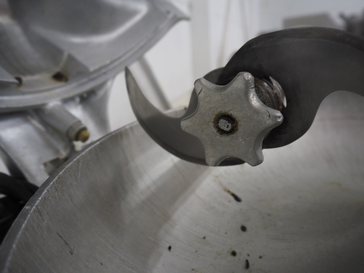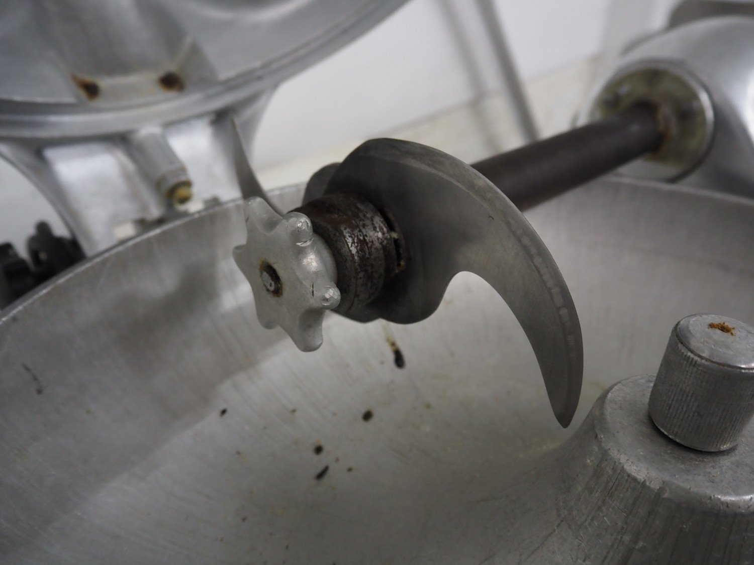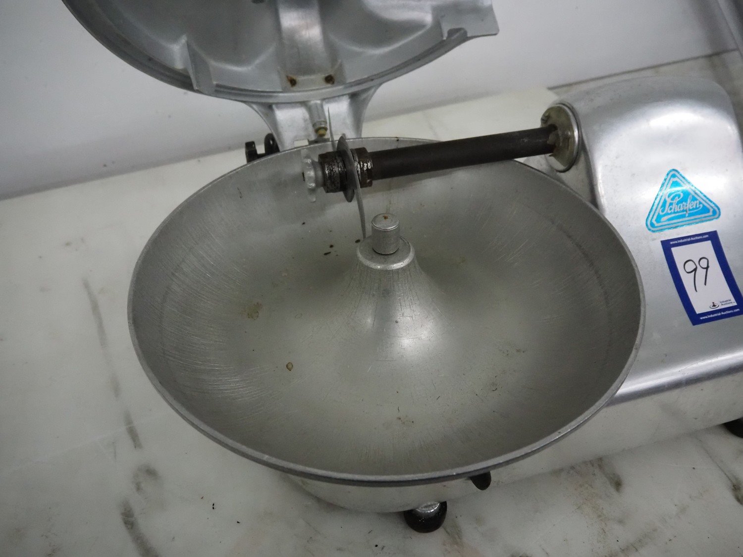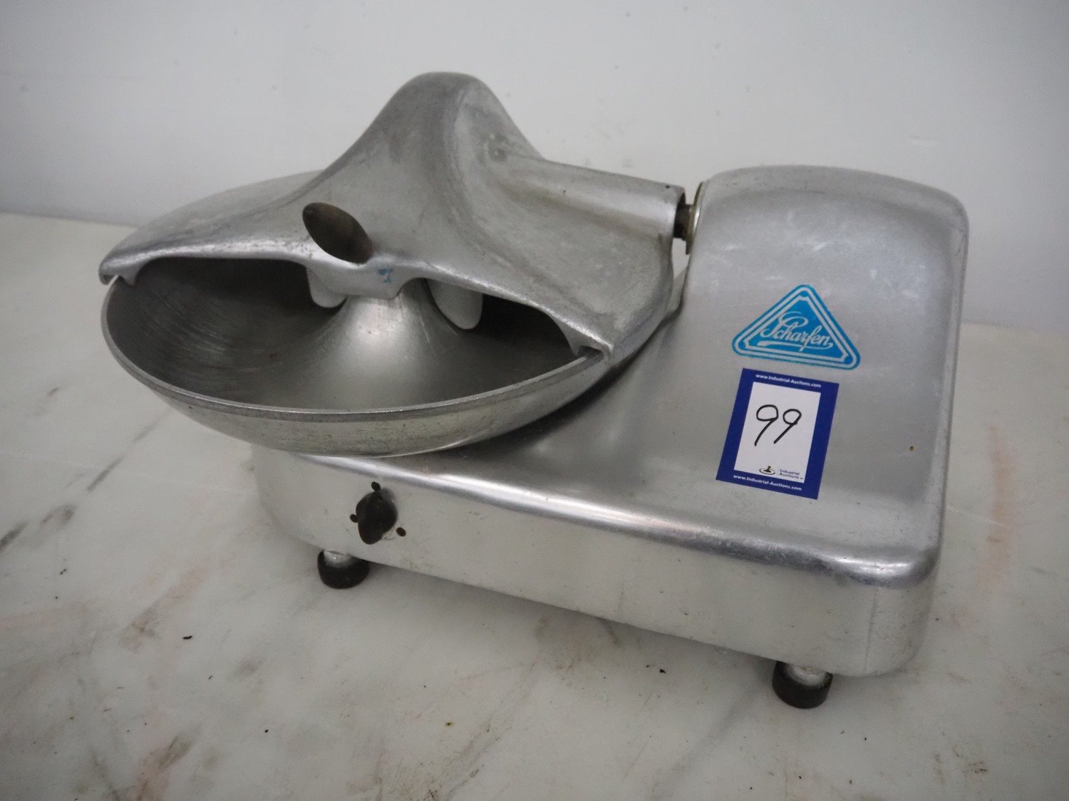 Scharfen cutter, s/s bowl, bowl dimensions: Ø 465 mm x 90 mm, total dimensions: 700 mm x 550 mm x 420 mm. Kavel locatie: Denariusstraat 20, 4903 RC Oosterhout, Nederland