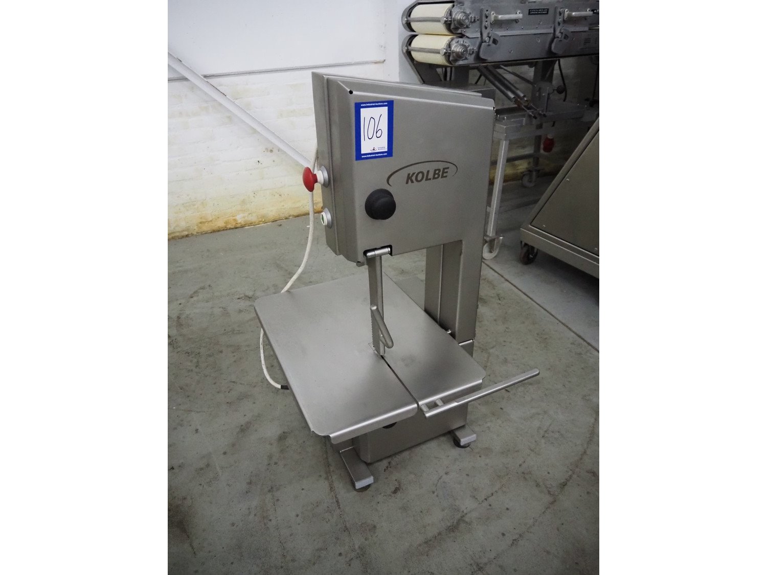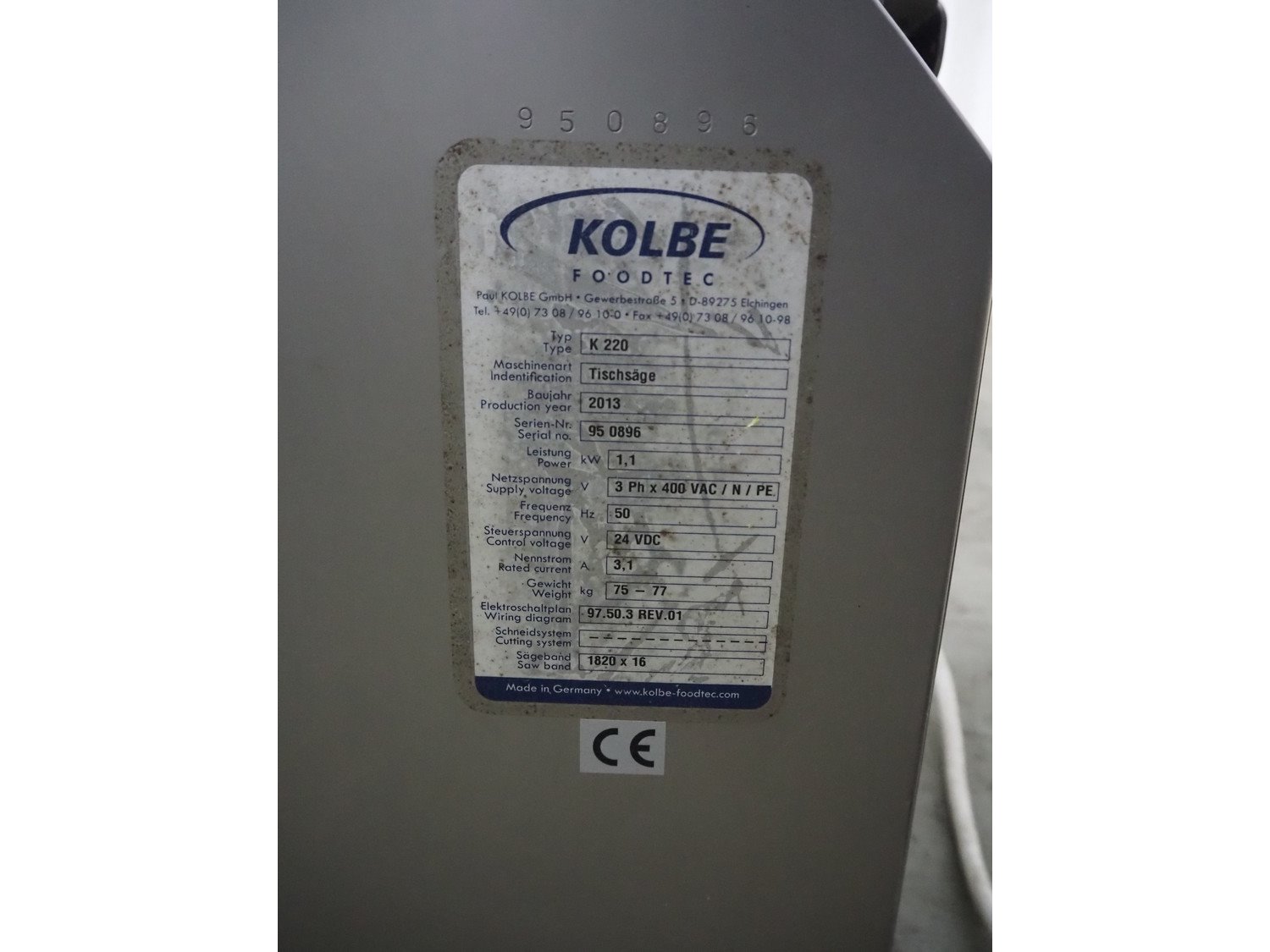 Kolbe s/s bandsaw, type: K 220, serial number: 95 0896, year of construction: 2013, 400 V, 3 Ph, 50 Hz, 3.1 A, 1.1 kW, 77 kg, table dimensions: 580 mm x 410 mm, total dimensions: 630 mm x 500 mm x 1000 mm. Kavel locatie: Denariusstraat 20, 4903 RC Oosterhout, Nederland