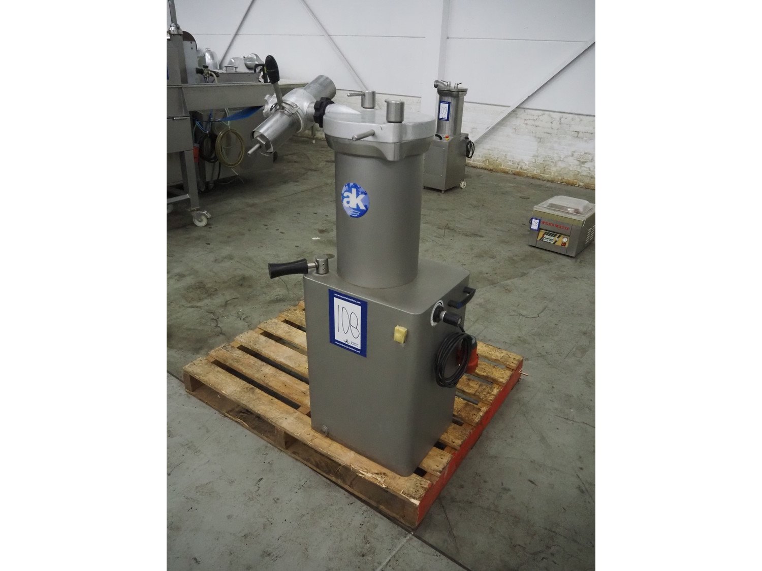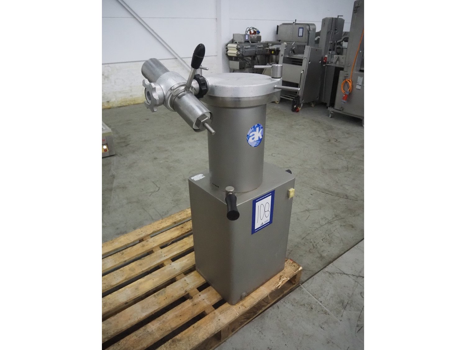 Ramon piston filler, model: 20, 400 V, 3 Ph, 50 Hz, 1500 rpm, volume: 20 liter, total dimensions: 750 mm x 500 mm x 1300 mm. Kavel locatie: Denariusstraat 20, 4903 RC Oosterhout, Nederland