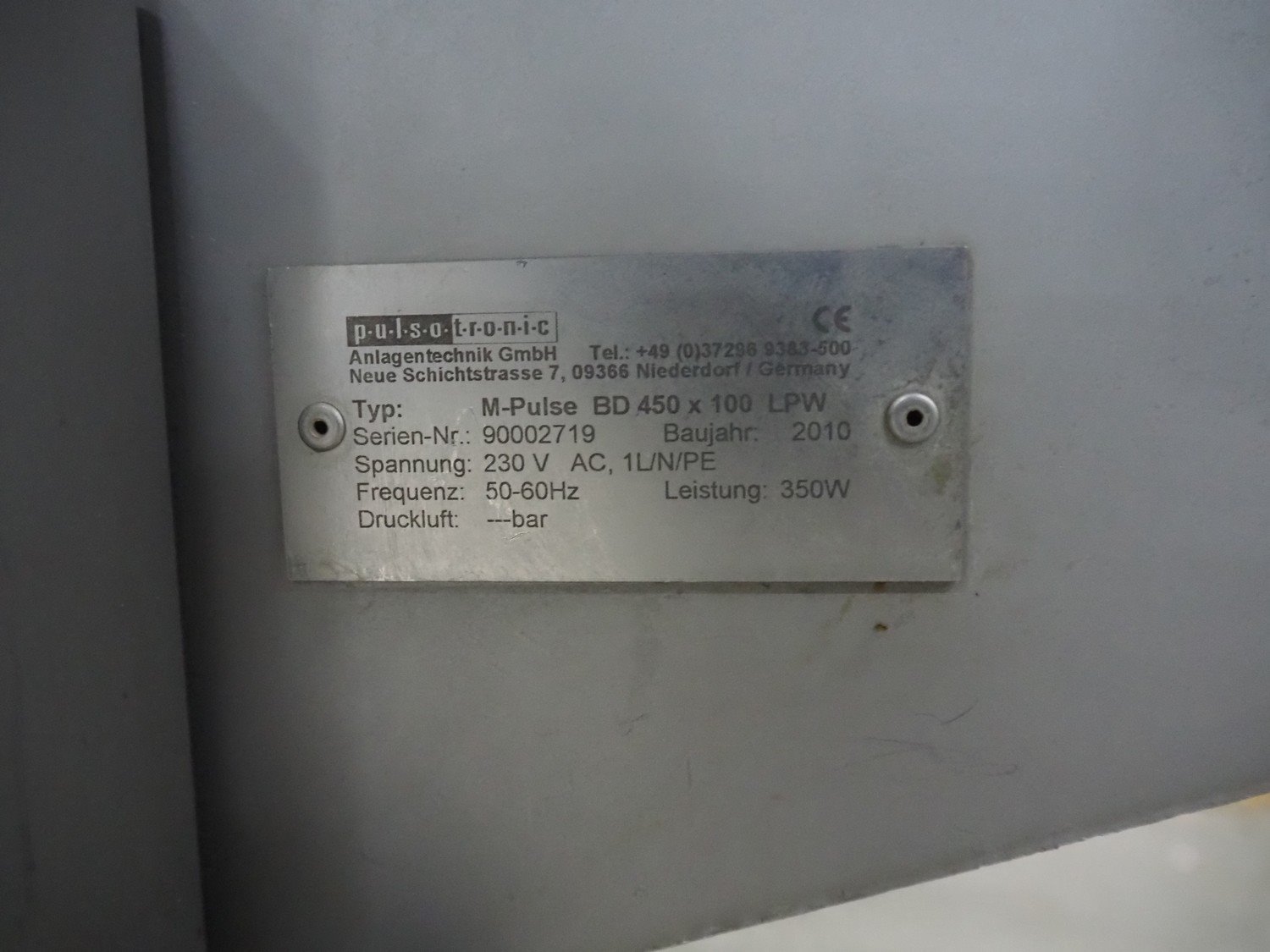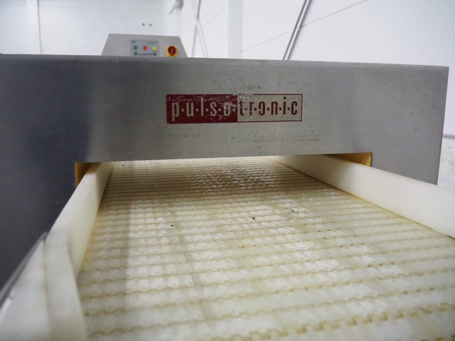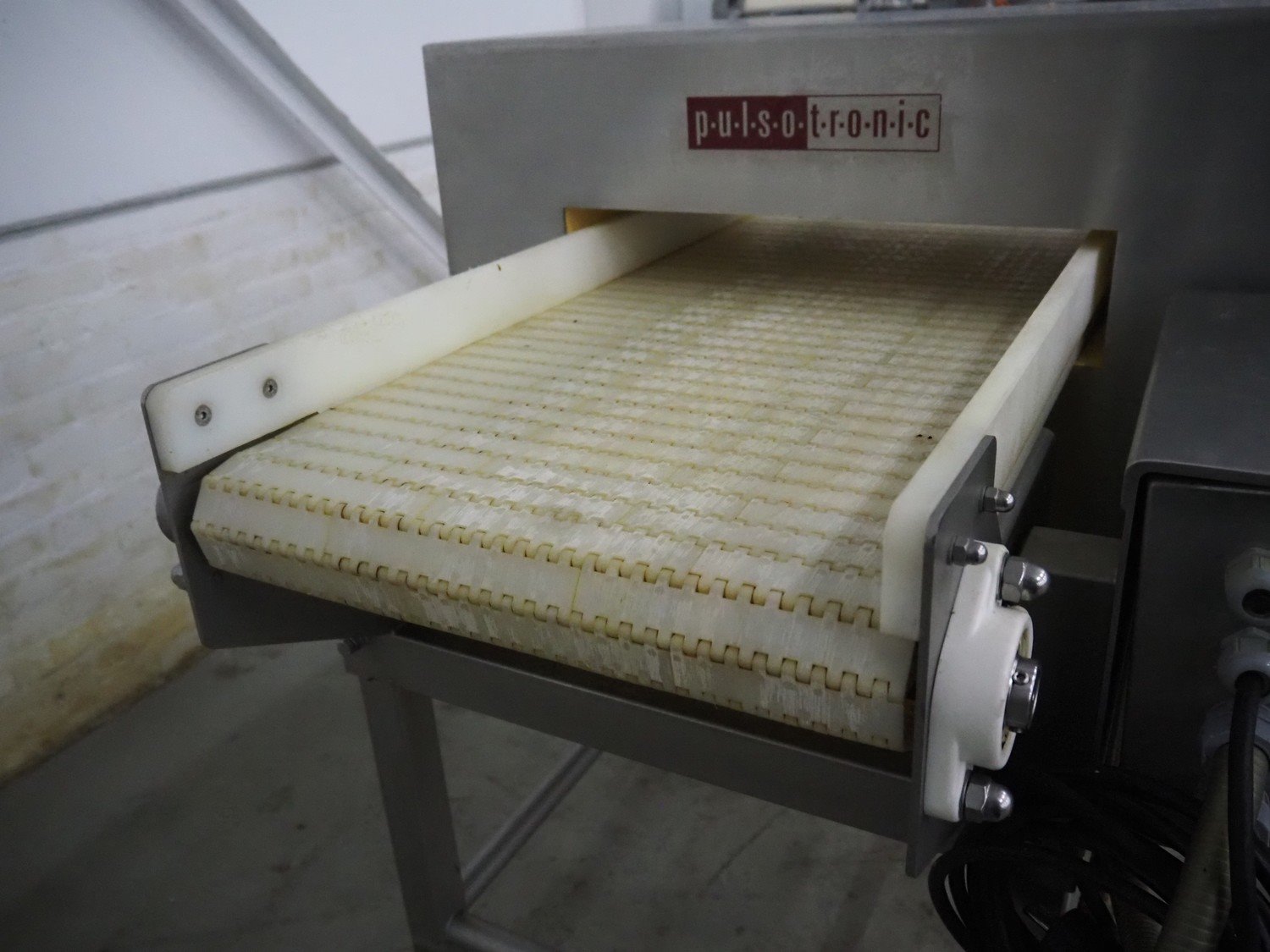 Pulsotronic mobile metal detector, type: M-Pulse BD 450x100 LPW, serial number: 90002719, year of construction: 2010, 230 V, 1 Ph, 50-60 Hz, 350 W, plastic belt, belt width: 405 mm, clearance: 450 mm x 70 mm, total dimensions: 1200 mm x 940 mm x 1160 mm. Kavel locatie: Denariusstraat 20, 4903 RC Oosterhout, Nederland