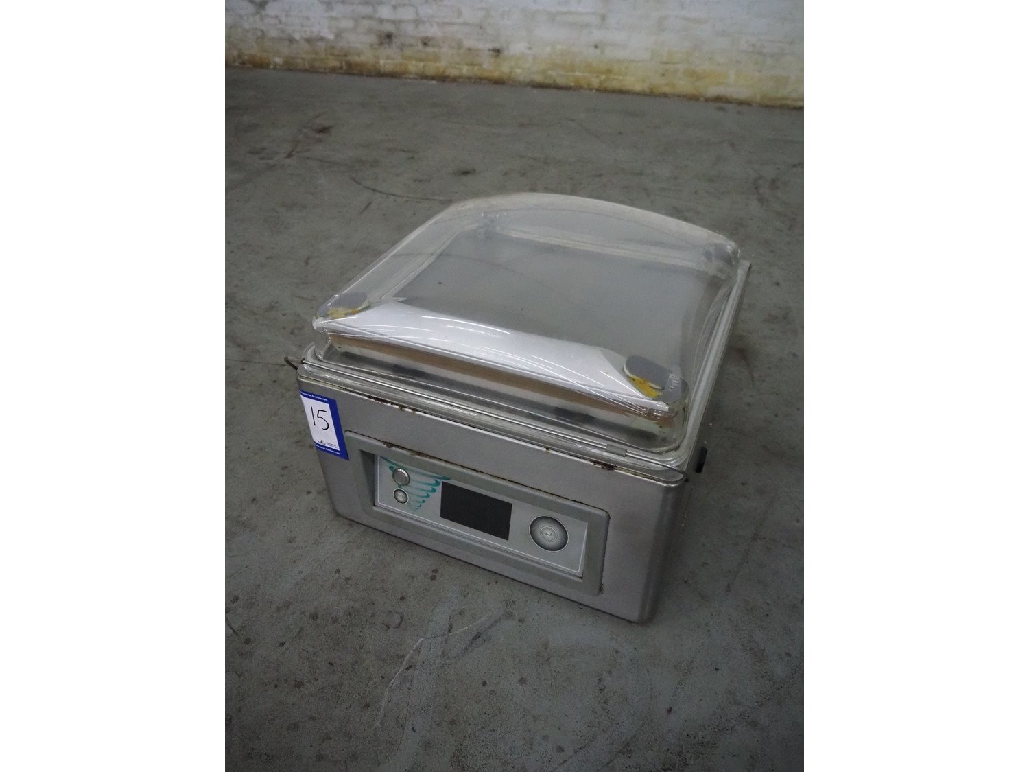 Henkelman vacuum machine, type: Lynx 42, machine number: H0L10160016, year of construction: 2016, 220/230 V, 1 Ph, 50/60 Hz, 5 A, 0.7 kW, seal length: 430 mm, chamber: 430 mm x 370 mm, total dimensions: 520 mm x 500 mm x 400 mm. Kavel locatie: Denariusstraat 20, 4903 RC Oosterhout, Nederland