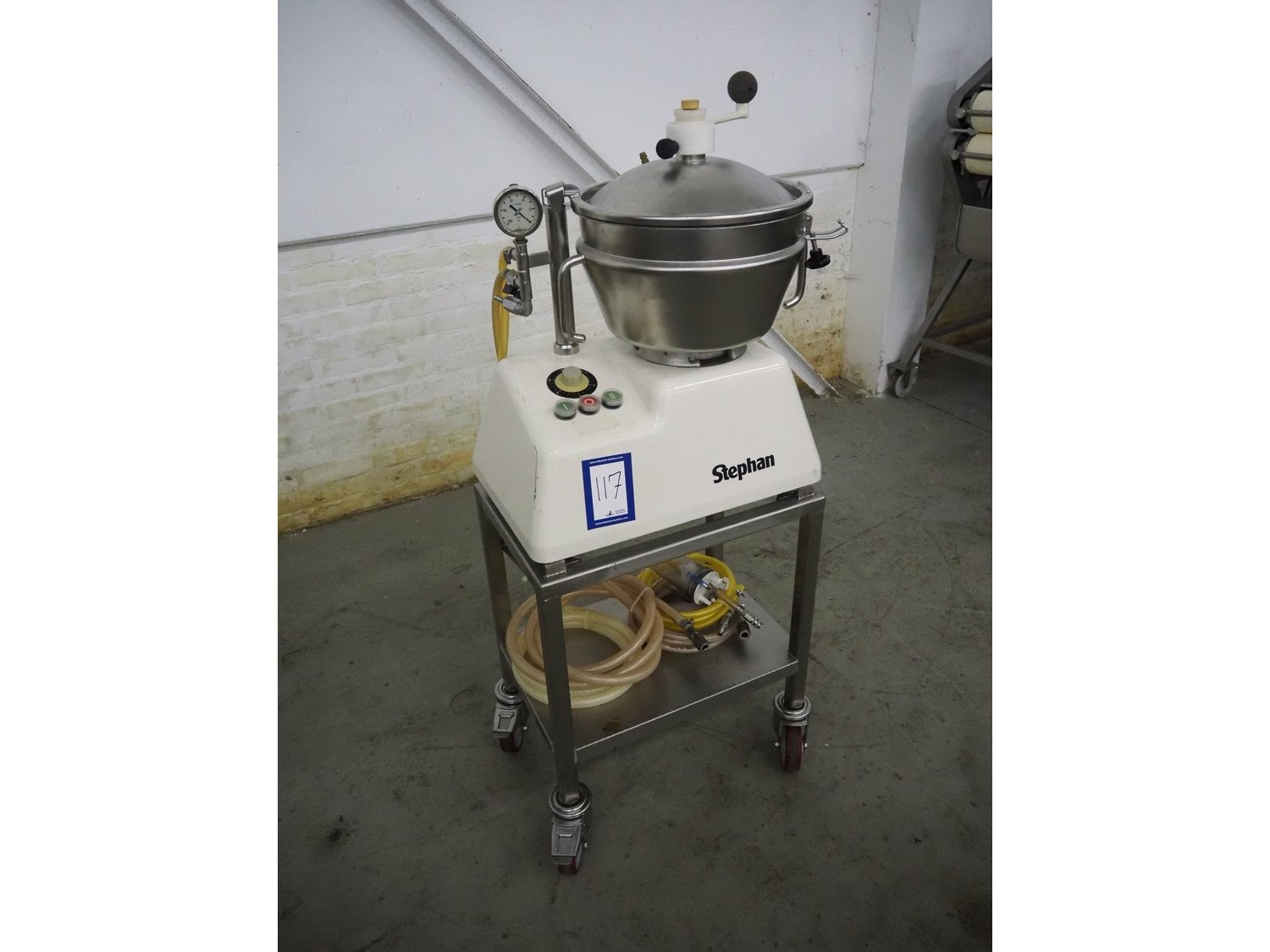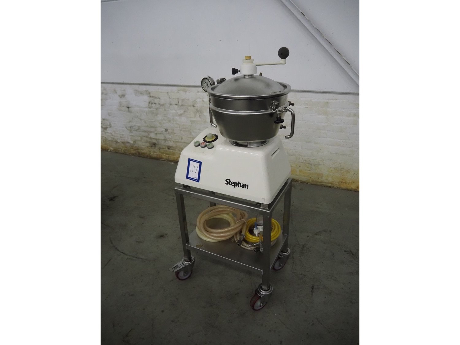 Stephan universal machine on mobile s/s trolley, type: UMC 12, machine number: 718.093.01, year of construction: 1991, 380 V, 3 Ph, 50 Hz, 1.5/1.9 kW, 1420/2800 rpm, dimensions: 500 mm x 450 mm x 1250 mm. Kavel locatie: Denariusstraat 20, 4903 RC Oosterhout, Nederland
