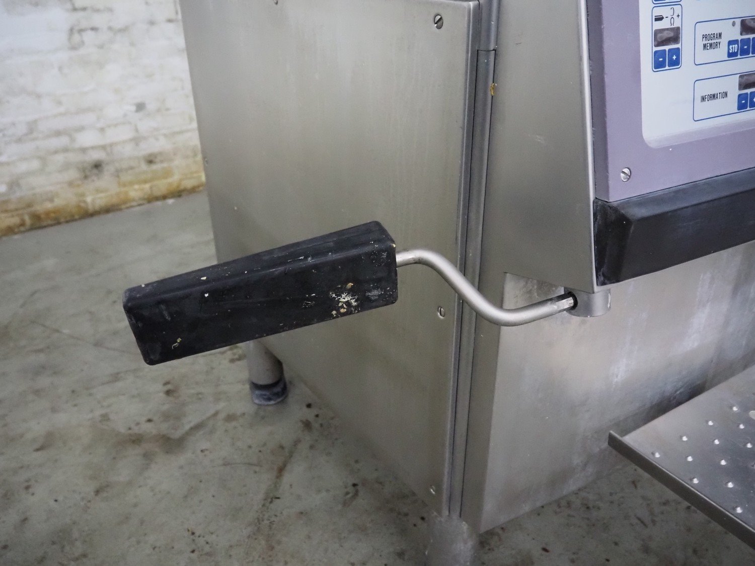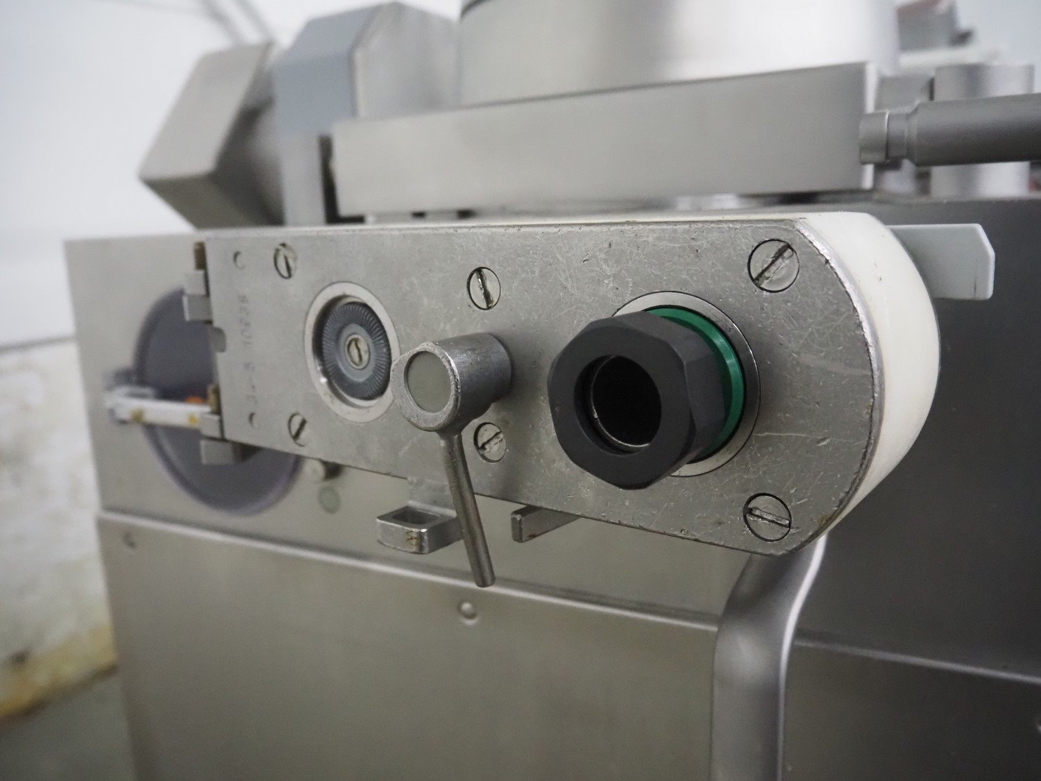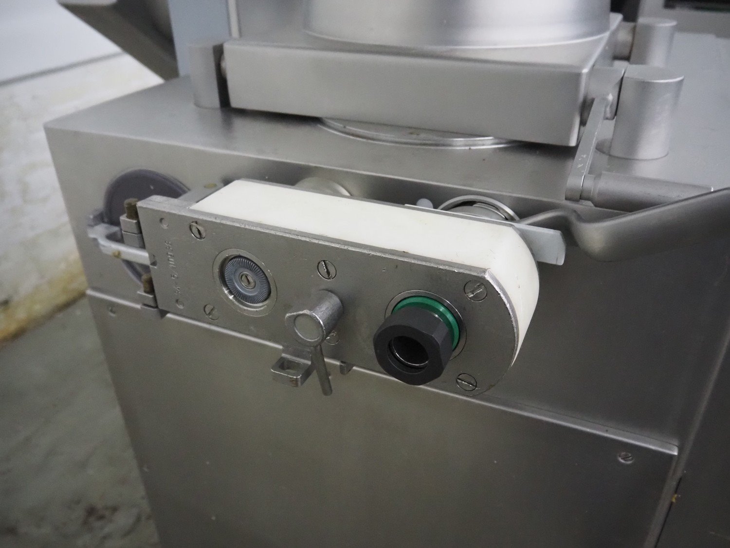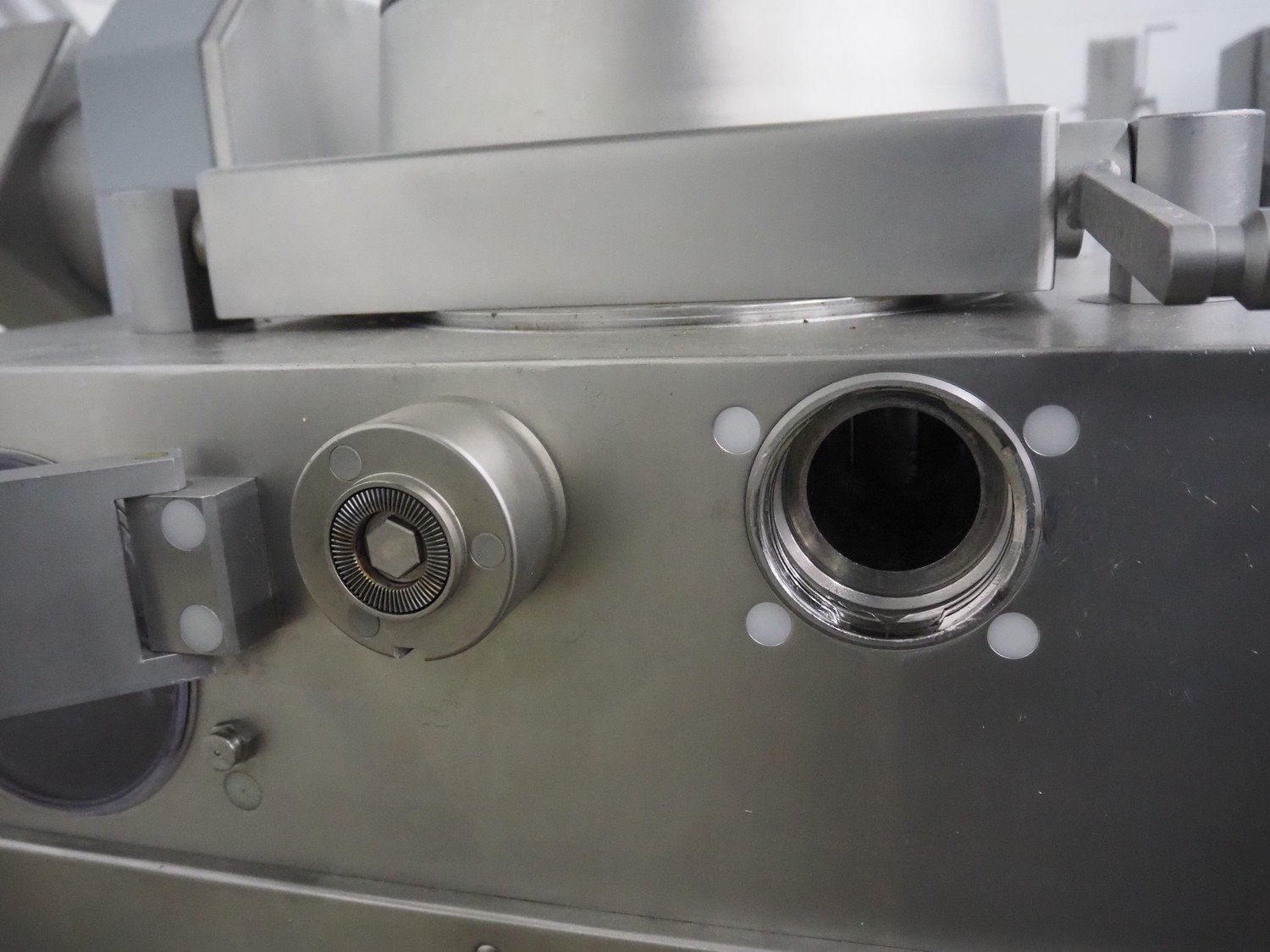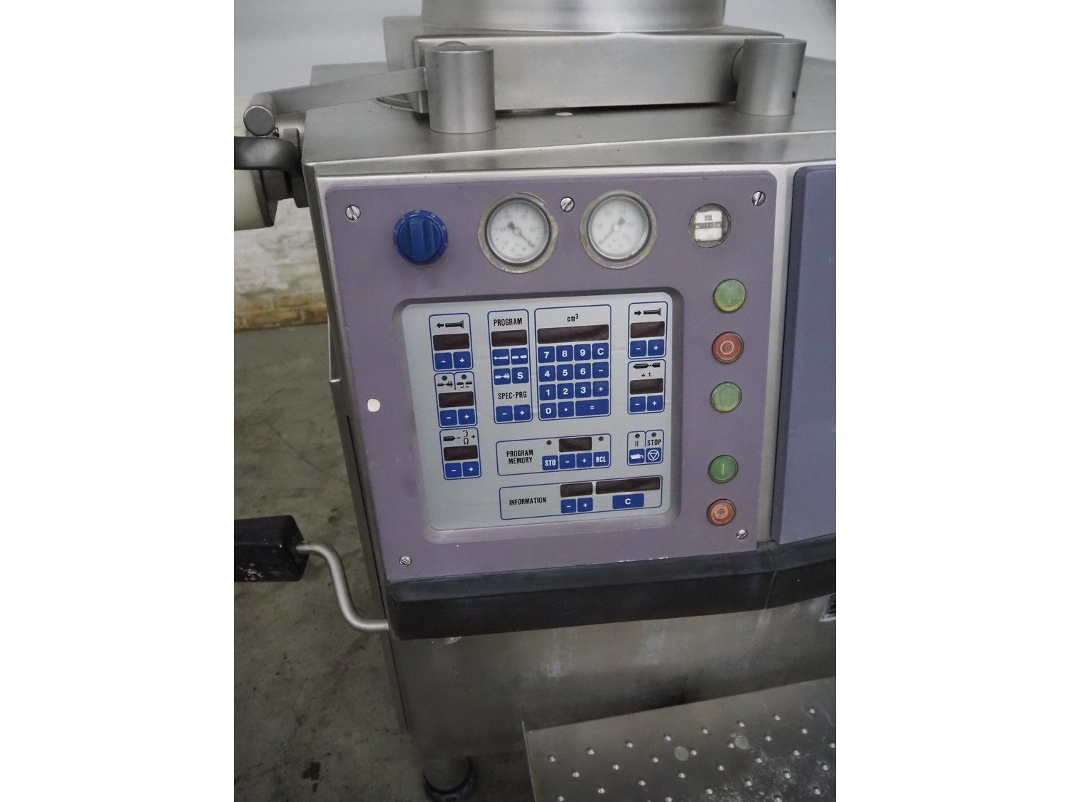 Handtmann vacuum filling machine with lifter for 200 liter meat bins and linking attachment, type: VF200 B, number: 1180, 380 V, 50 Hz, 12.6 A, 4.5 kW, type linking attachment: 34-5, number: 10938, Becker vacuum pump, type: U1.16SA-31, capacity: 16/19 m³ per hour, dimensions: 1950 mm x 1400 mm x 2050 mm. Kavel locatie: Denariusstraat 20, 4903 RC Oosterhout, Nederland