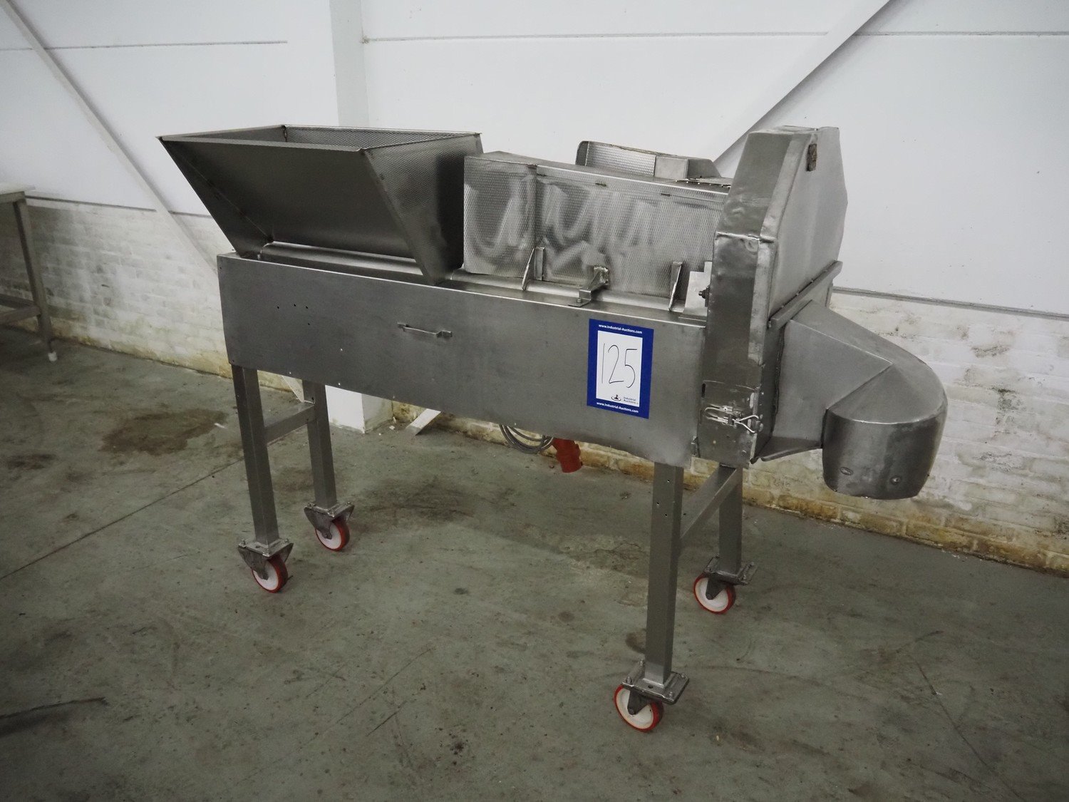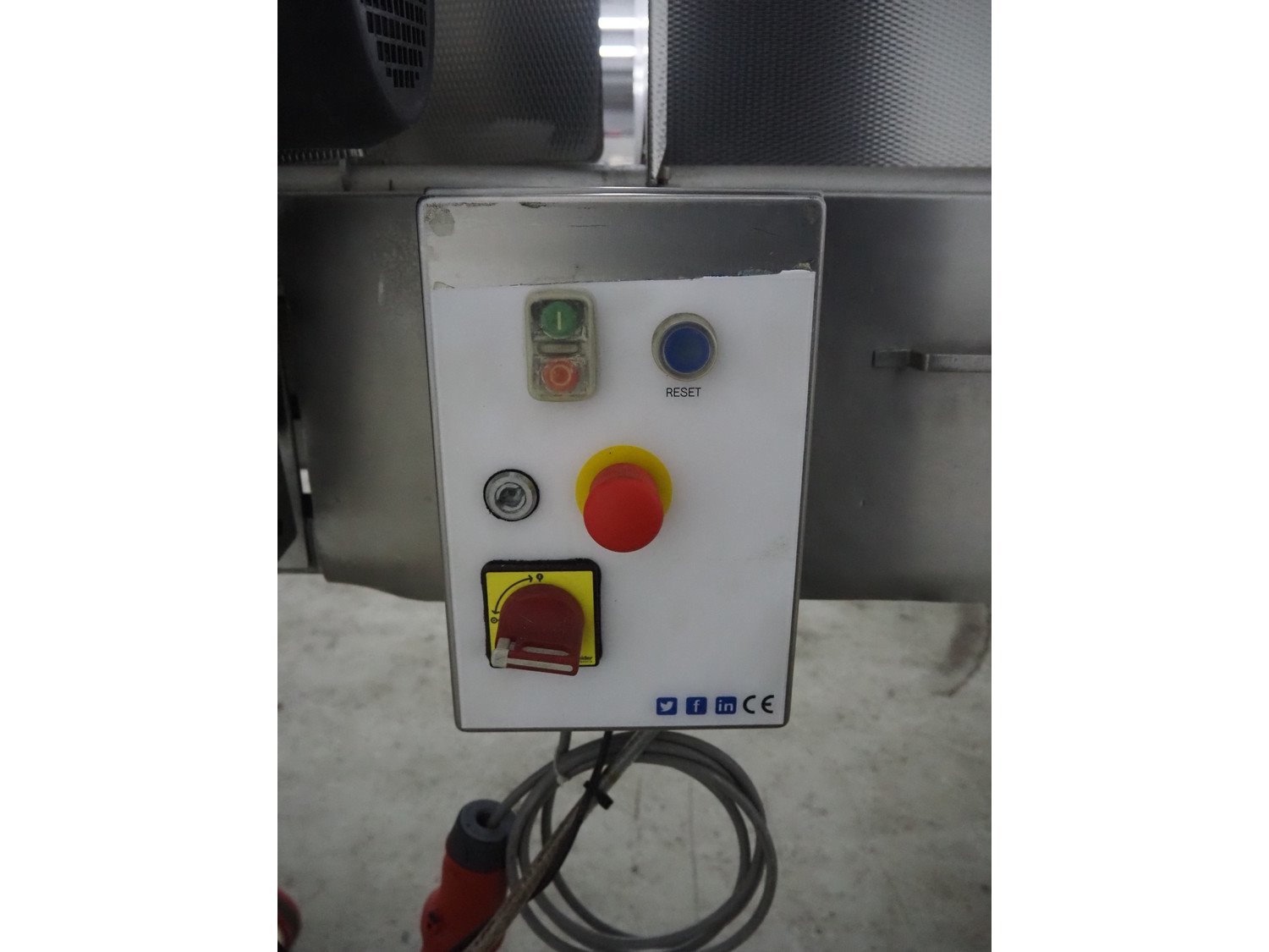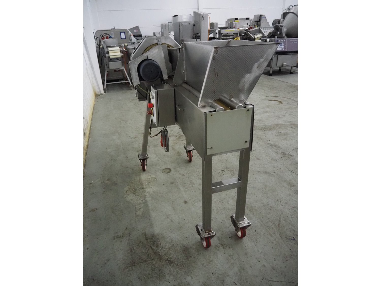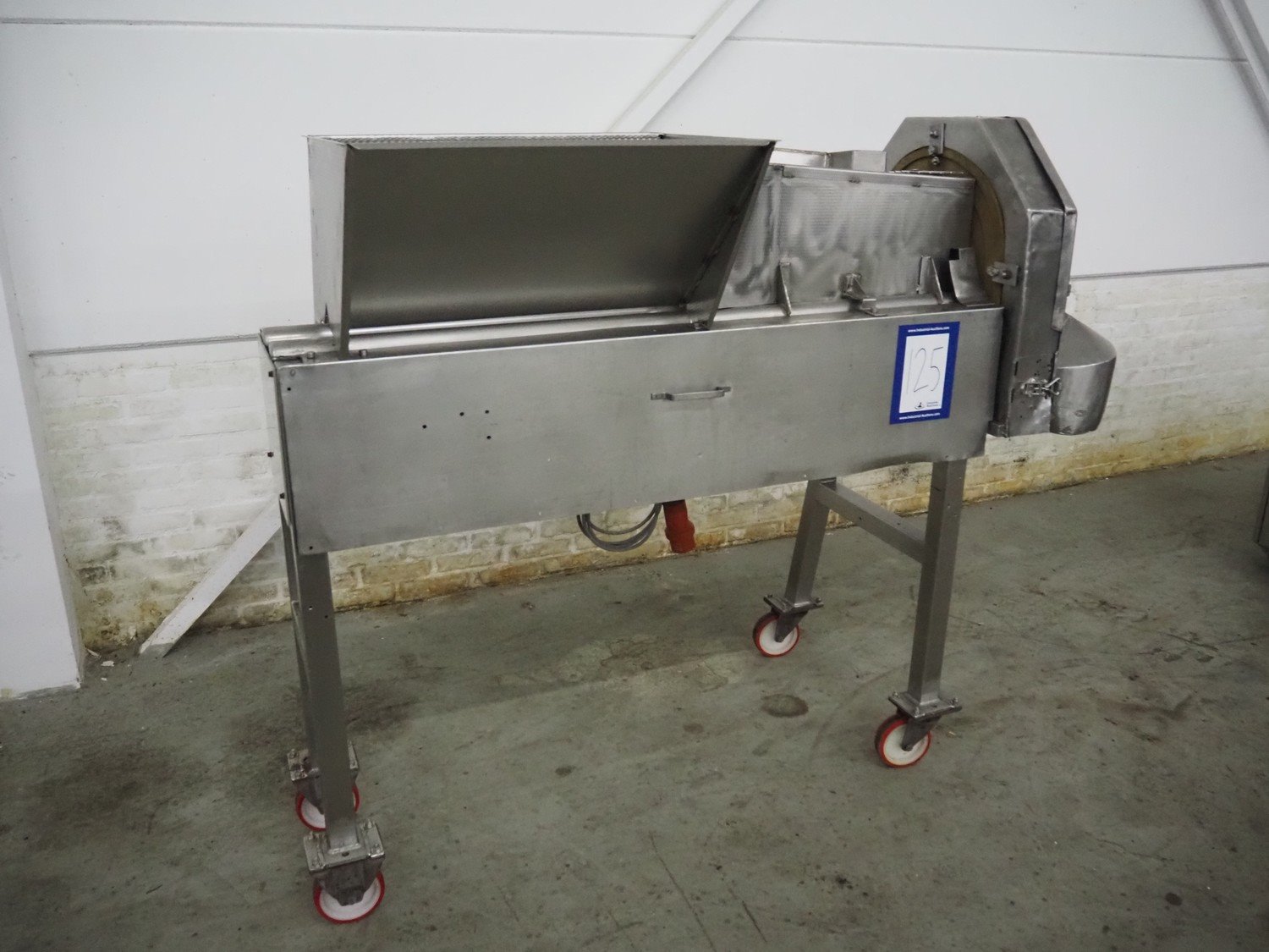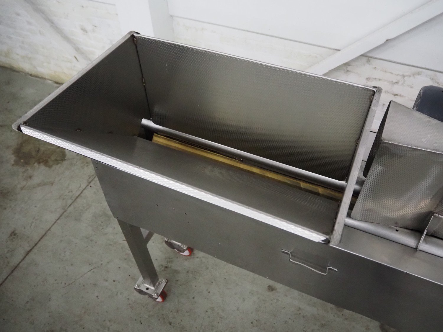 Urshel s/s vegetable slicer, type: OV, clearance: 80 mm x 80 mm, plastic belts, belt width: 65 mm, total dimensions: 2000 mm x 880 mm x 1350 mm. Kavel locatie: Denariusstraat 20, 4903 RC Oosterhout, Nederland