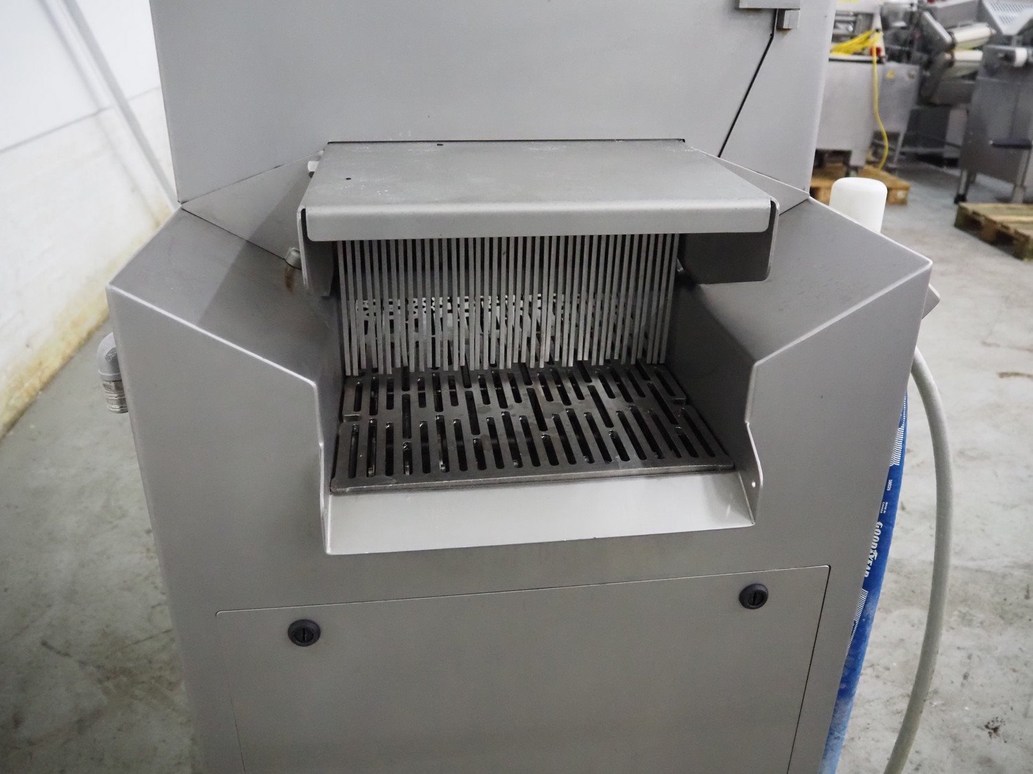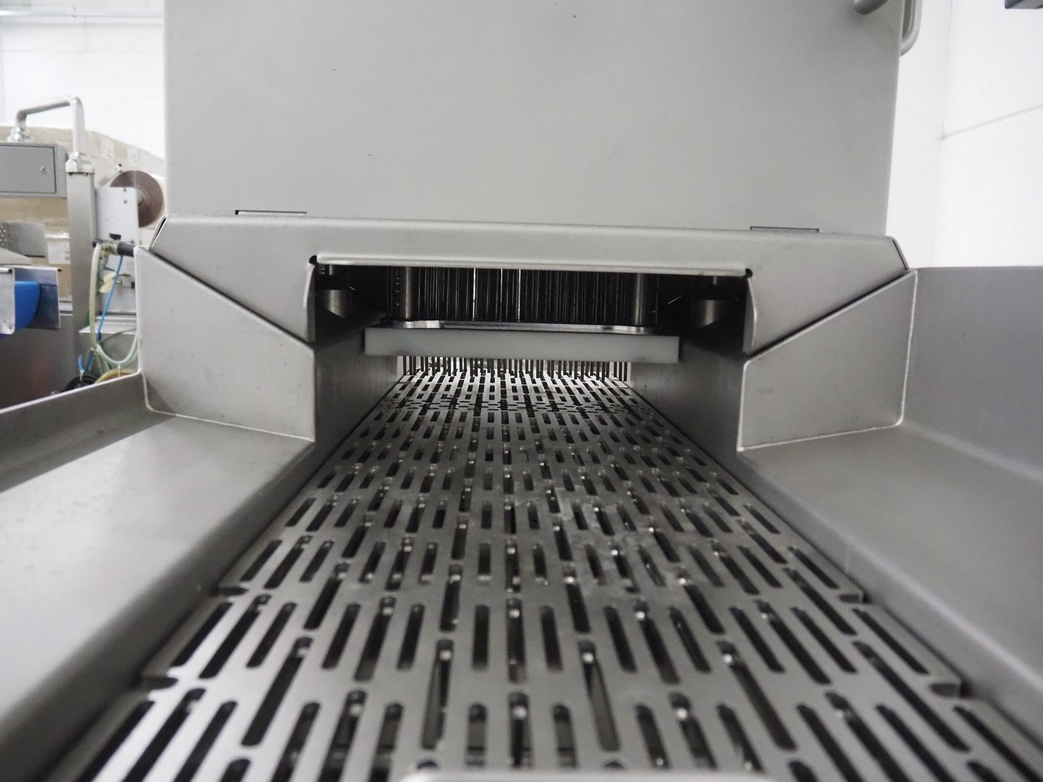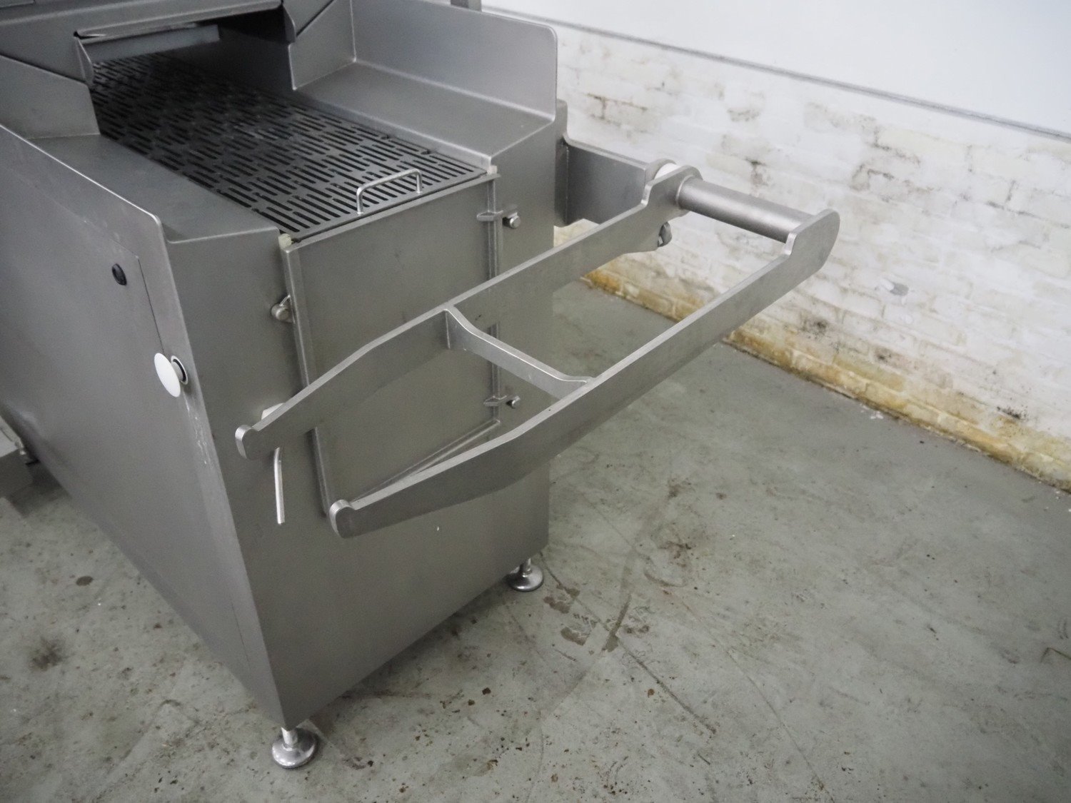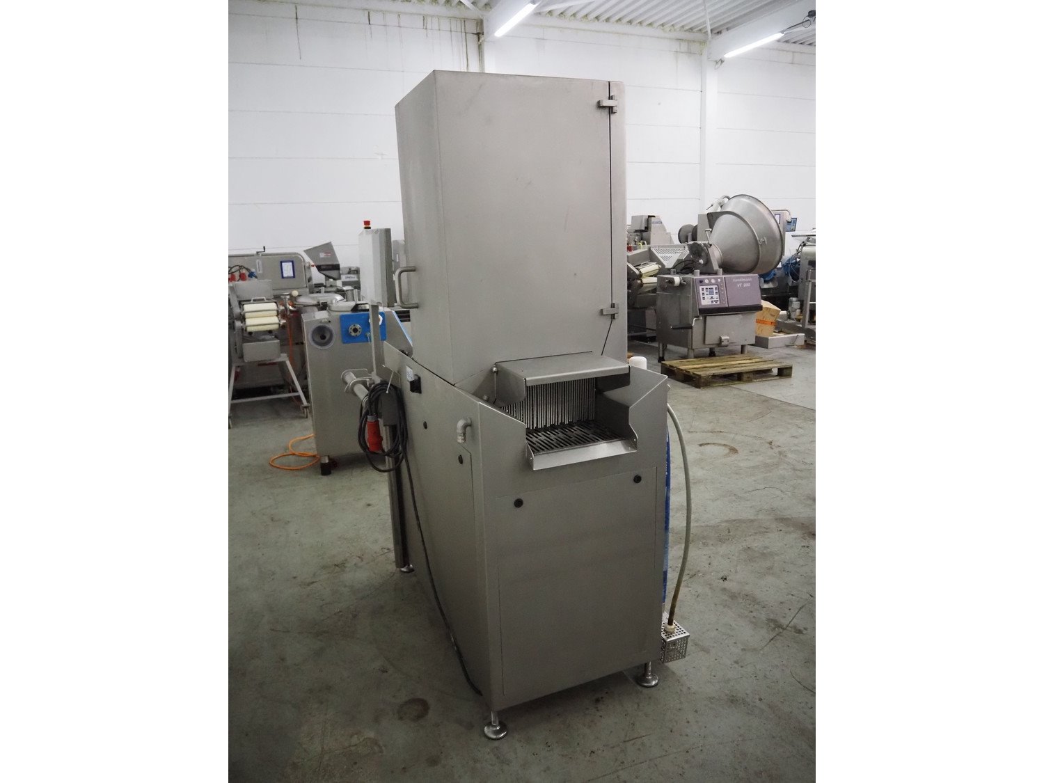 Rühle injector with lifter for E2 crates, type: IR 56, number: 0586, year of construction: 2014, 400 V, 3 Ph, 50 Hz, 7.5 kW, 16 A, 56 needles, s/s walking beam, width: 350 mm, clearance: 350 mm x 170 mm, total dimensions: 1800 mm x 1000 mm x 2050 mm. Kavel locatie: Denariusstraat 20, 4903 RC Oosterhout, Nederland