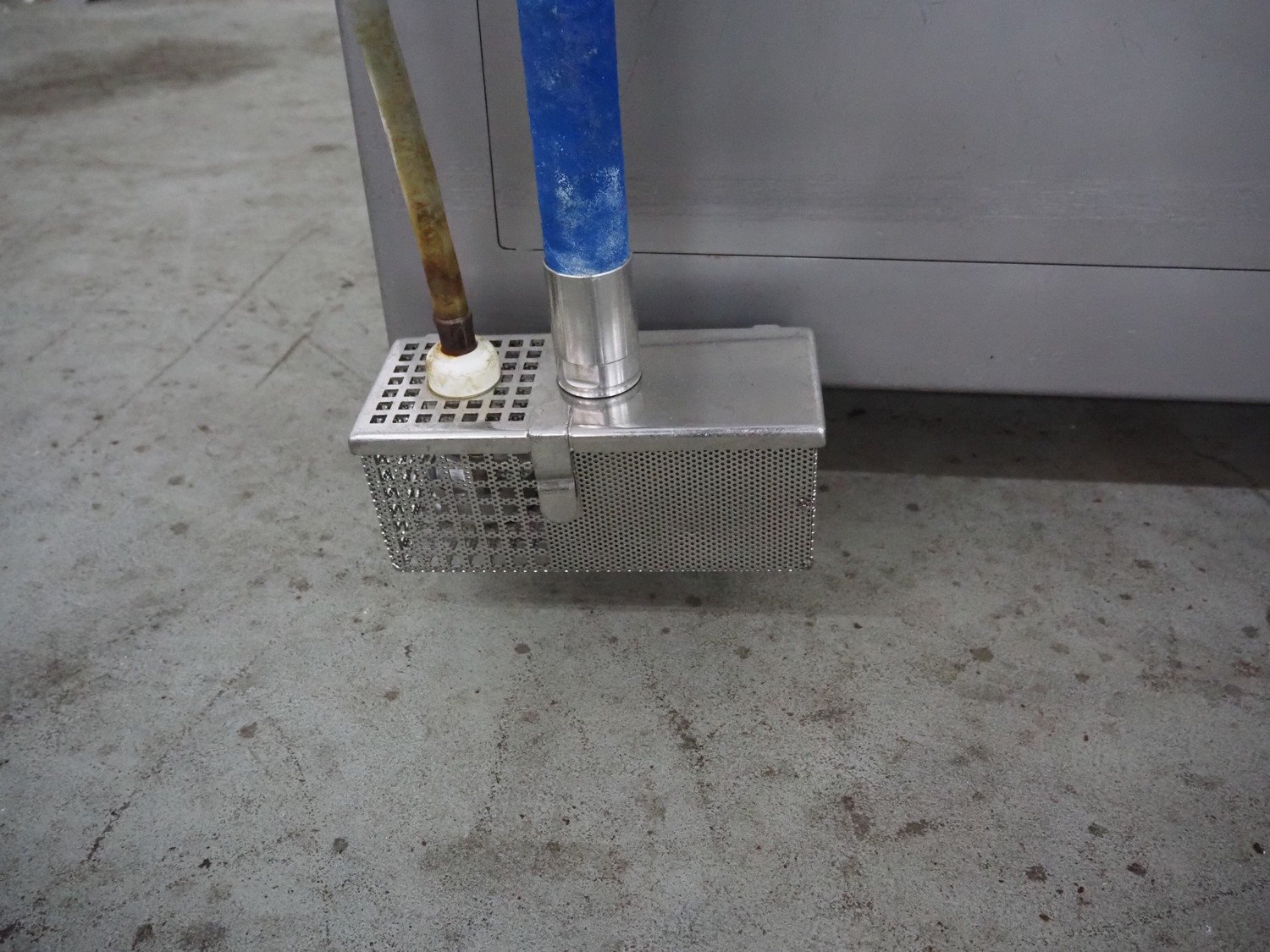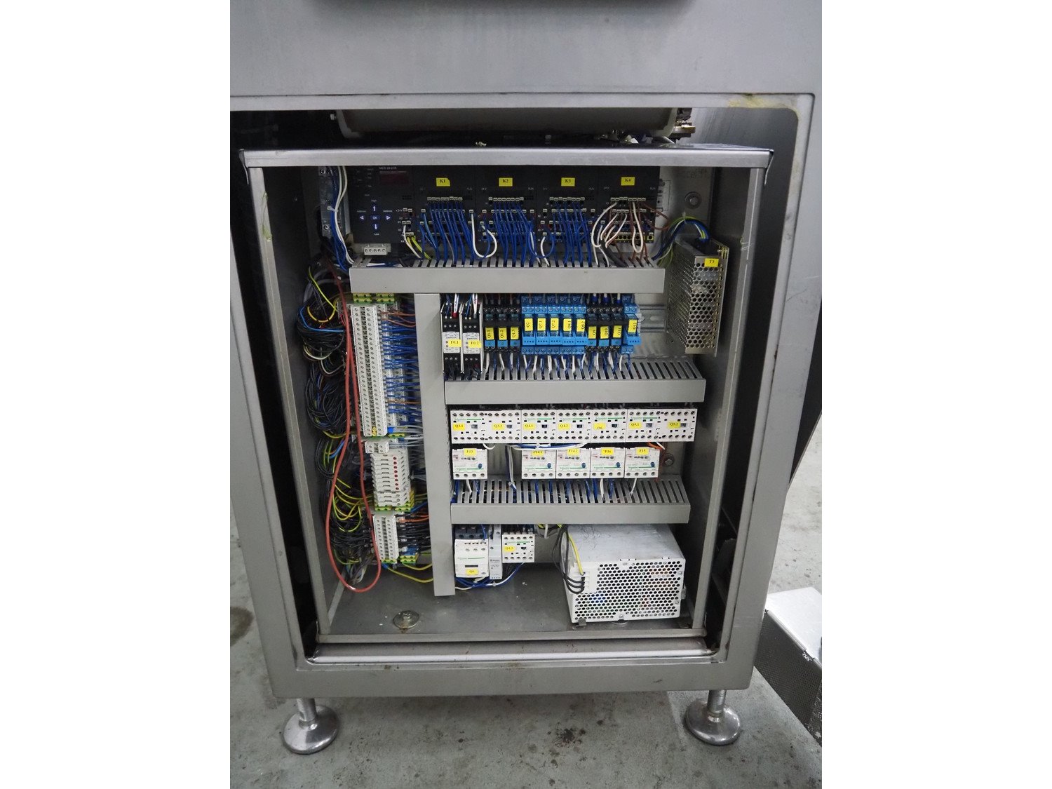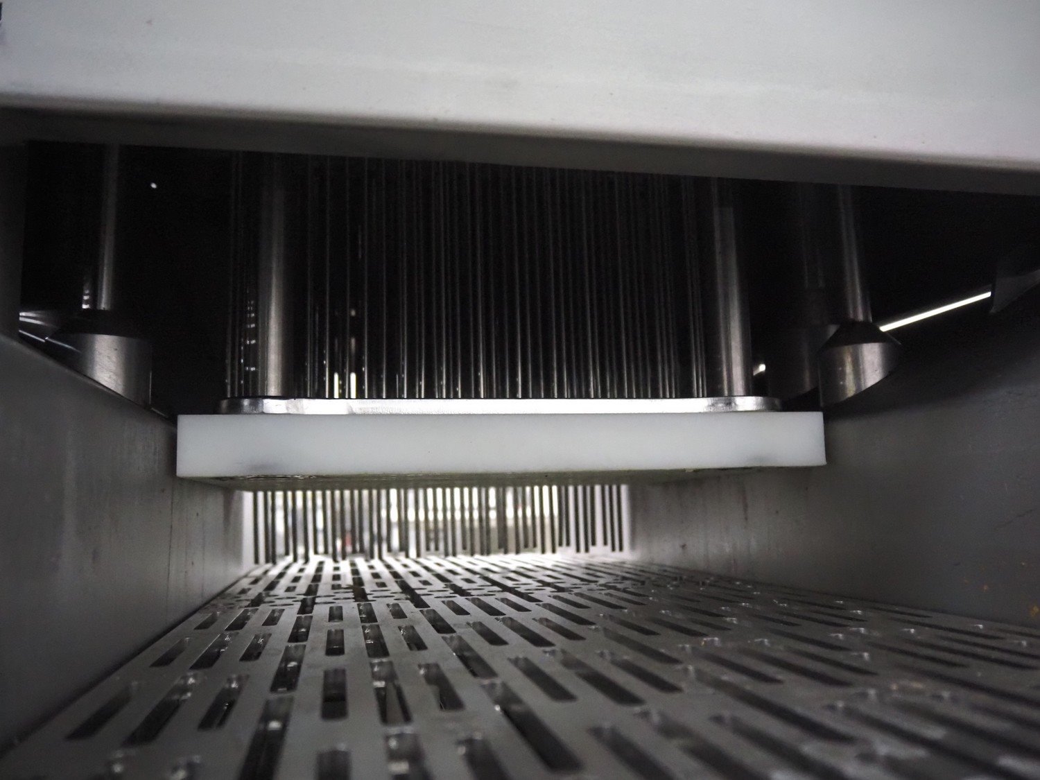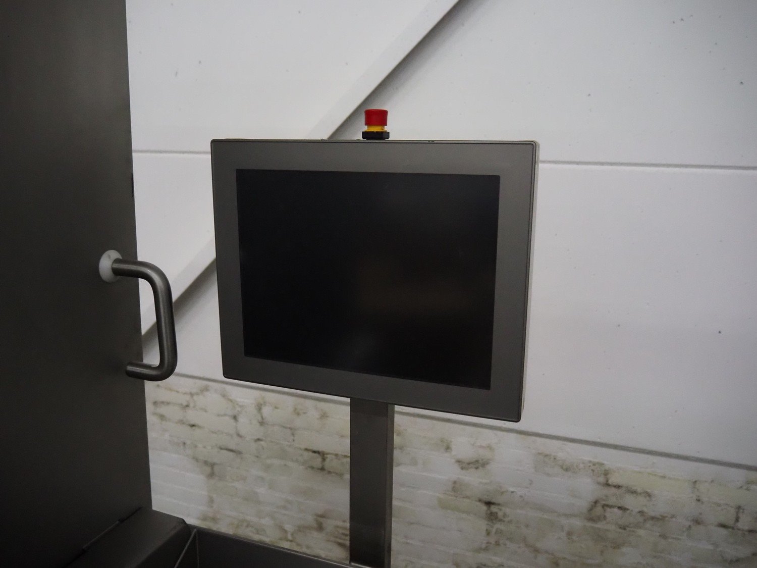 Rühle injector with lifter for E2 crates, type: IR 56, number: 0586, year of construction: 2014, 400 V, 3 Ph, 50 Hz, 7.5 kW, 16 A, 56 needles, s/s walking beam, width: 350 mm, clearance: 350 mm x 170 mm, total dimensions: 1800 mm x 1000 mm x 2050 mm. Kavel locatie: Denariusstraat 20, 4903 RC Oosterhout, Nederland