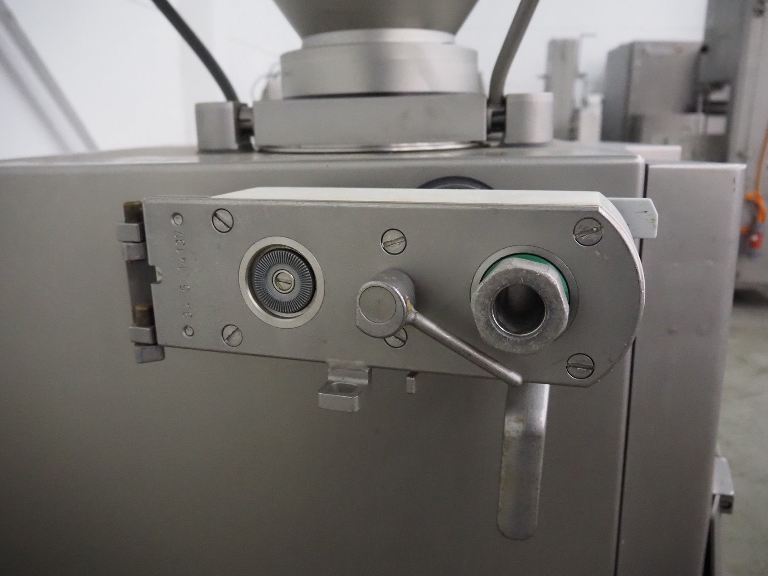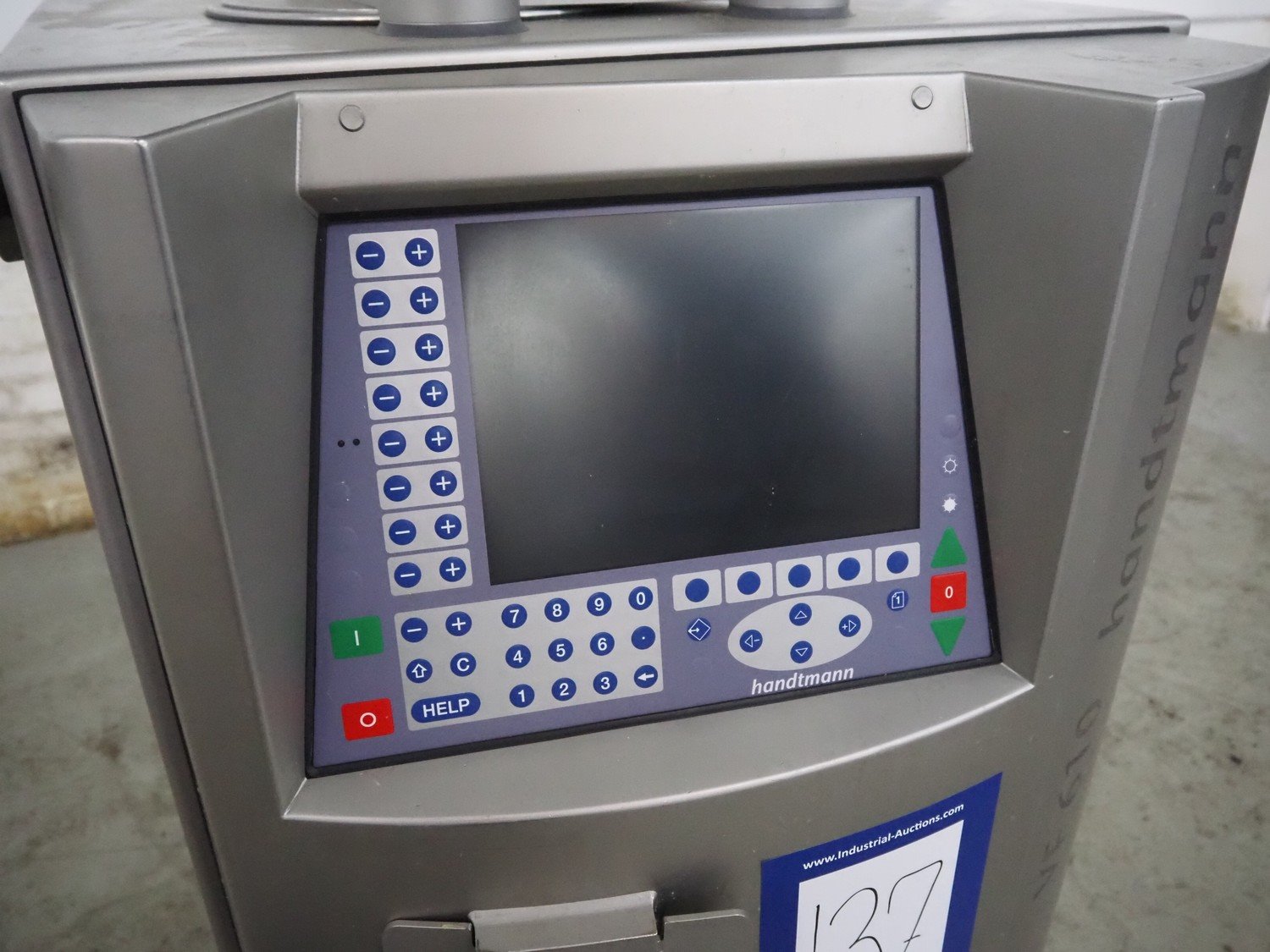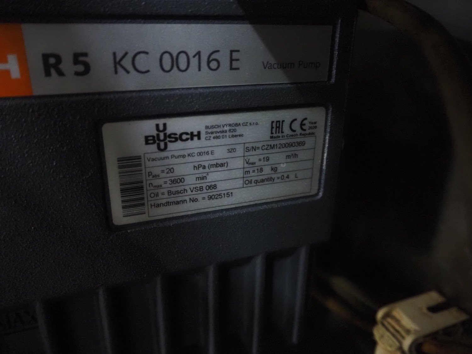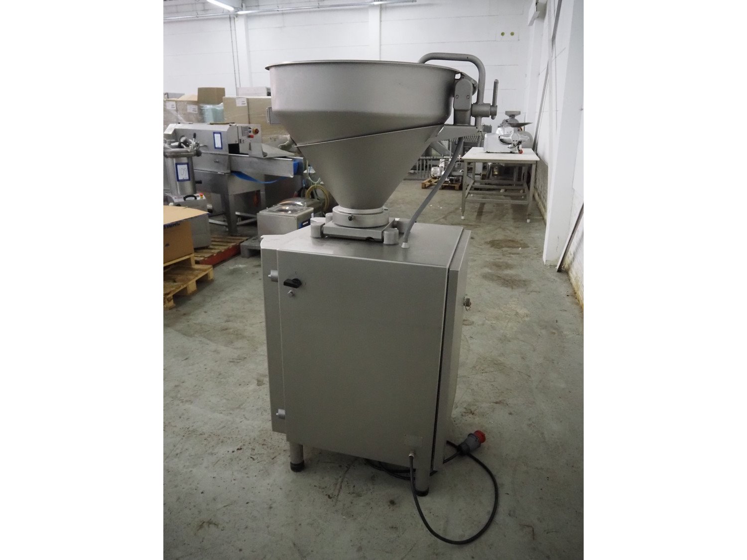 Handtmann vacuum filling machine with linking attachment, type: VF610, number: 20307, year of construction: 2005, 400 V, 3 Ph, 50 Hz, 3.5 kW, 5.1 A, linking attachment type: 34-5, number: 14137, Busch vacuum pump, model: KC 0016 E, capacity: 16 m³per hour, dimensions: 1150 mm x 950 mm x 1730 mm. Kavel locatie: Denariusstraat 20, 4903 RC Oosterhout, Nederland