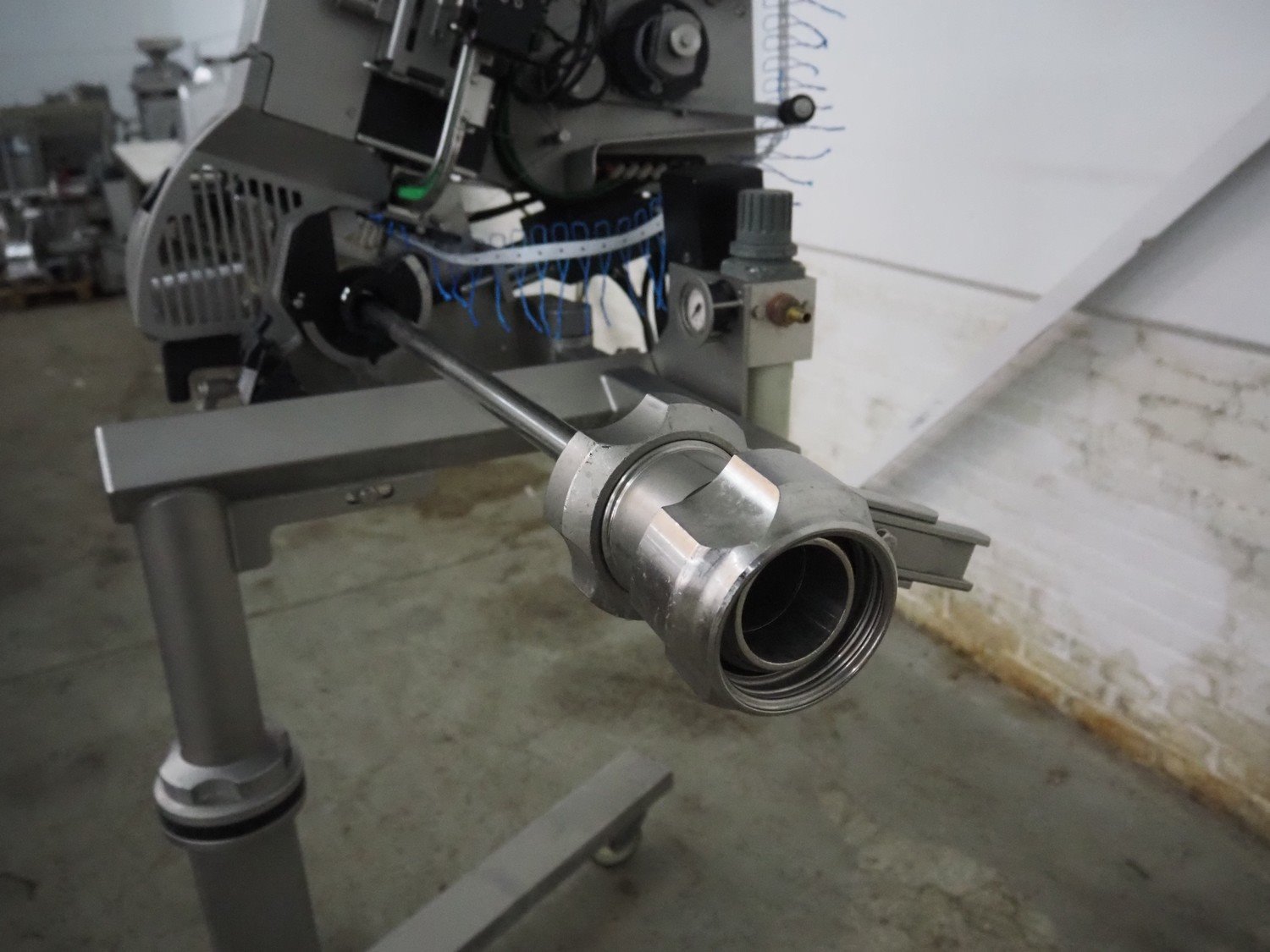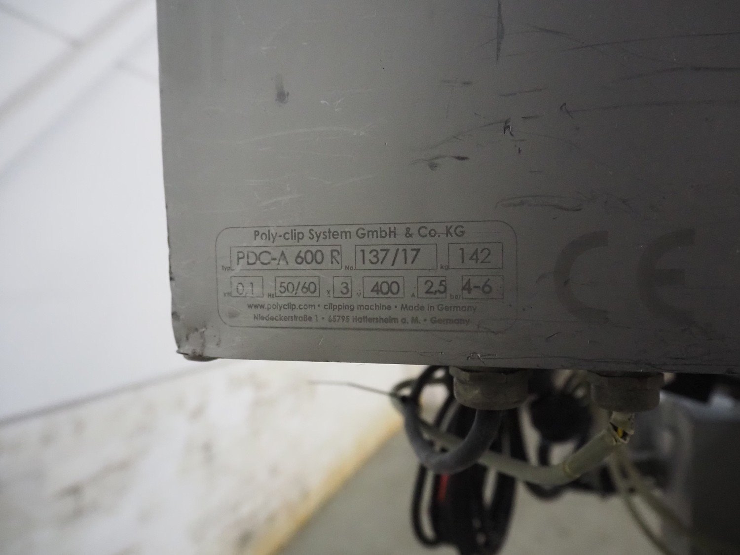 Poly-clip System GmbH & Co.KG mobile automatic double clipper, type: PDC-A 600 R, number: 137/17, 400 V, 3 Ph, 50/60 Hz, 2.5 A, 0.1 kW, 4/6 bar, weight: 142 kg, dimensions: 1250 mm x 800 mm x 1950 mm. Kavel locatie: Denariusstraat 20, 4903 RC Oosterhout, Nederland