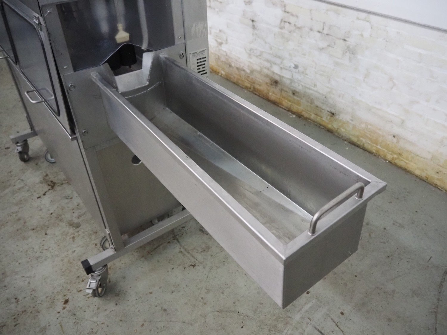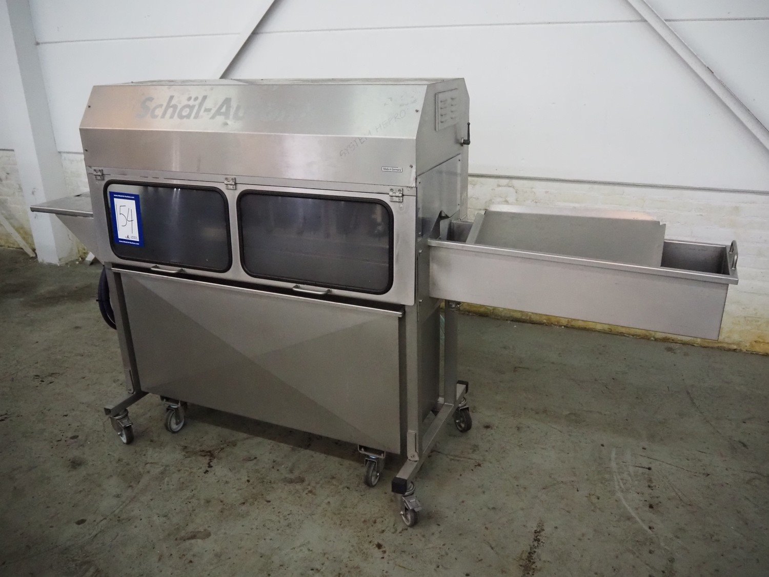 Hepro GmbH mobile industrial asparagus peeling machine, type: HSM-180/SAP, machine number: 0049-0902-1048, year of construction: 2009, 400 V, 3 Ph, 50 Hz, 0.5 kW, clearance: 60 mm x 55 mm, total dimensions: 2550 mm x 600 mm x 1420 mm. Kavel locatie: Denariusstraat 20, 4903 RC Oosterhout, Nederland