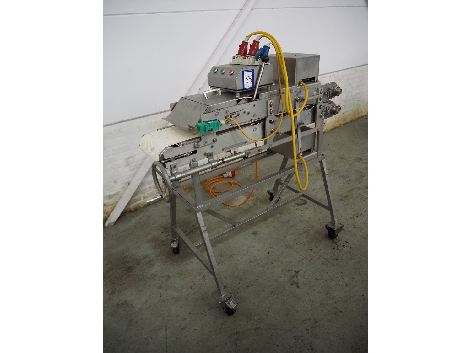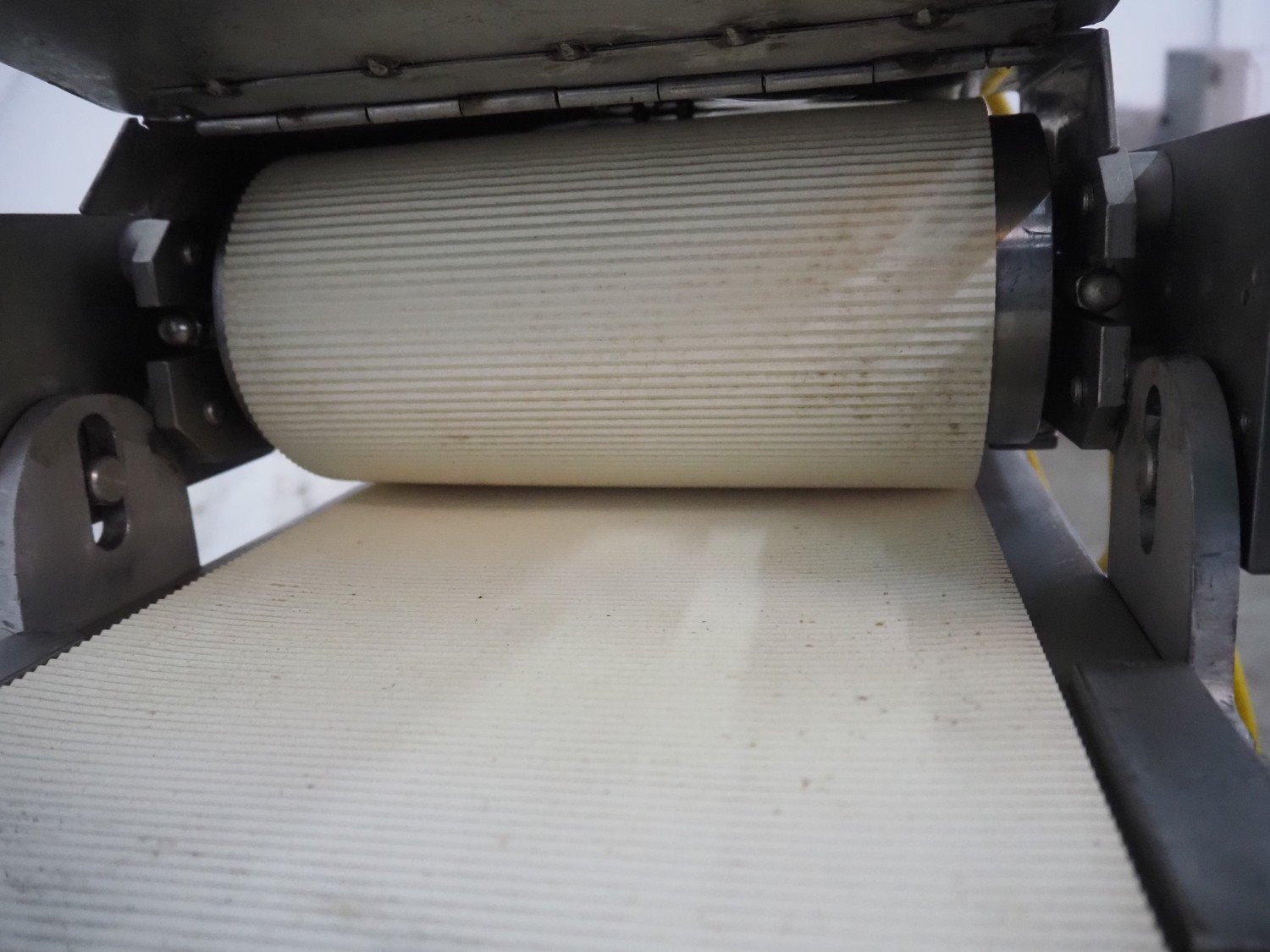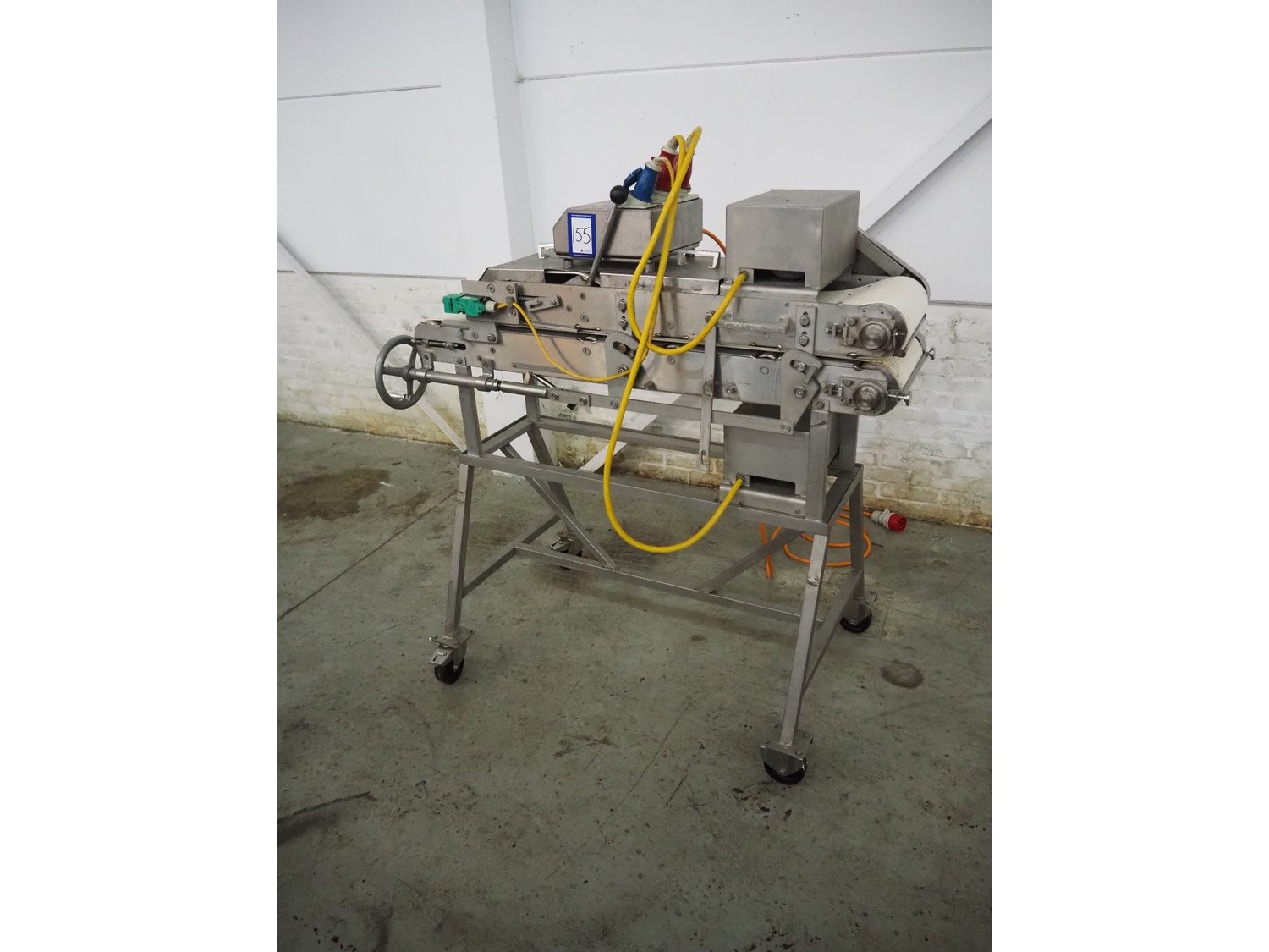 Seffelaar & Looyen BV mobile flattener, plastic belt, belt width: 250 mm, total dimensions: 1370 mm x 750 mm x 1400 mm. Kavel locatie: Denariusstraat 20, 4903 RC Oosterhout, Nederland