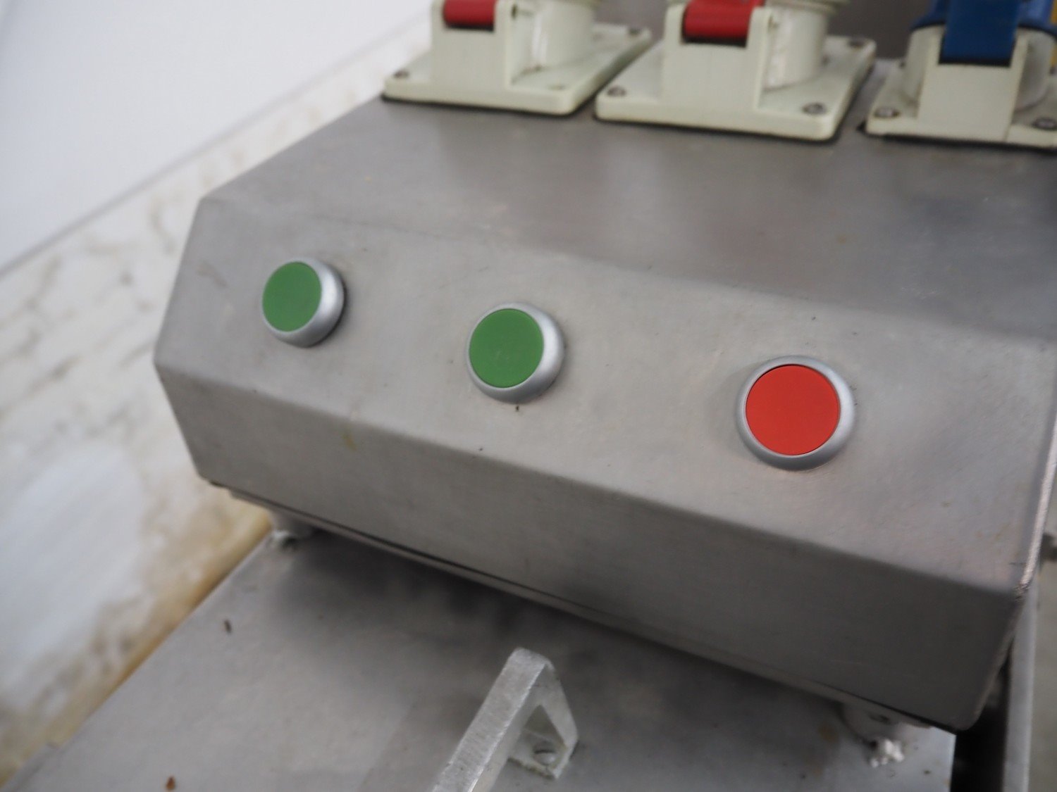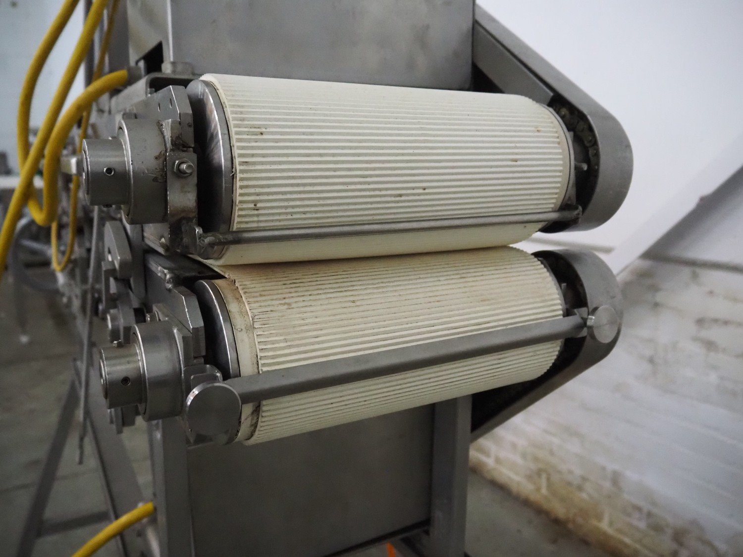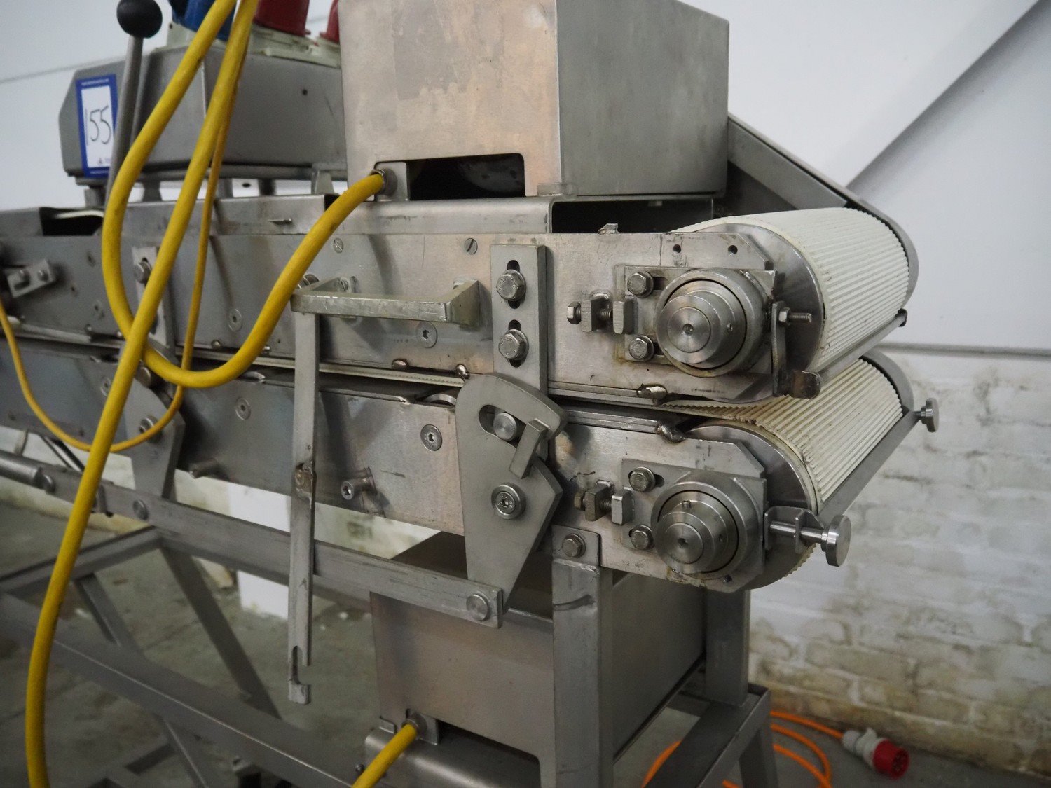 Seffelaar & Looyen BV mobile flattener, plastic belt, belt width: 250 mm, total dimensions: 1370 mm x 750 mm x 1400 mm. Kavel locatie: Denariusstraat 20, 4903 RC Oosterhout, Nederland