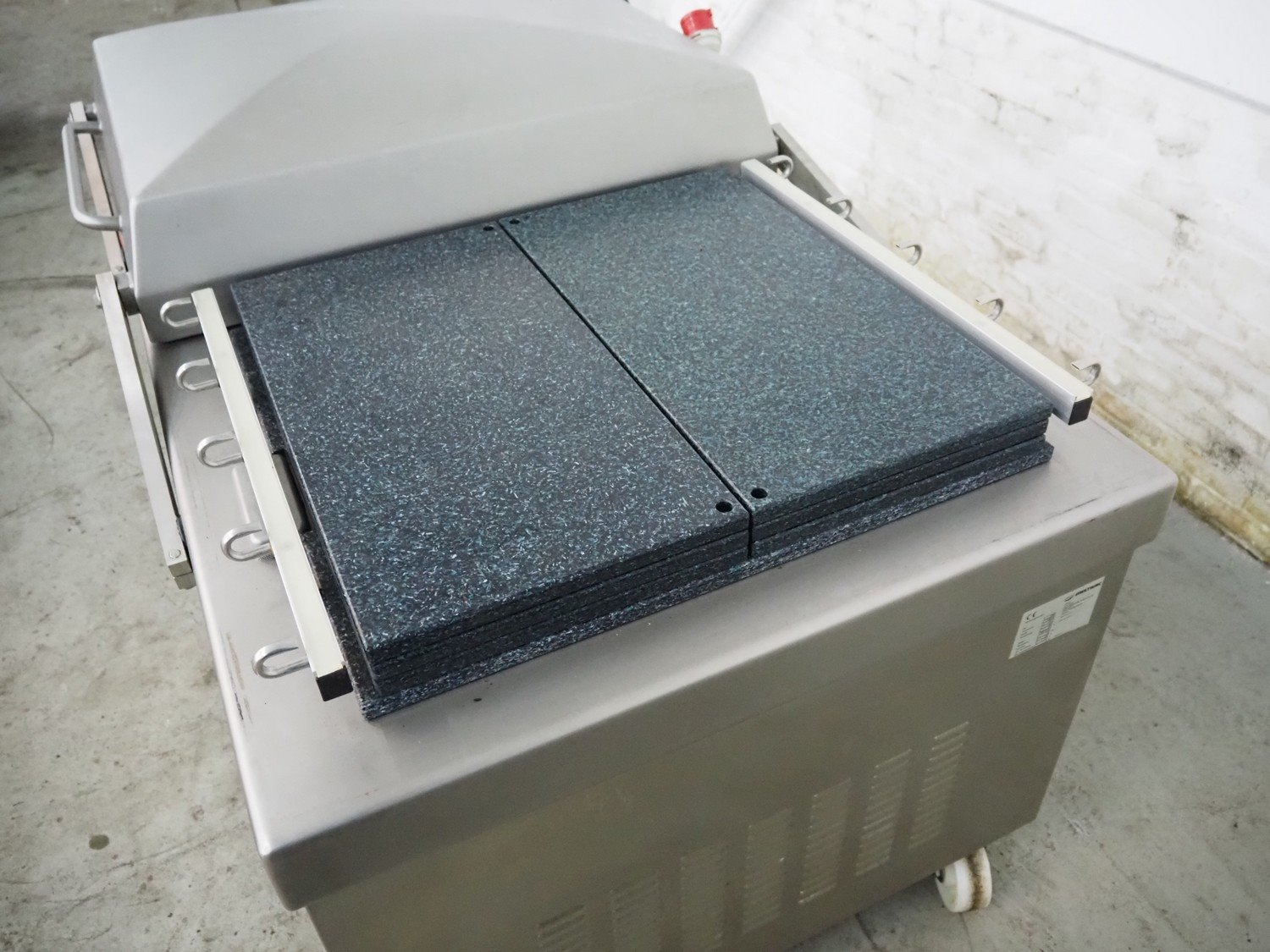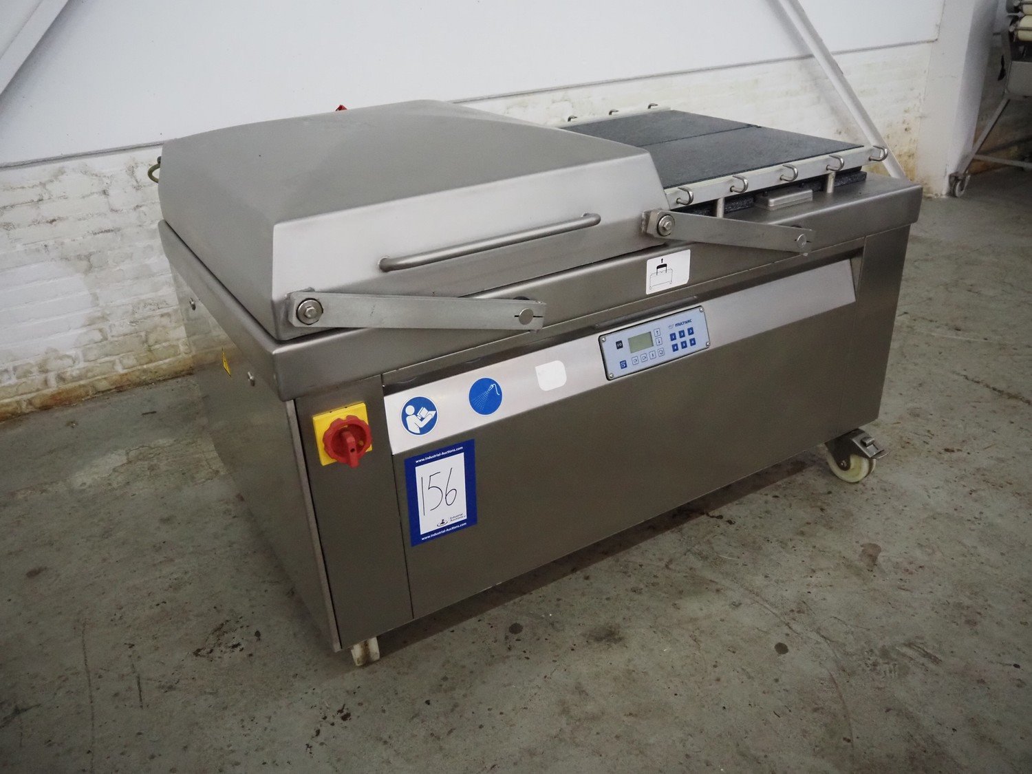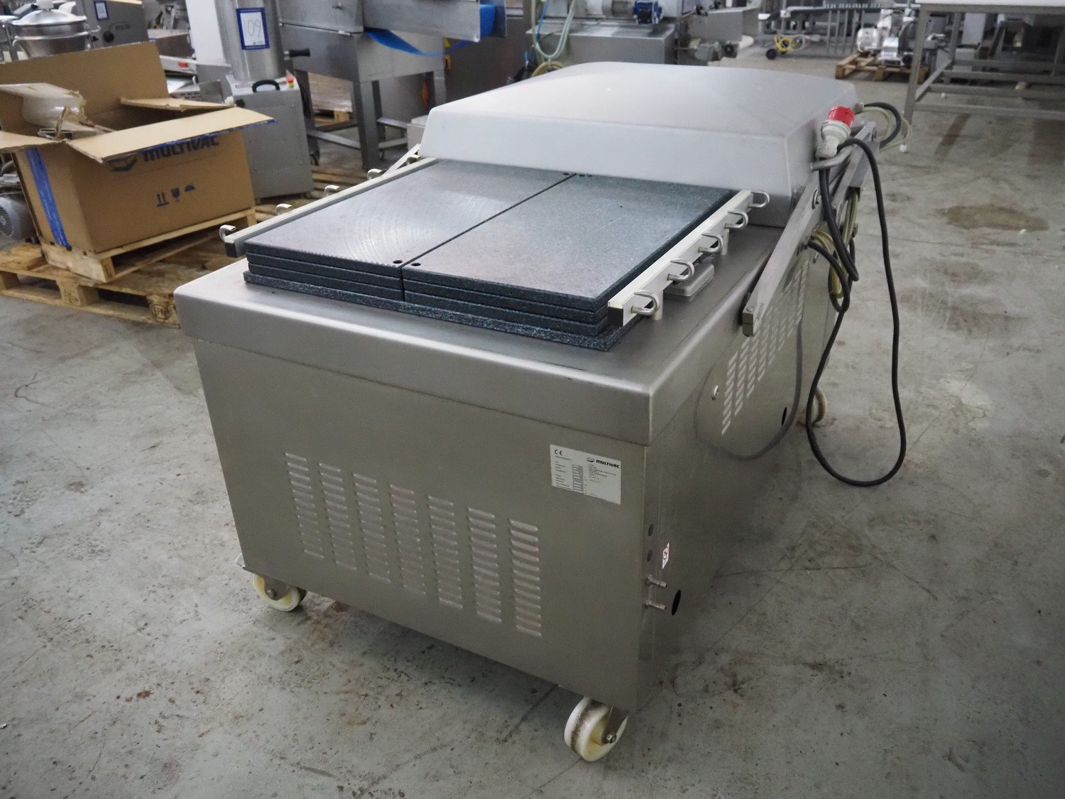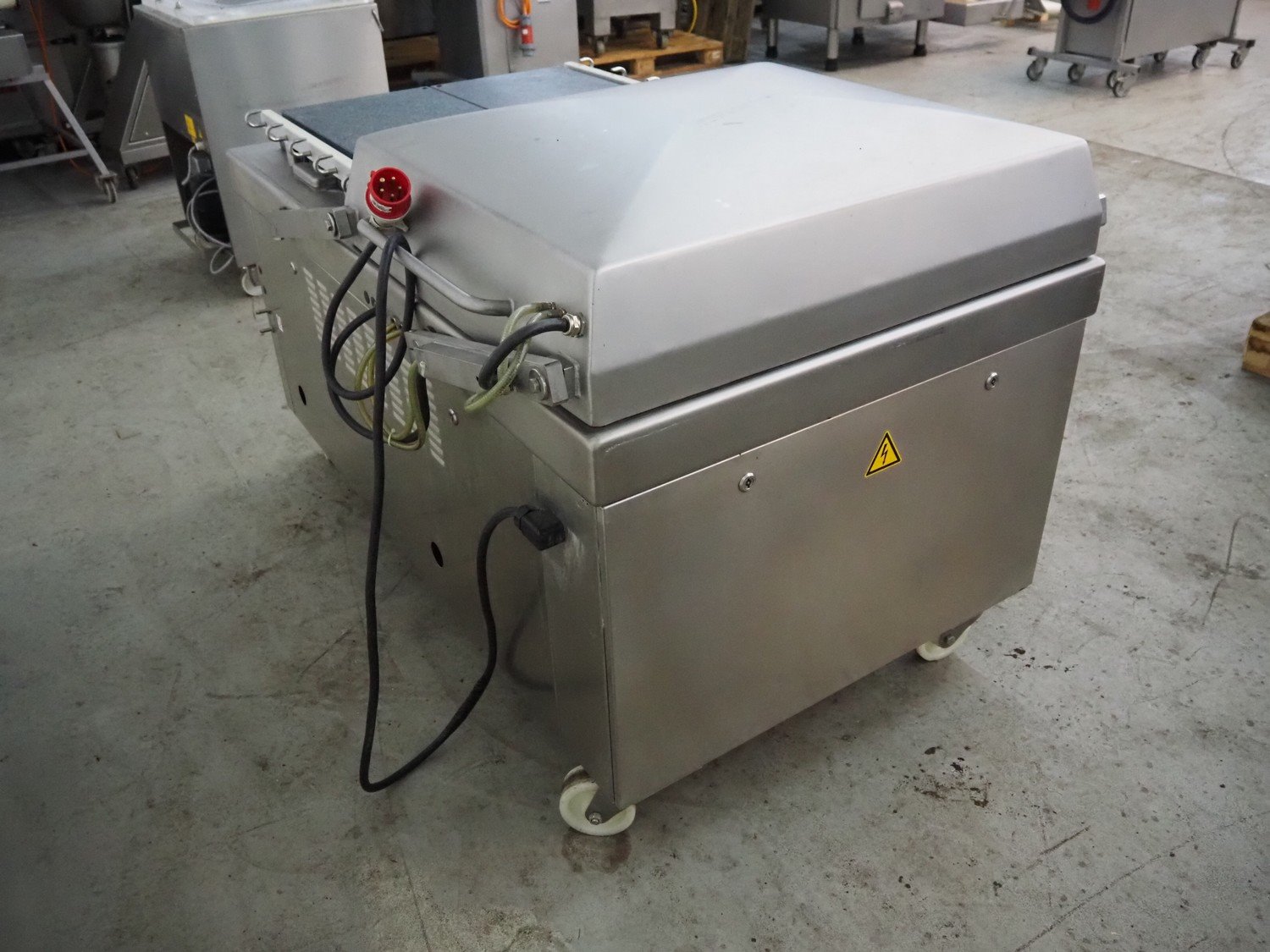 Multivac mobile double chamber vacuum machine, type: C500, serial number: 155219, year of construction: 2011, 400 V, 3 Ph, 50 Hz, 6 kW, 28/32 A, seal length: (4x) 665 mm, dimensions chamber: 850 mm x 700 mm, with Busch vacuum pump, type: RA 0250 D 5Z1 CUZZ, capacity: 250 m³ per hour, total dimensions: 1650 mm x 1050 mm x 1350 mm. Kavel locatie: Denariusstraat 20, 4903 RC Oosterhout, Nederland