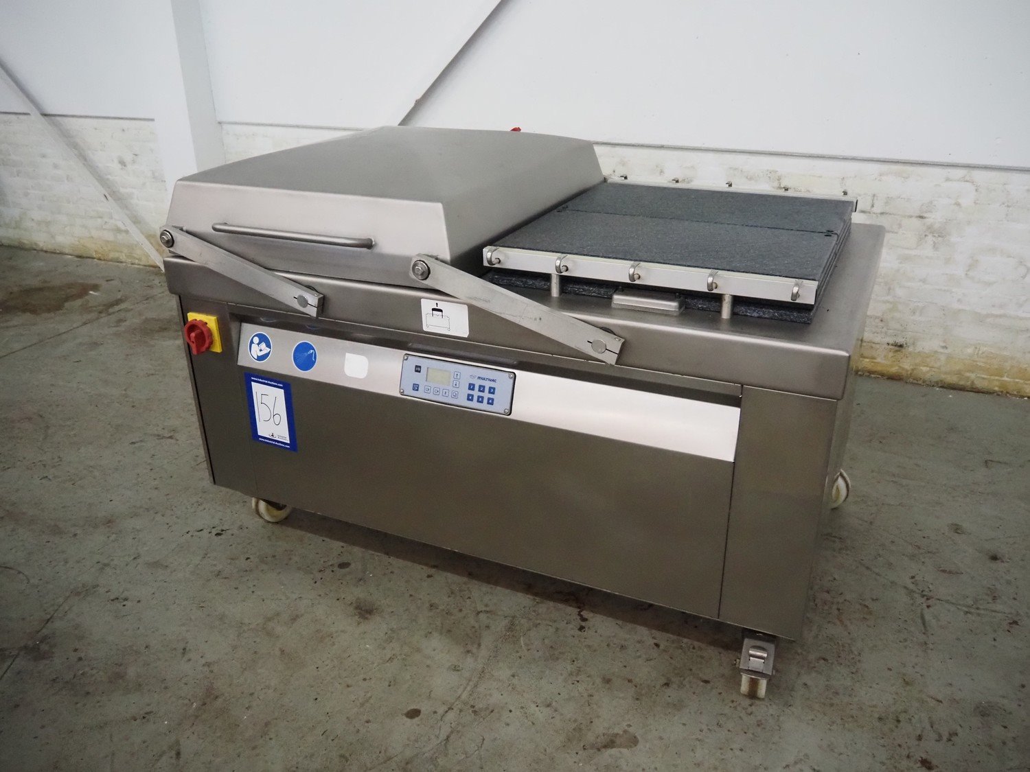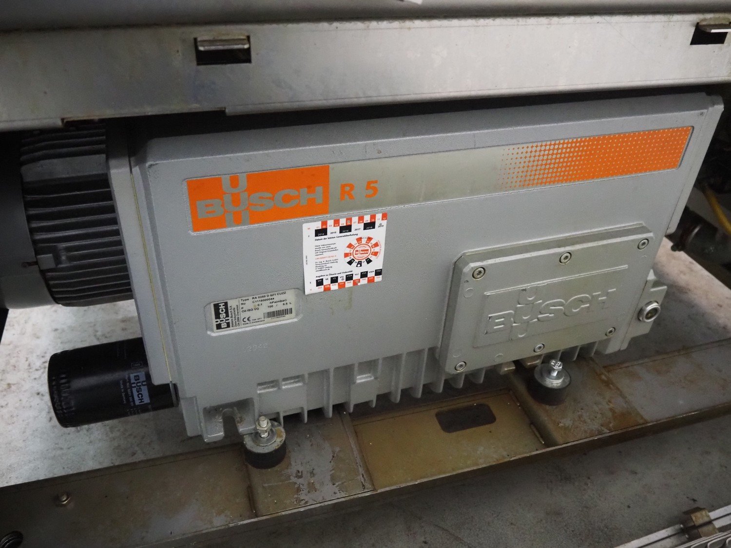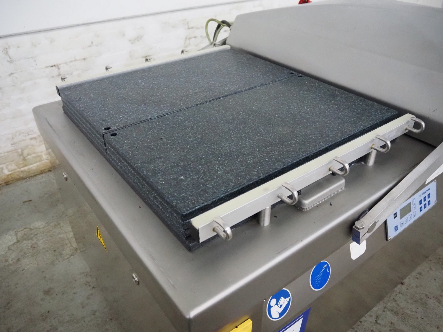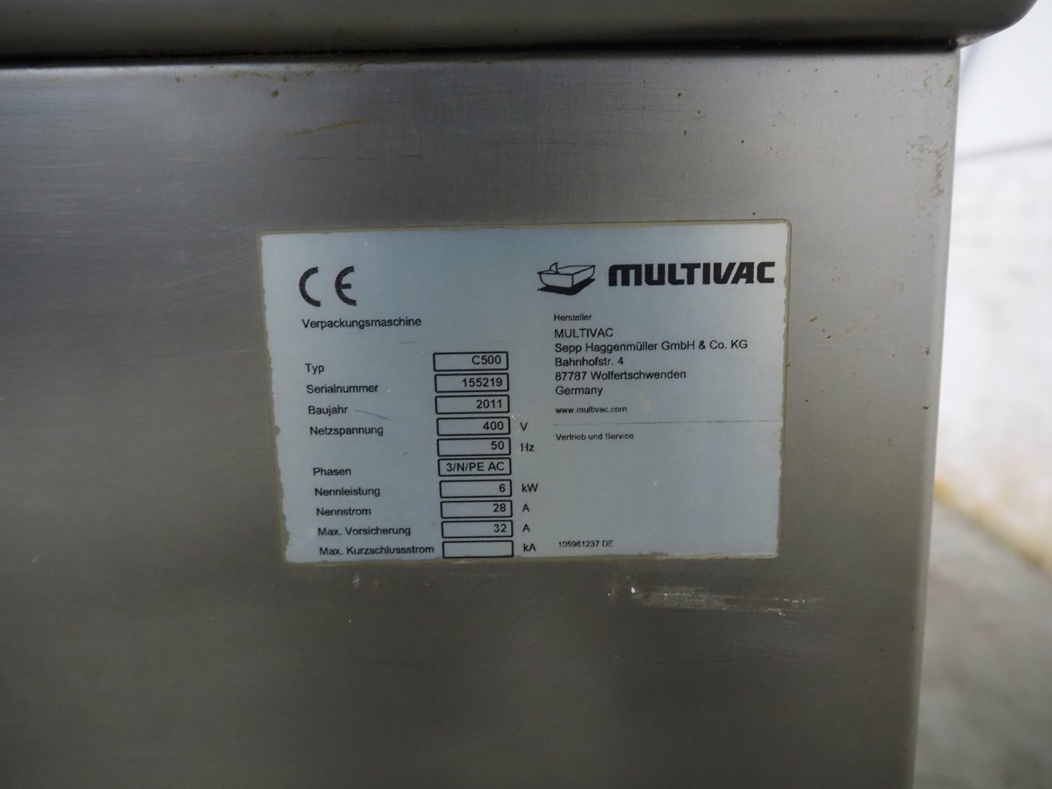 Multivac mobile double chamber vacuum machine, type: C500, serial number: 155219, year of construction: 2011, 400 V, 3 Ph, 50 Hz, 6 kW, 28/32 A, seal length: (4x) 665 mm, dimensions chamber: 850 mm x 700 mm, with Busch vacuum pump, type: RA 0250 D 5Z1 CUZZ, capacity: 250 m³ per hour, total dimensions: 1650 mm x 1050 mm x 1350 mm. Kavel locatie: Denariusstraat 20, 4903 RC Oosterhout, Nederland