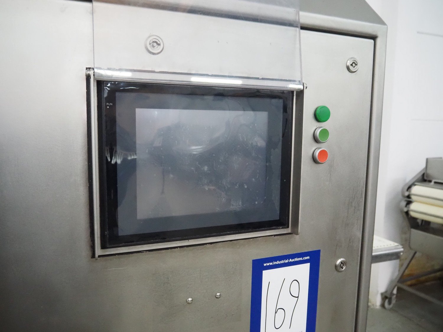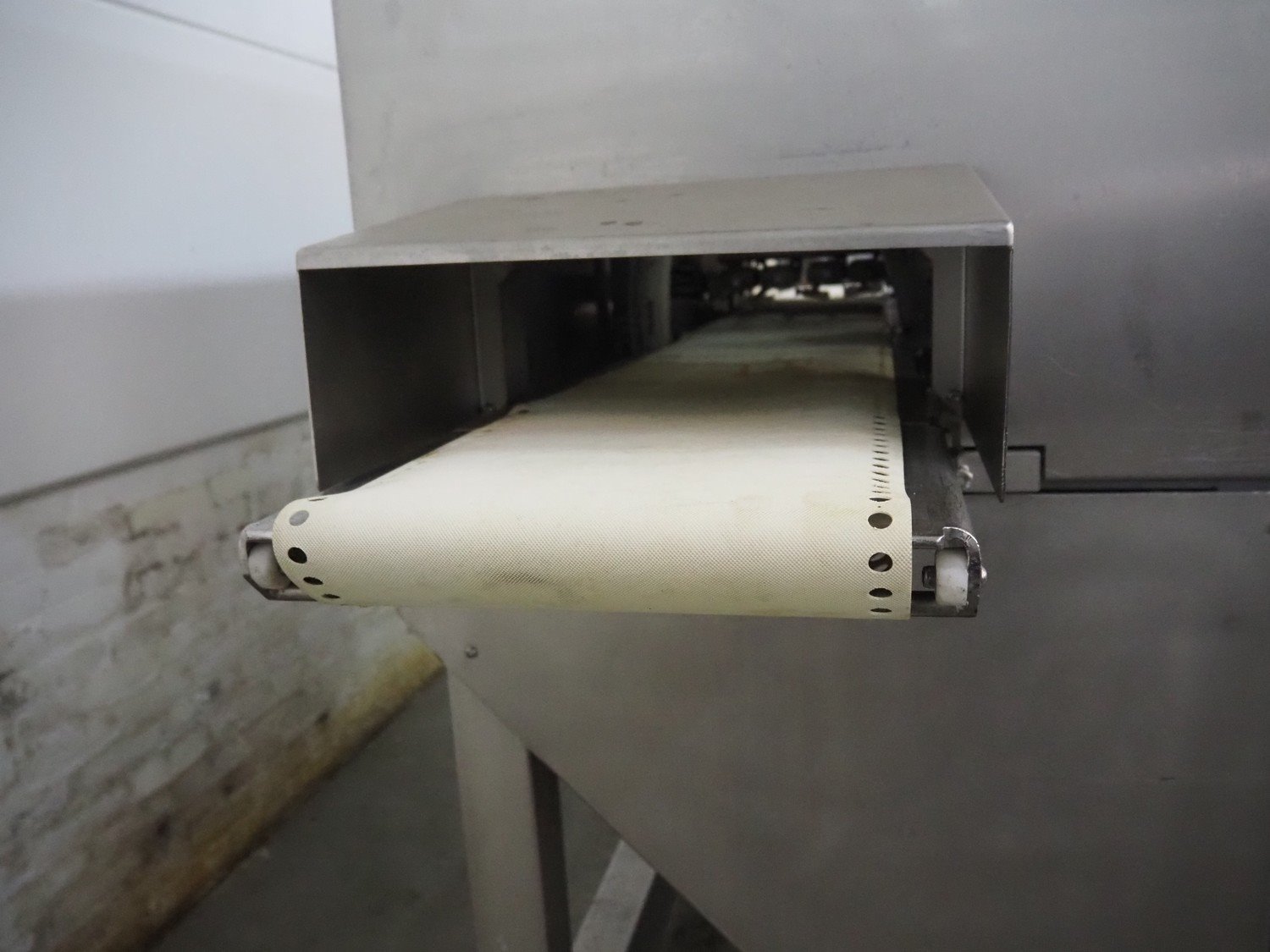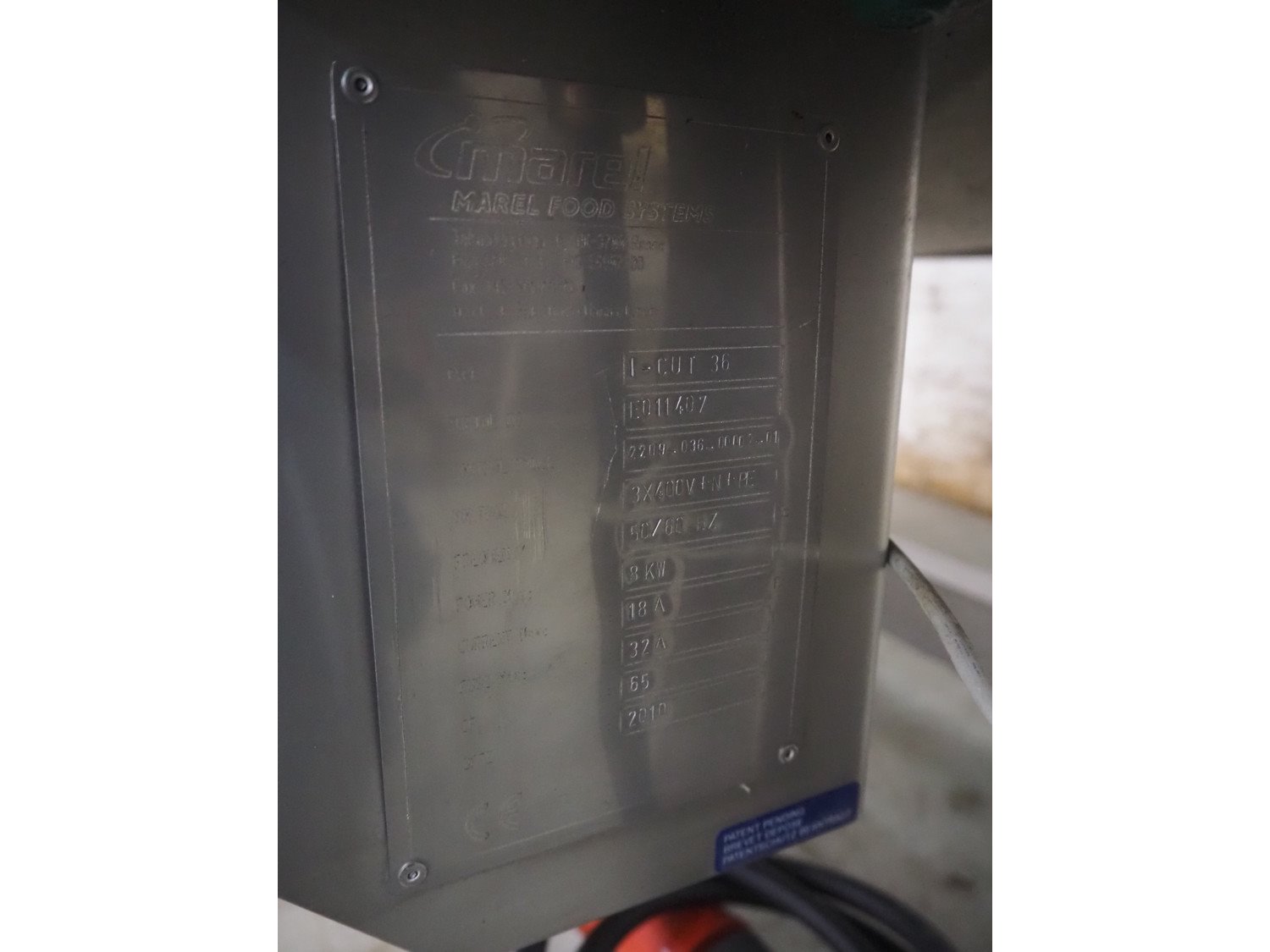 Marel portion cutter, type: I-CUT 36, serial number: E011407, year of construction: 2010, 400 V, 3 Ph, 50/60 Hz, 18 A, 8 kW, plastic belt, belt width: 300 mm, total dimensions: 3100 mm x 1300 mm x 1830 mm. Kavel locatie: Denariusstraat 20, 4903 RC Oosterhout, Nederland