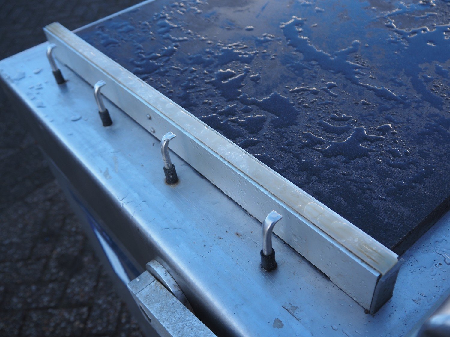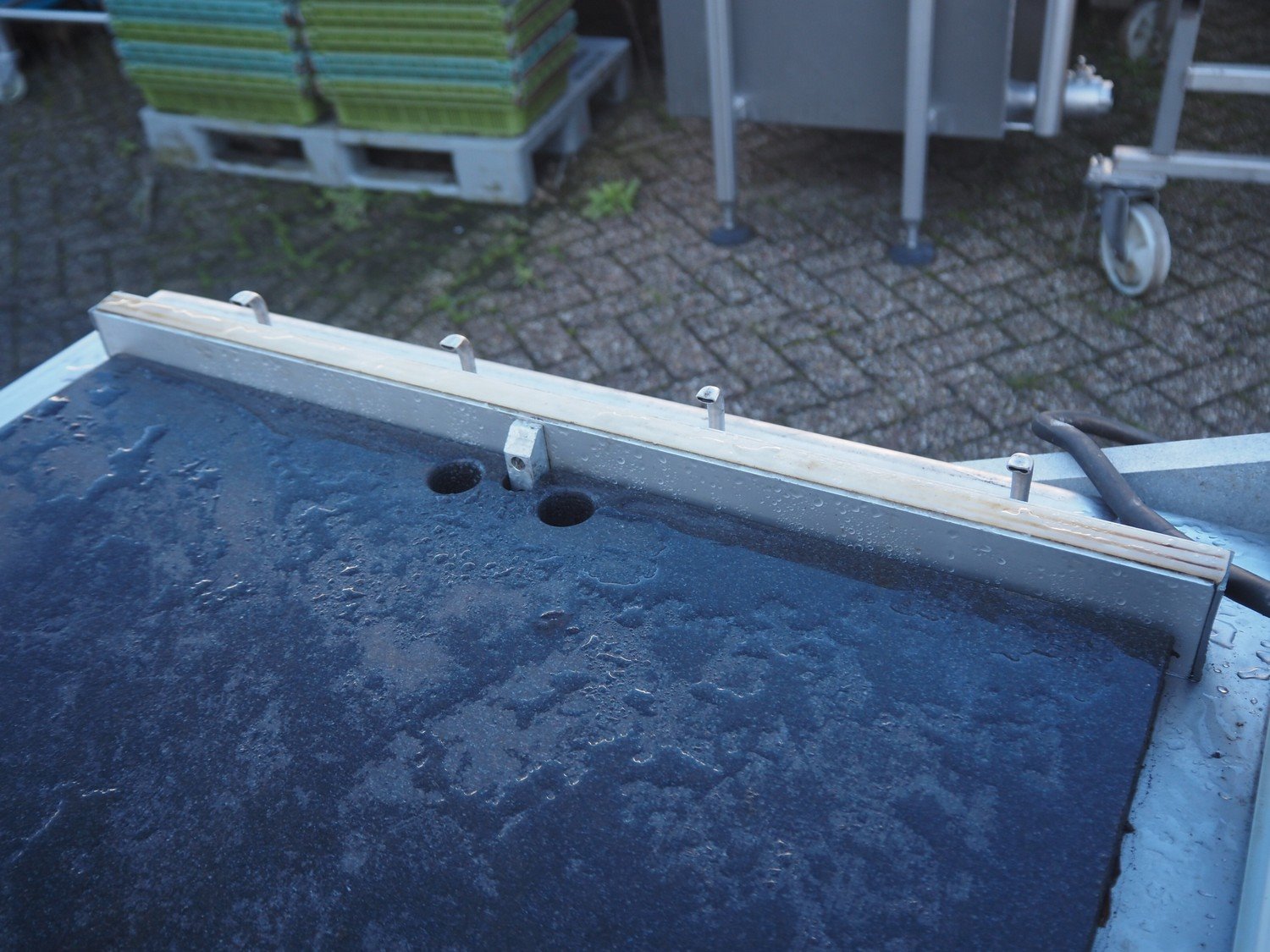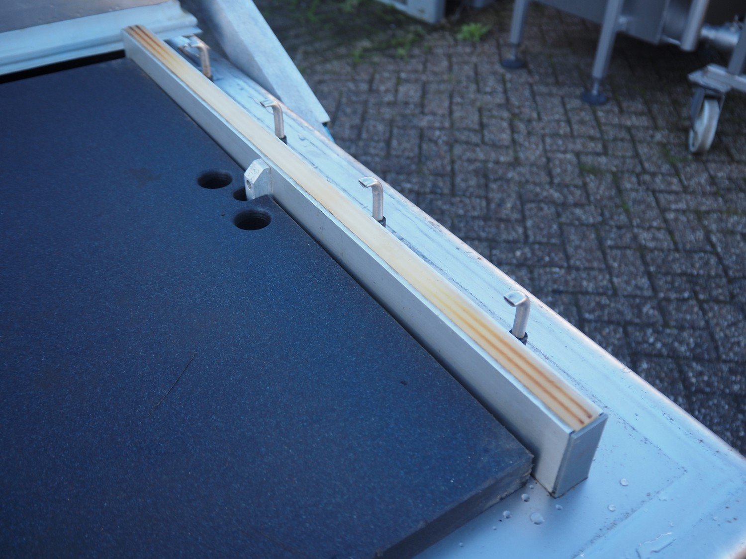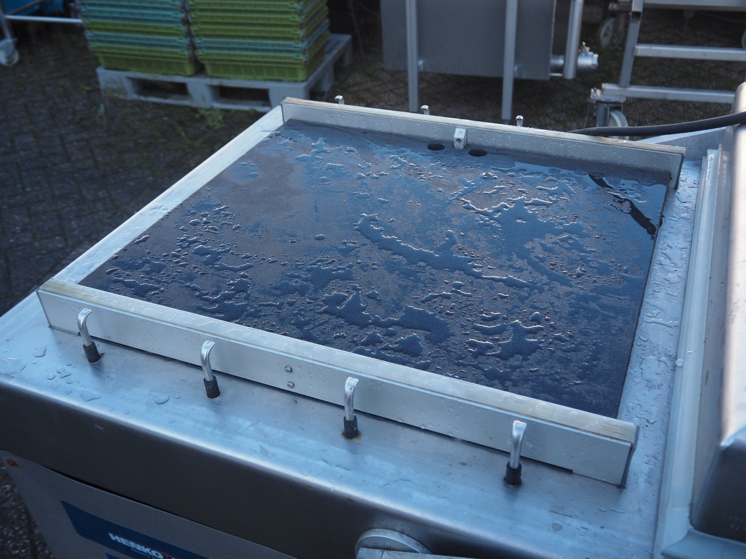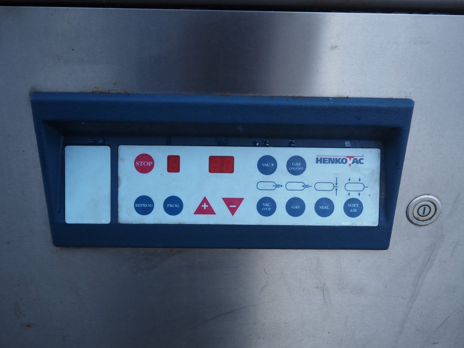 Henkovac mobile double chamber vacuum machine, seal length: (4x) 620 mm, chamber dimensions: (2x) 520 mm x 600 mmm, vacuum pump, total dimensions: 1600 mm x 870 mm x 1150 mm. Kavel locatie: Denariusstraat 20, 4903 RC Oosterhout, Nederland