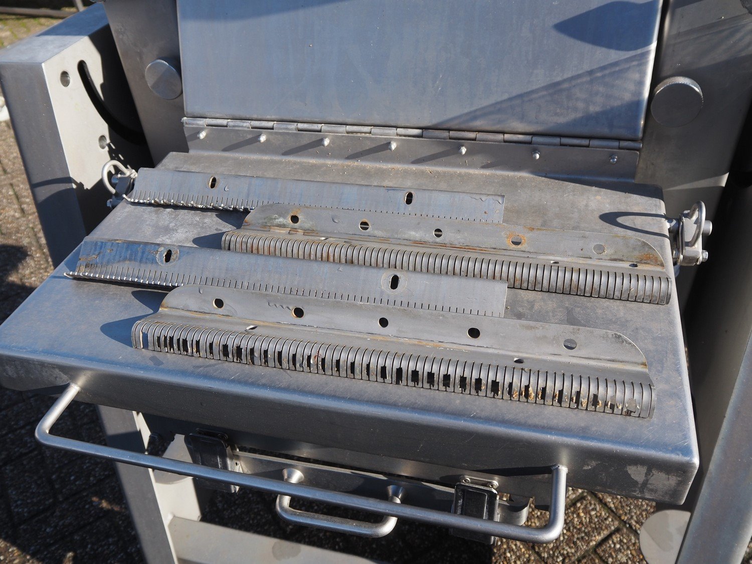 Grasselli S.p.A. automatic slicer, model: SL 400, working width: 395 mm, total dimensions: 1200 mm x 1030 mm x 1800 mm. Without knives. Kavel locatie: Denariusstraat 20, 4903 RC Oosterhout, Nederland