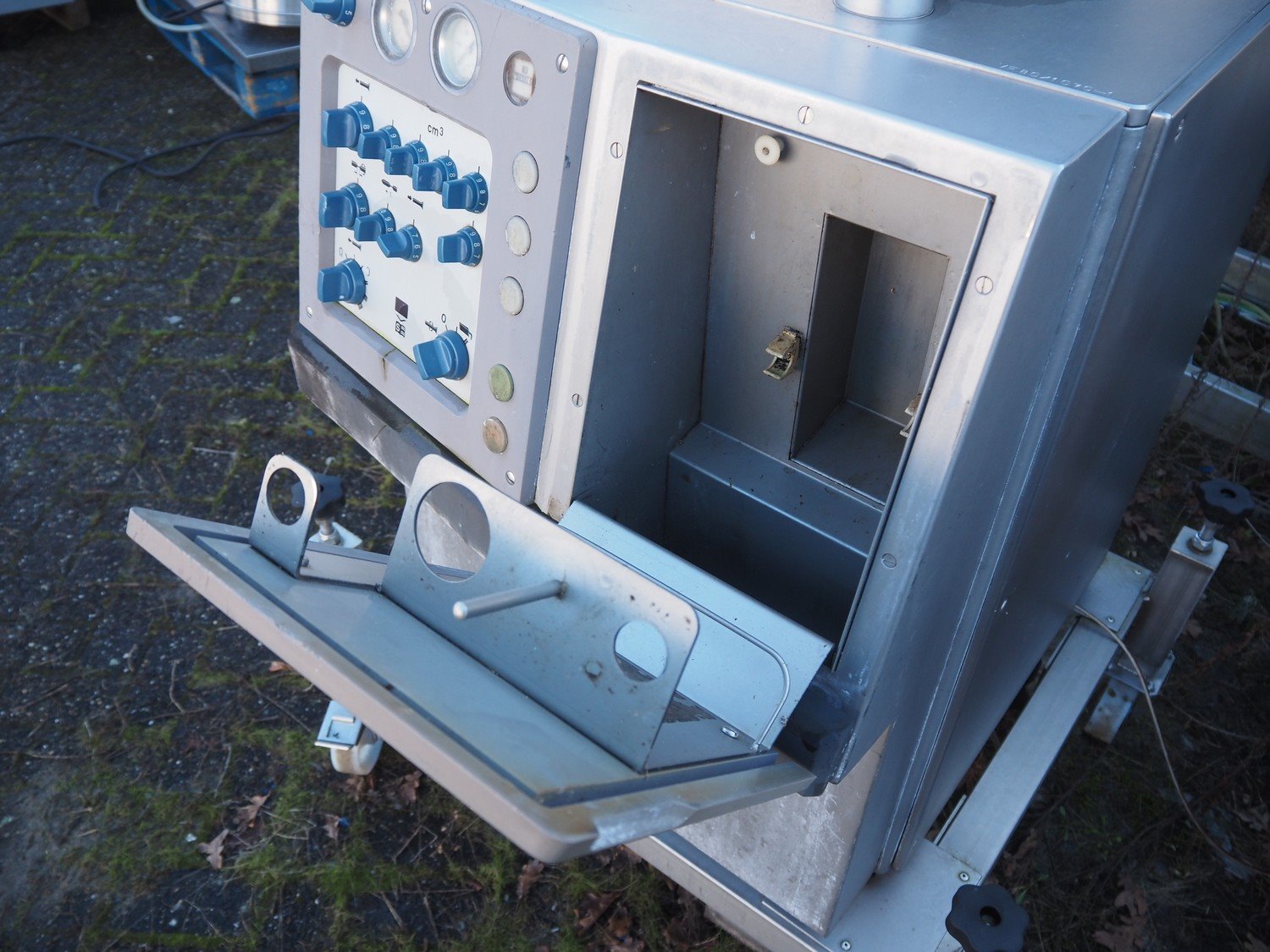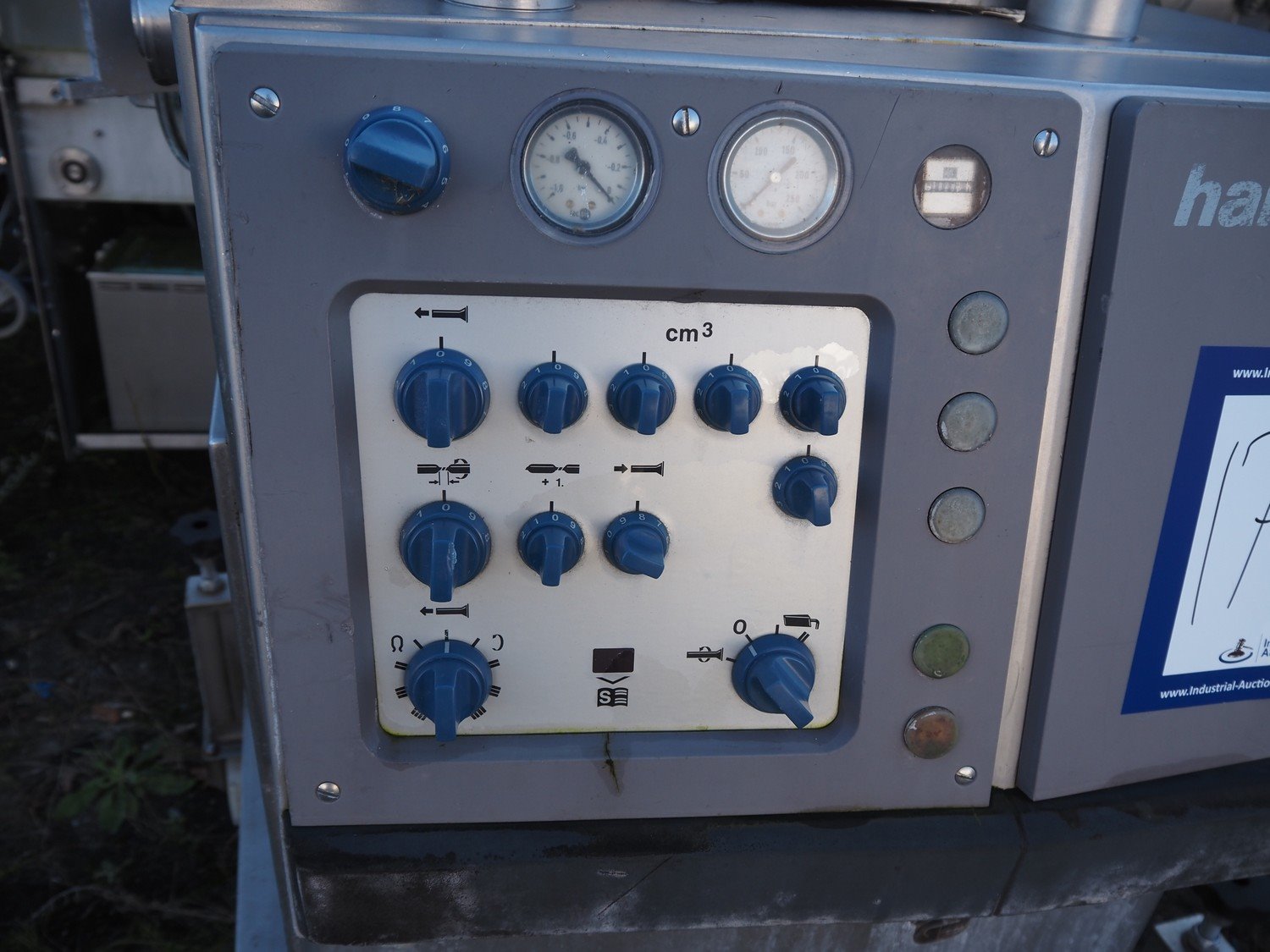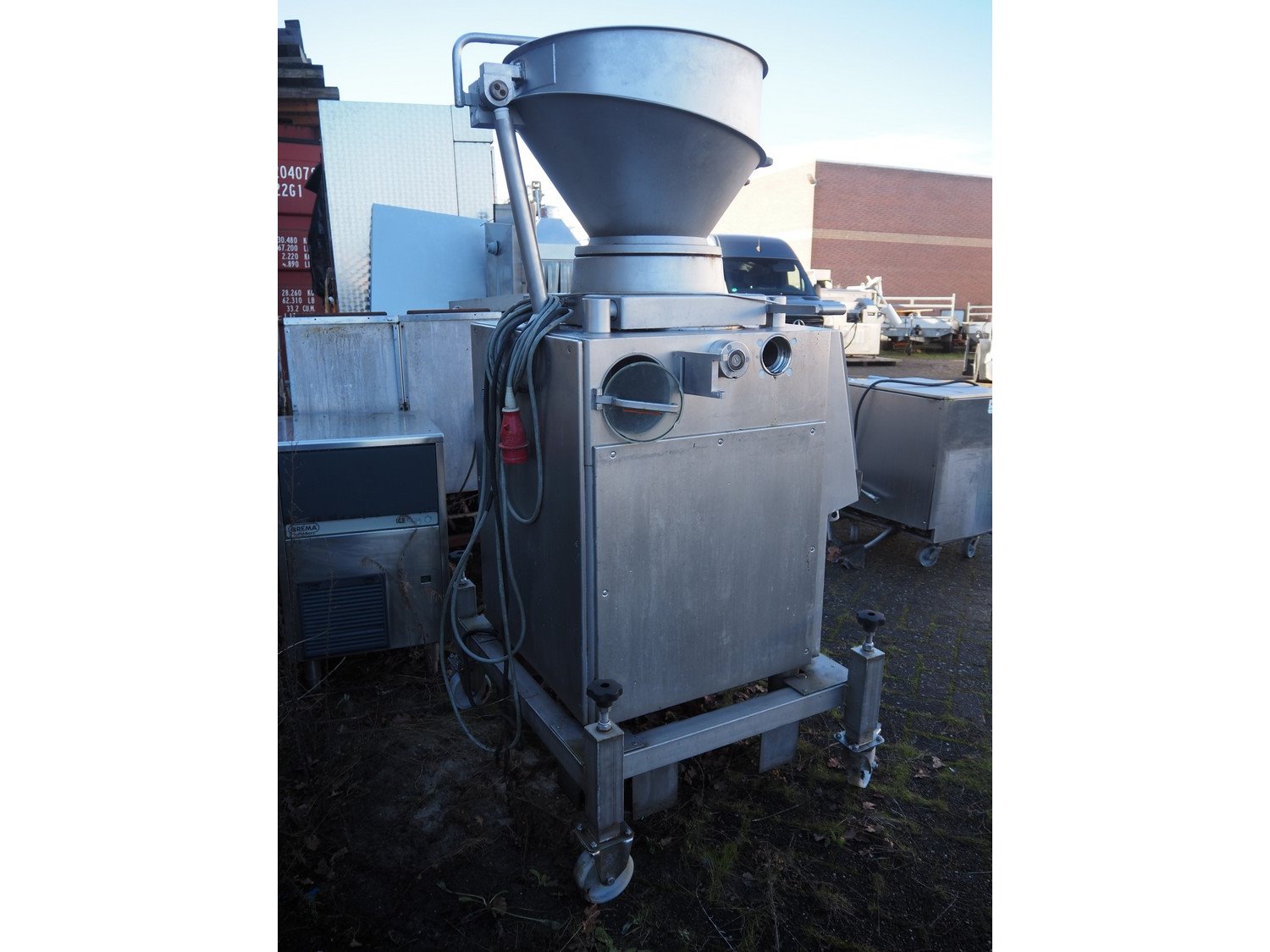 Handtmann vacuum filling machine om mobile frame, type: VF80, number: 1070, 380 V, 50 Hz, 9.15 A, 3.55 kW, vacuum pump, dimensions: 1050 mm x 880 mm x 1670 mm. Incomplete, without rotor and vanes. Kavel locatie: Denariusstraat 20, 4903 RC Oosterhout, Nederland