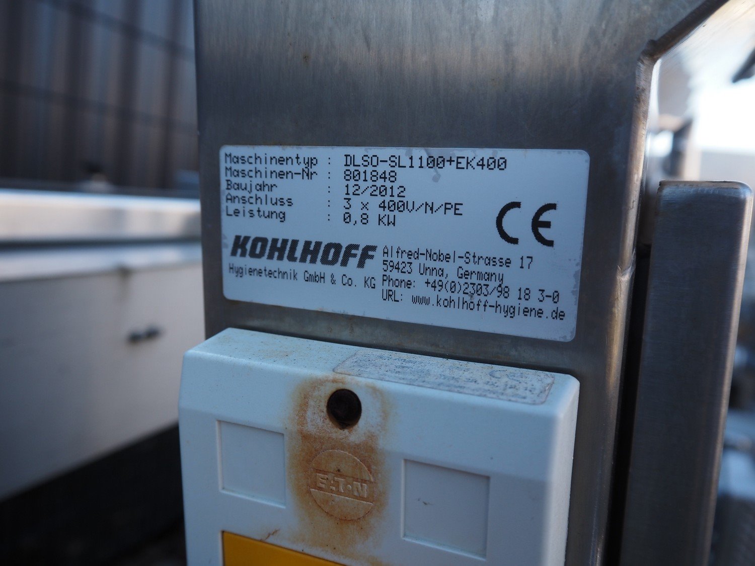 Kohlhoff Hygienetechnik GmbH & Co. KG hygiene station, type: DLSO-SL1100+EK400, number: 801848, year of construction: 12/2012, 400 V, 3 Ph, 0.8 kW, brush length: (2x) 700 mm, total dimensions: 1650 mm x 1000 mm x 1880 mm. Kavel locatie: Denariusstraat 20, 4903 RC Oosterhout, Nederland