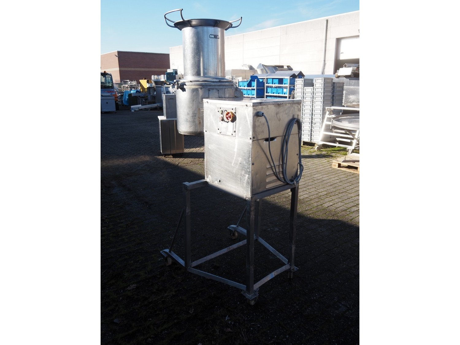 Mobile vegetable peeler/slicer, number: 457914, 380 V, dimensions: 1200 mm x 900 mm x 2150 mm. Kavel locatie: Denariusstraat 20, 4903 RC Oosterhout, Nederland