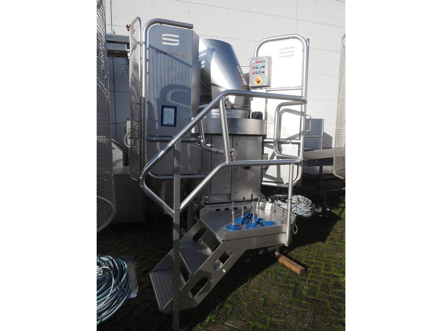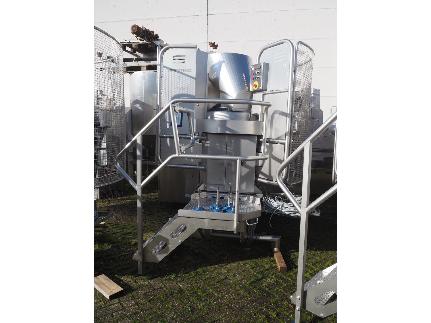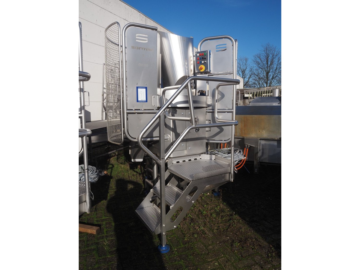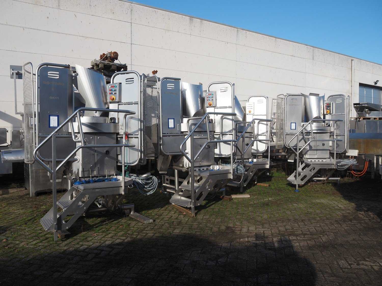 Sormac paprika decoring line consisting of: (4x) Sormac decoring machine, type: PO-30, serial numbers: PO-30/13/35, PO-30/13/34, PO-30/13/36, PO-30/13/37, year of construction: 2020, 400 V, 3 Ph, 50 Hz, 10 stations, station working width: Ø 130 mm each, total dimensions: (4x) 2400 mm x 2200 mm x 2600 mm. (4x) Sormac suction device for pit removing, dimensions: (4x) 2500 mm x 1100 mm x 1000 mm. Various Sormac s/s infeed, outfeed and elevating belts. Kavel locatie: Denariusstraat 20, 4903 RC Oosterhout, Nederland