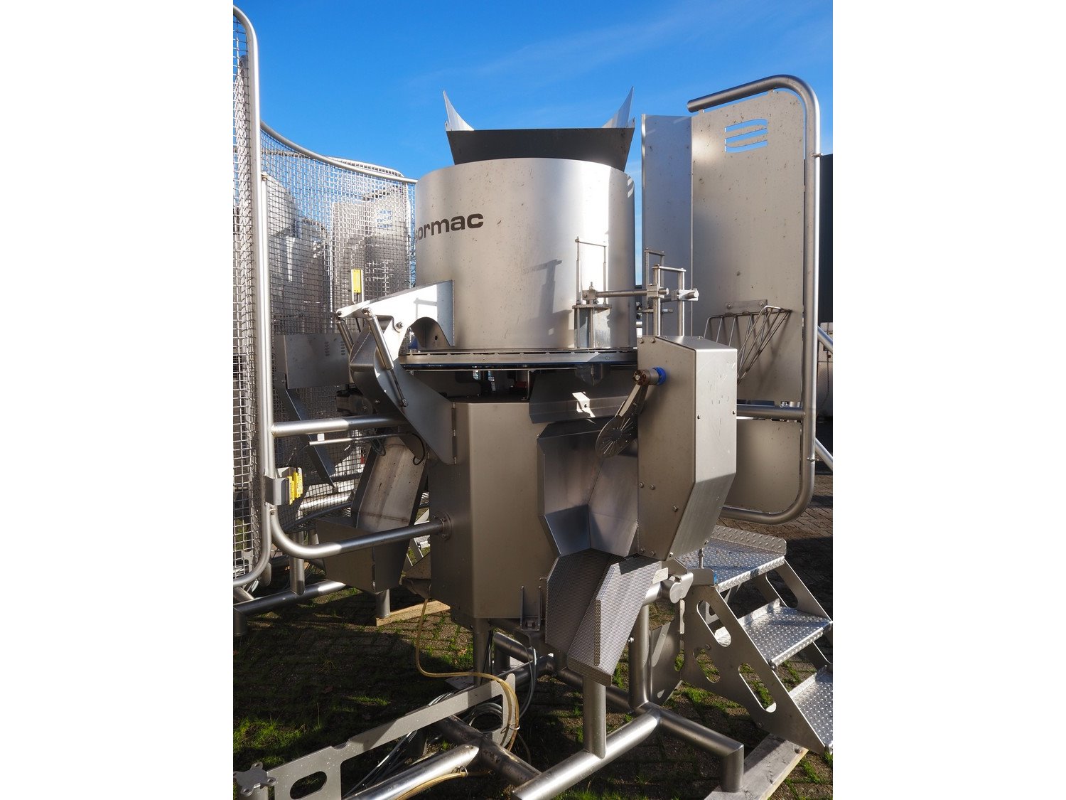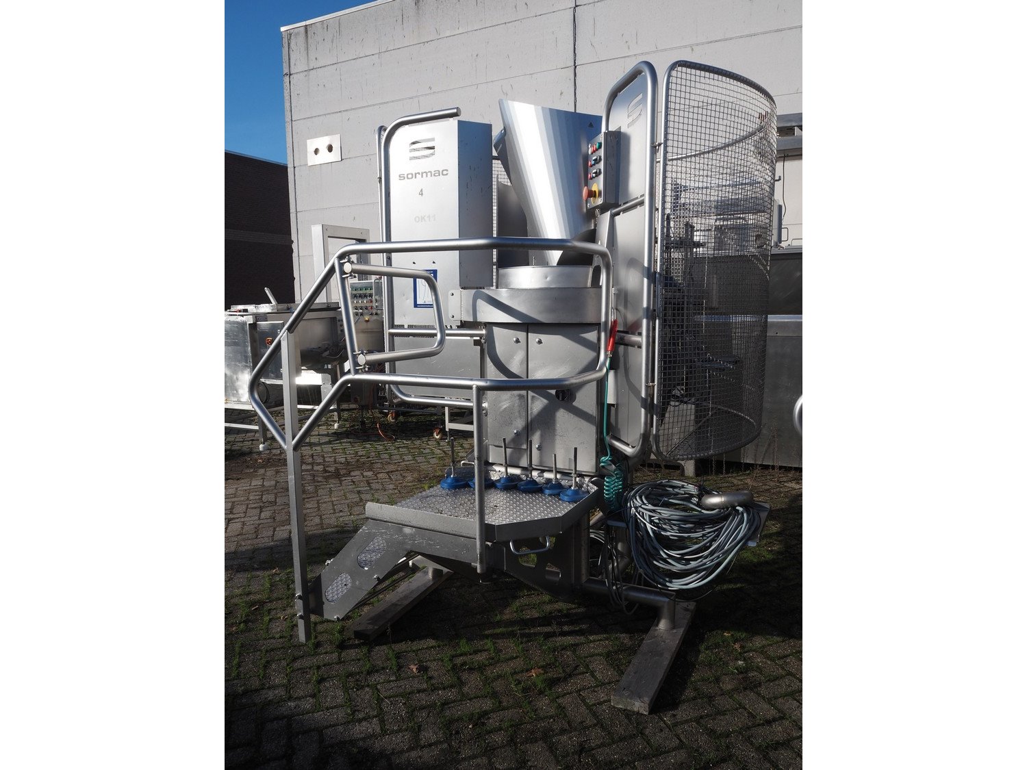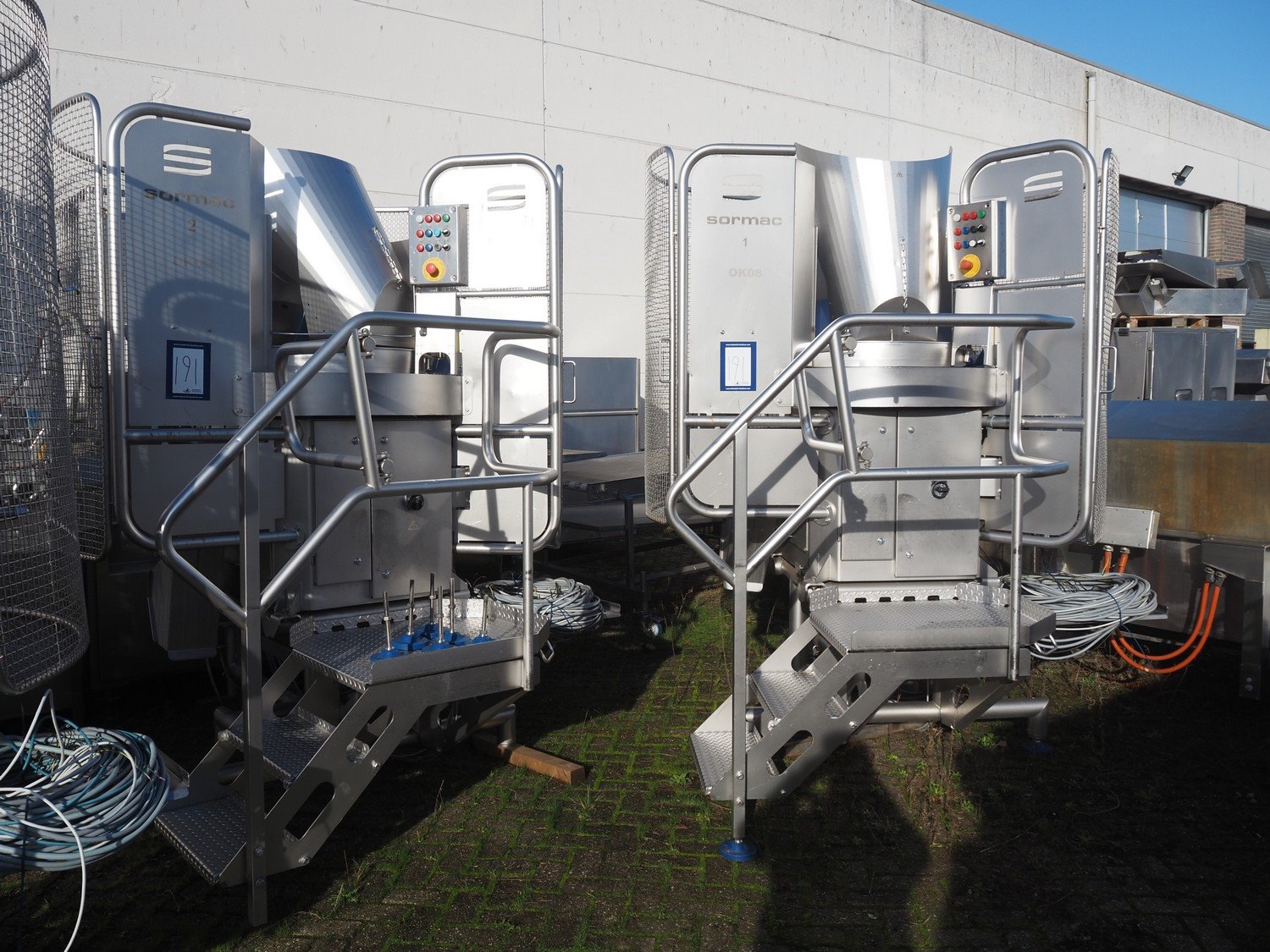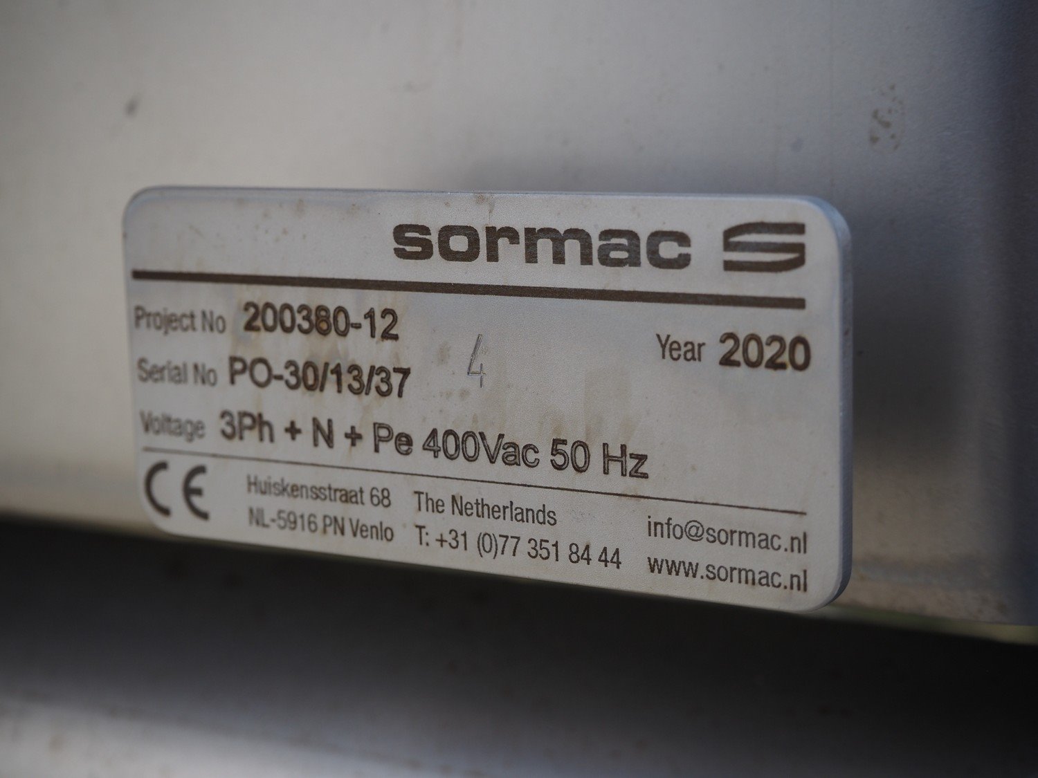 Sormac paprika decoring line consisting of: (4x) Sormac decoring machine, type: PO-30, serial numbers: PO-30/13/35, PO-30/13/34, PO-30/13/36, PO-30/13/37, year of construction: 2020, 400 V, 3 Ph, 50 Hz, 10 stations, station working width: Ø 130 mm each, total dimensions: (4x) 2400 mm x 2200 mm x 2600 mm. (4x) Sormac suction device for pit removing, dimensions: (4x) 2500 mm x 1100 mm x 1000 mm. Various Sormac s/s infeed, outfeed and elevating belts. Kavel locatie: Denariusstraat 20, 4903 RC Oosterhout, Nederland
