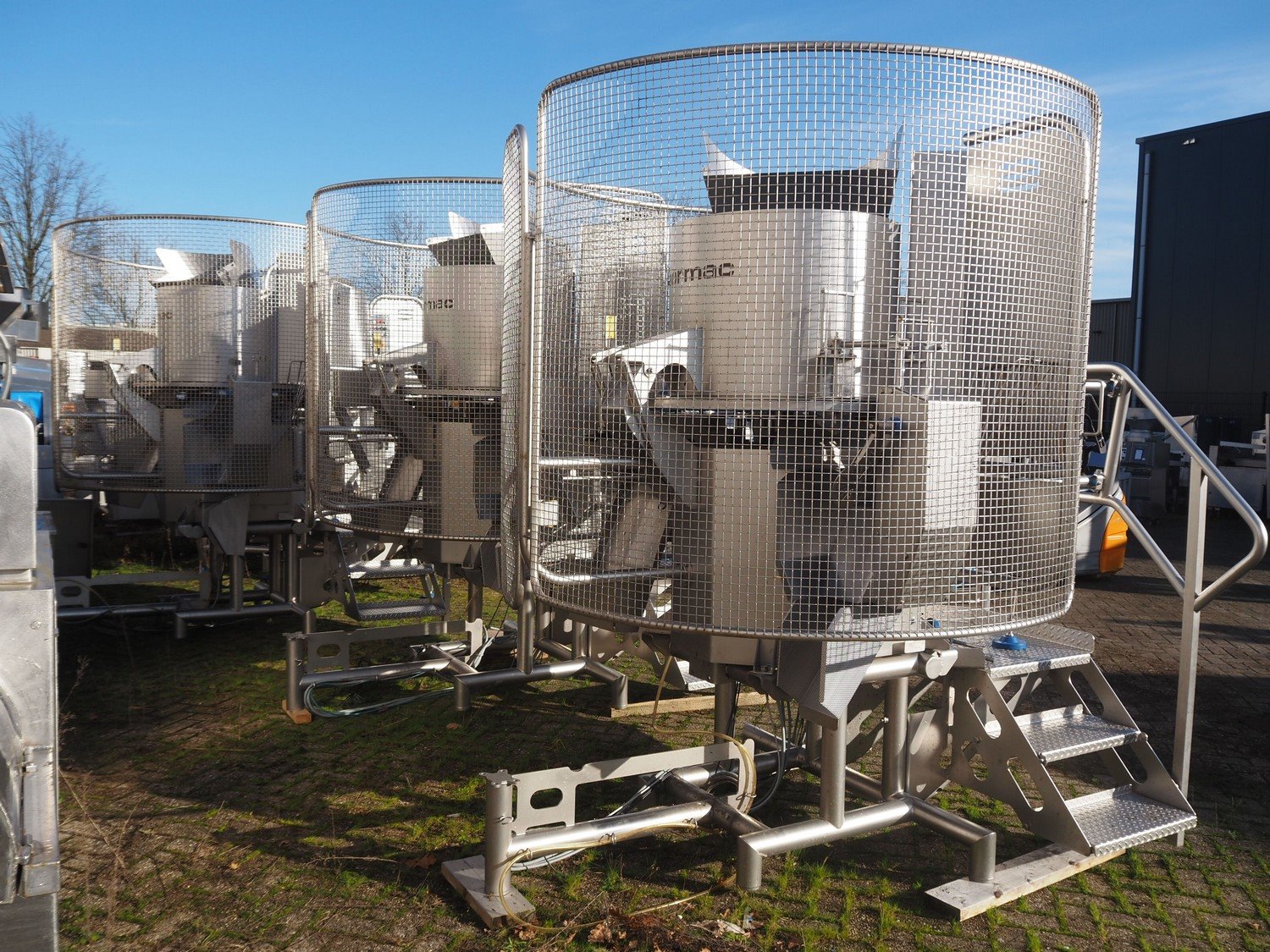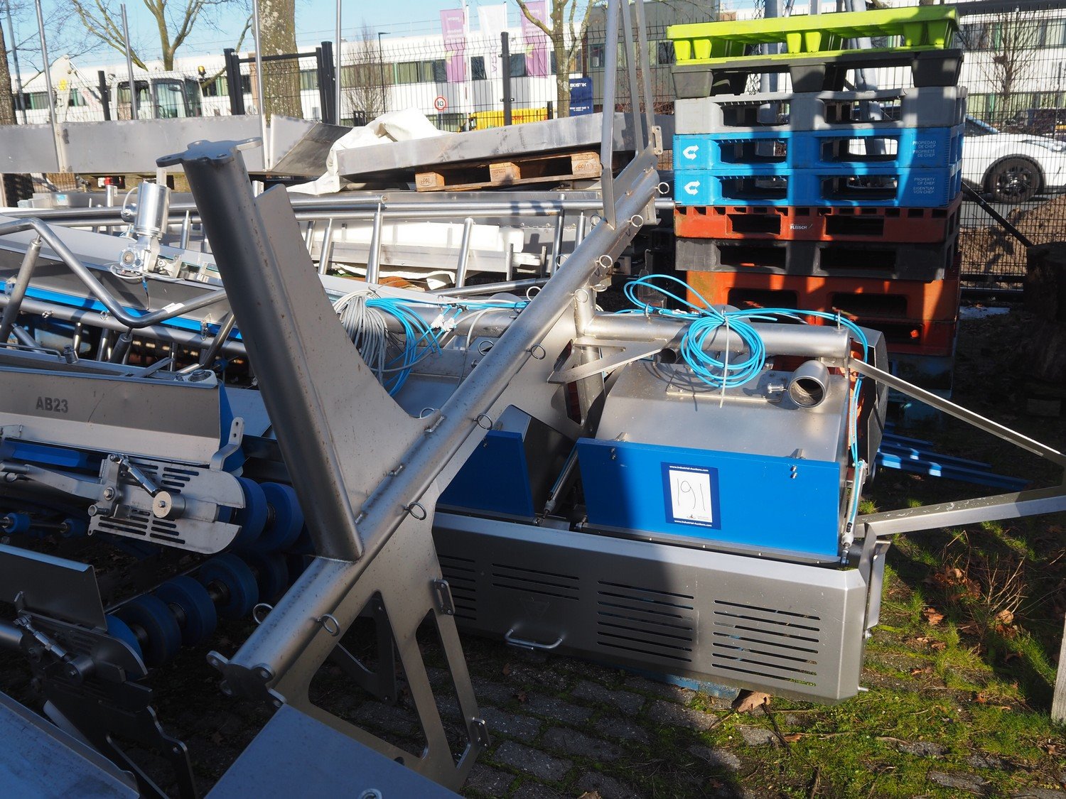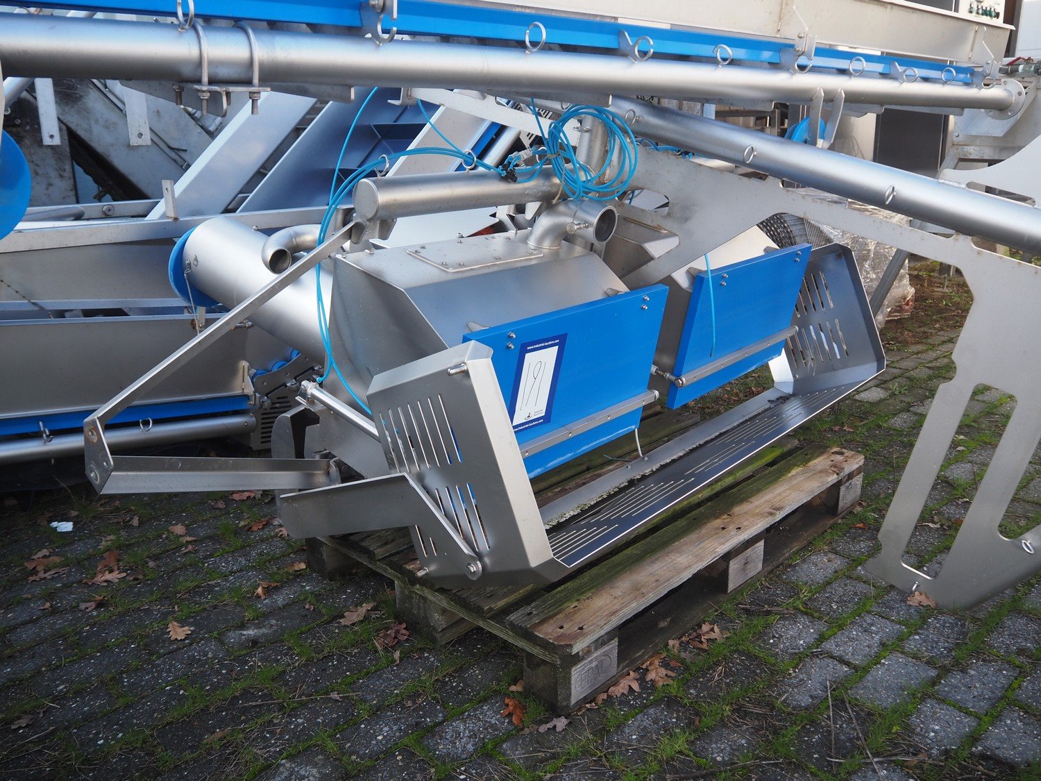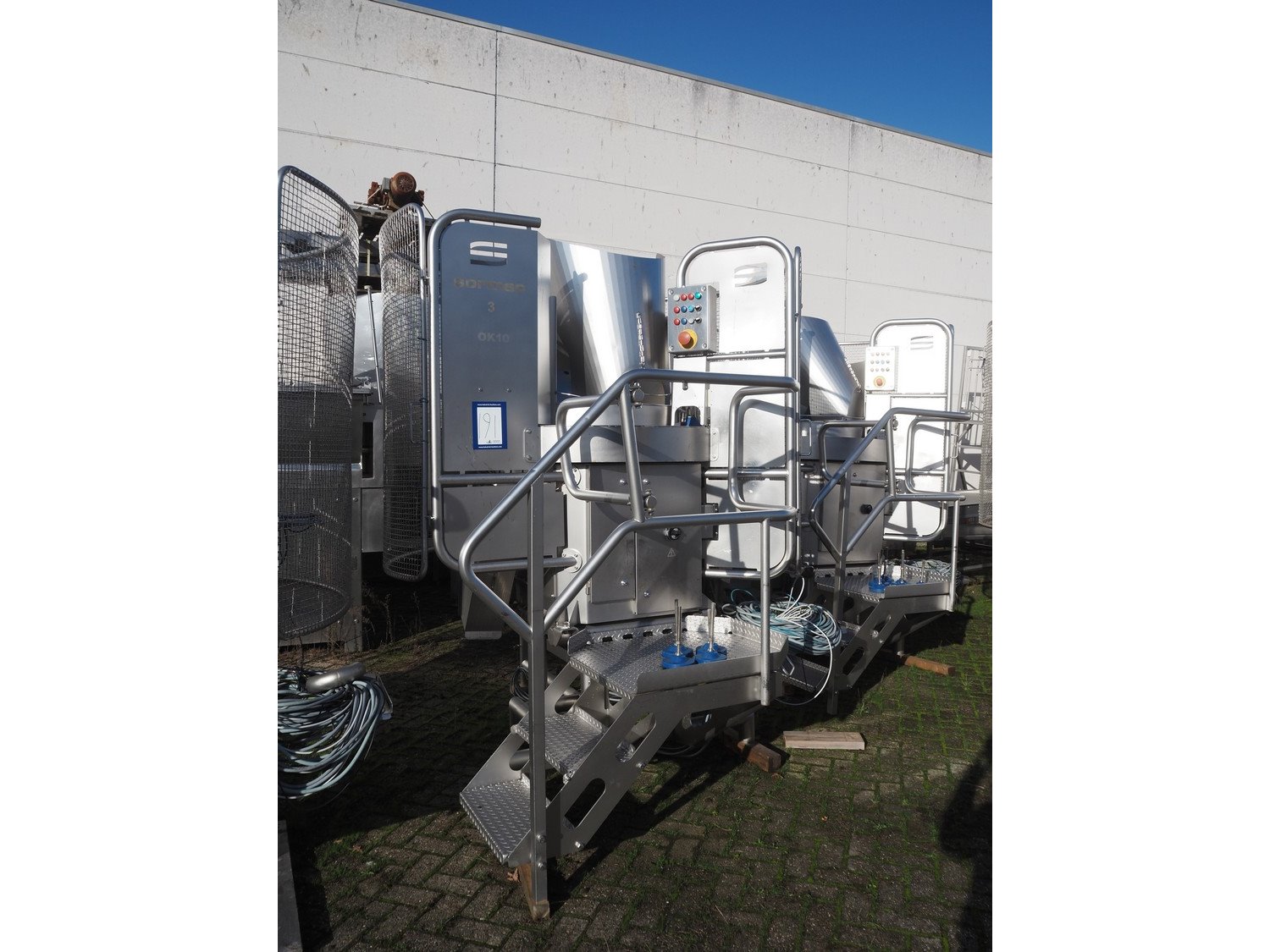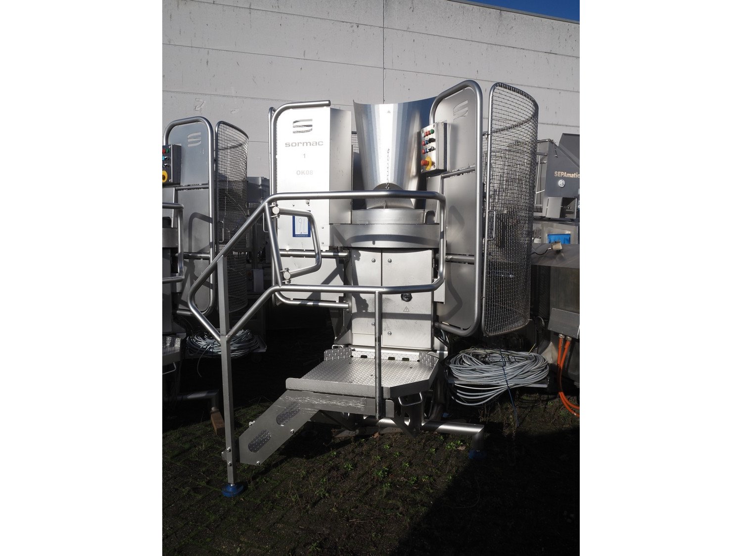 Sormac paprika decoring line consisting of: (4x) Sormac decoring machine, type: PO-30, serial numbers: PO-30/13/35, PO-30/13/34, PO-30/13/36, PO-30/13/37, year of construction: 2020, 400 V, 3 Ph, 50 Hz, 10 stations, station working width: Ø 130 mm each, total dimensions: (4x) 2400 mm x 2200 mm x 2600 mm. (4x) Sormac suction device for pit removing, dimensions: (4x) 2500 mm x 1100 mm x 1000 mm. Various Sormac s/s infeed, outfeed and elevating belts. Kavel locatie: Denariusstraat 20, 4903 RC Oosterhout, Nederland