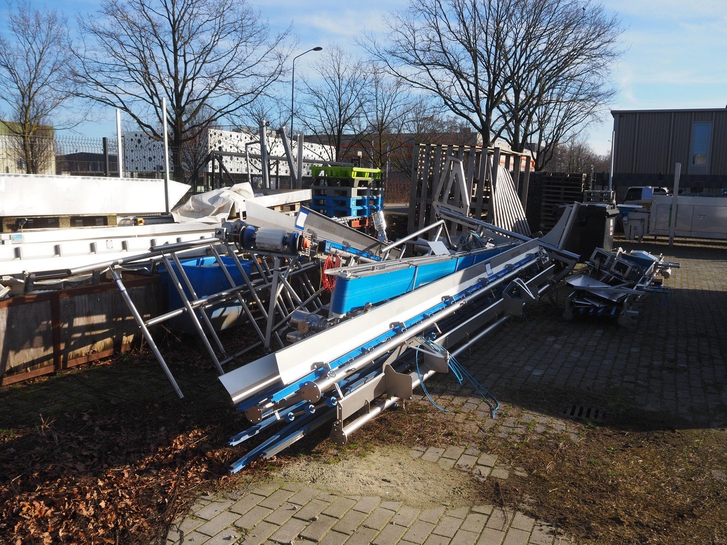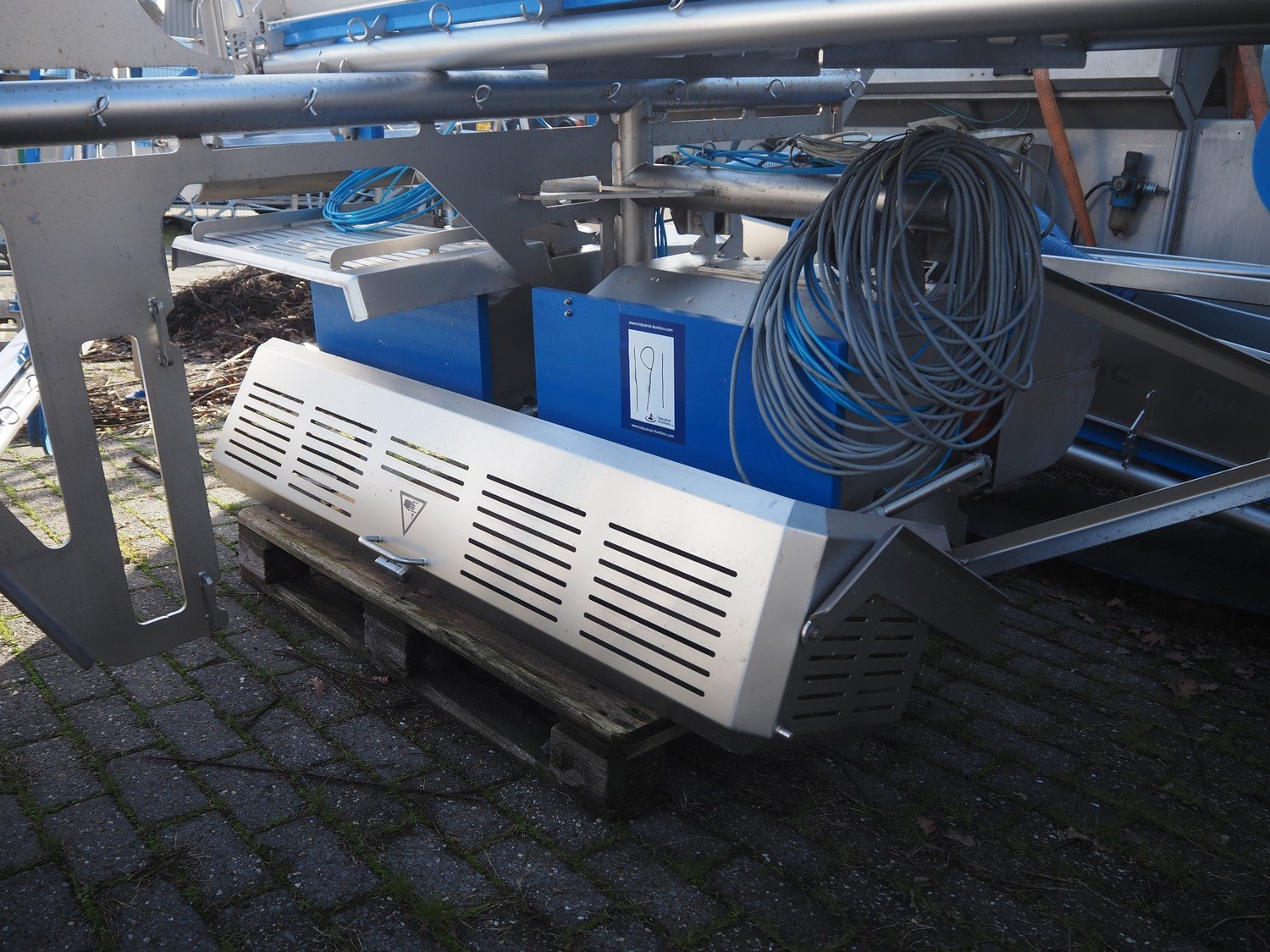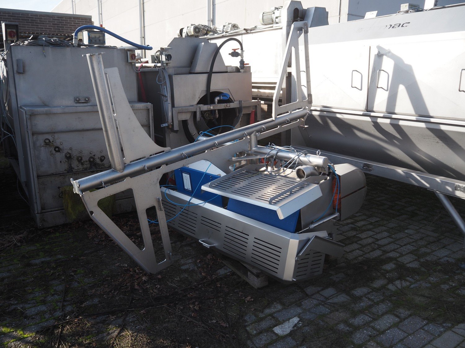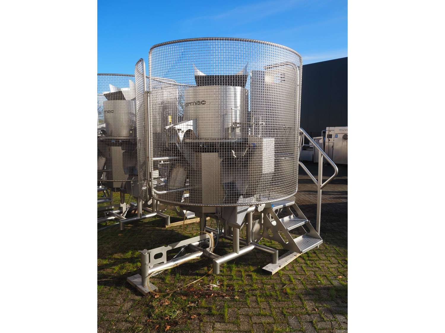 Sormac paprika decoring line consisting of: (4x) Sormac decoring machine, type: PO-30, serial numbers: PO-30/13/35, PO-30/13/34, PO-30/13/36, PO-30/13/37, year of construction: 2020, 400 V, 3 Ph, 50 Hz, 10 stations, station working width: Ø 130 mm each, total dimensions: (4x) 2400 mm x 2200 mm x 2600 mm. (4x) Sormac suction device for pit removing, dimensions: (4x) 2500 mm x 1100 mm x 1000 mm. Various Sormac s/s infeed, outfeed and elevating belts. Kavel locatie: Denariusstraat 20, 4903 RC Oosterhout, Nederland