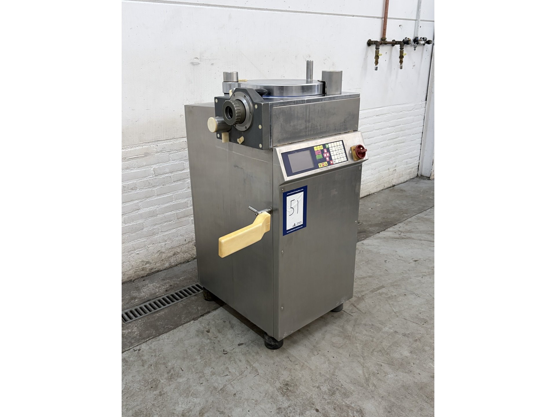 Frey Maschinenbau GmbH piston filler, type: Kompakta-2, serial number: K240 070388, 400 V, 3 Ph, 50 Hz, 3.6 kW, 30 bar, capacity: 40 liter, portioning range: 5-10.000 gram, maximum 250 portions per minute, weight: 448 kg, total dimensions: 880 mm x 780 mm x 1280 mm. Kavel locatie: Denariusstraat 20, 4903 RC Oosterhout, Nederland