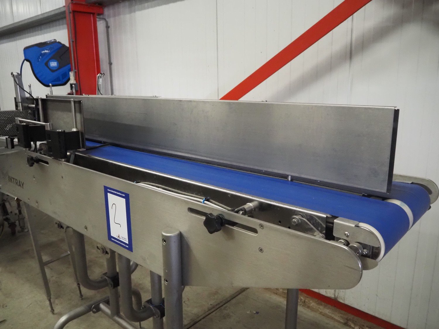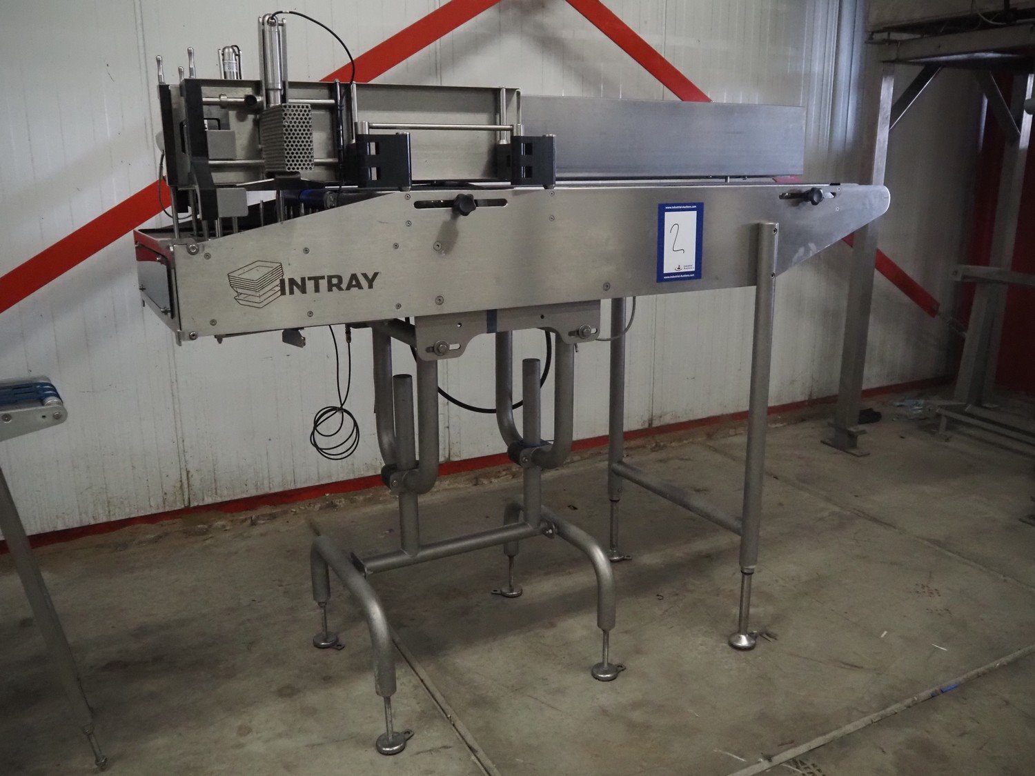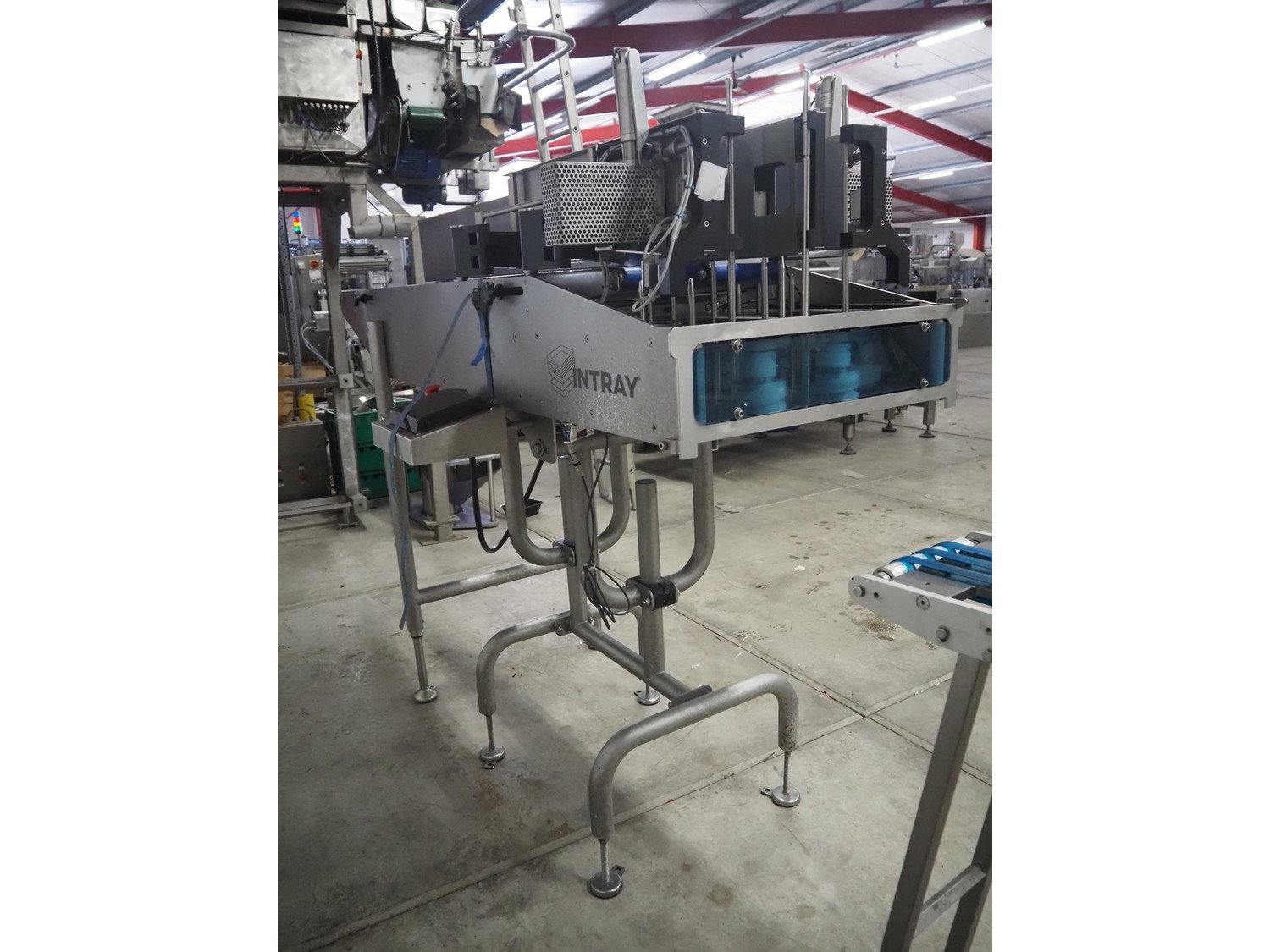 Intray denester, type: Buffer 1500, serial number: F-18269, year of construction: 2018, 230 V, 1 Ph, 50 Hz, 10 A, plastic belt, belt width: (2x) 170 mm, dimensions trays: (2x) 230 mm x 150 mm, total dimensions: 2000 mm x 650 mm x 1700 mm. Kavel locatie: Bedrijfsweg 7, 8304 AA Emmeloord, Nederland