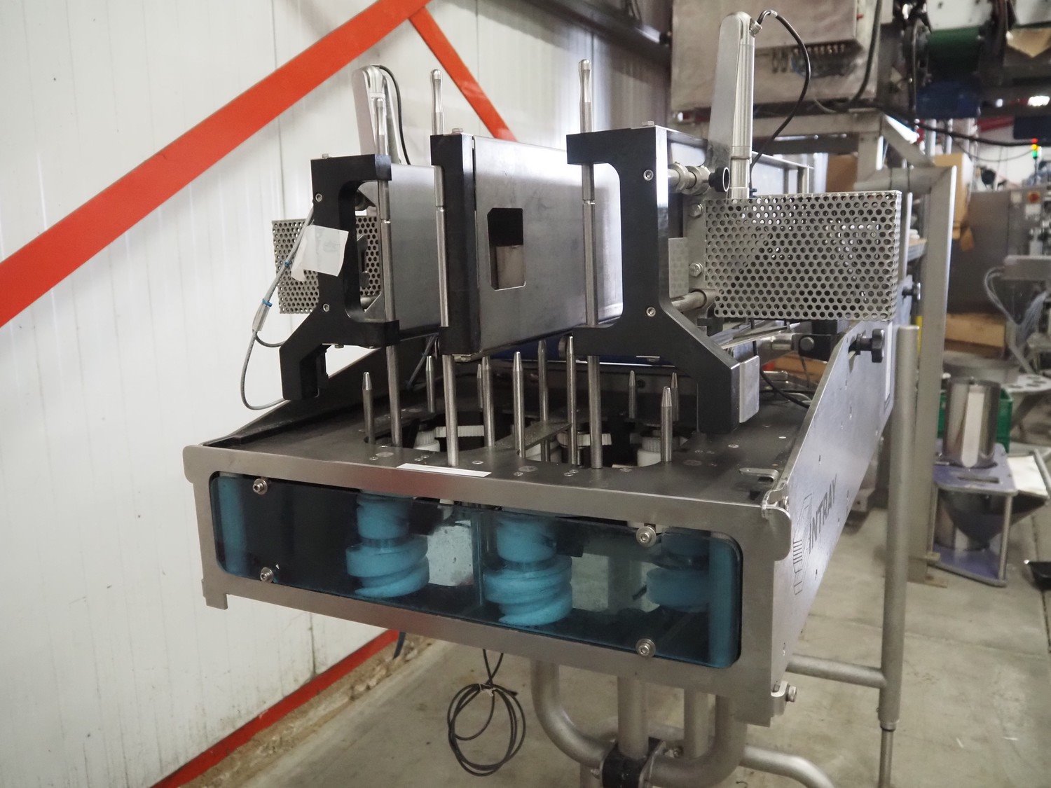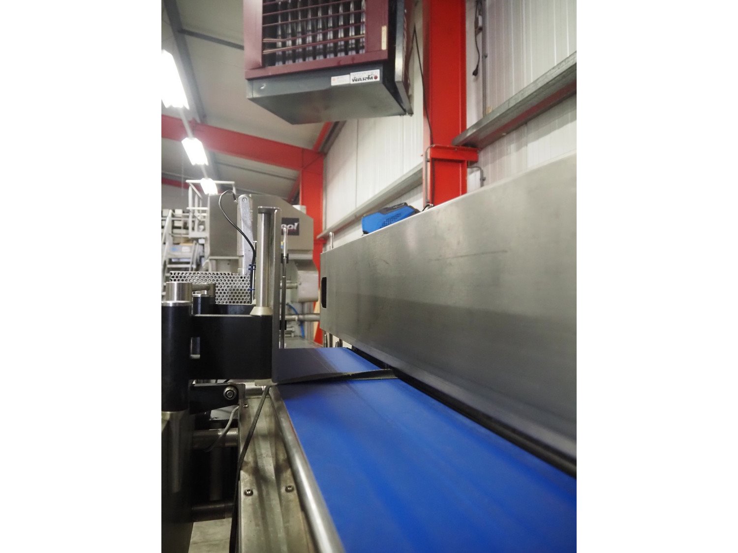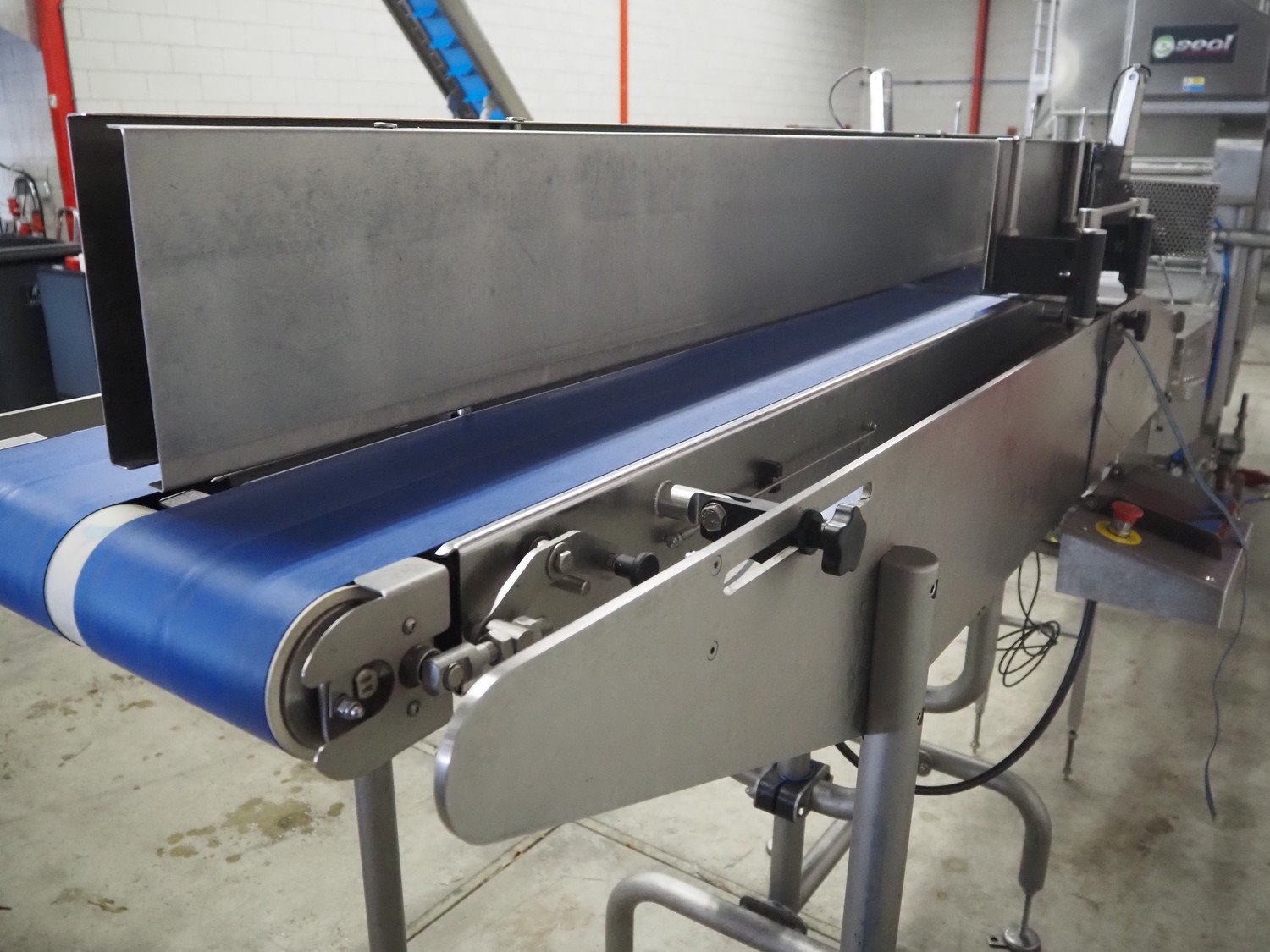 Intray denester, type: Buffer 1500, serial number: F-18269, year of construction: 2018, 230 V, 1 Ph, 50 Hz, 10 A, plastic belt, belt width: (2x) 170 mm, dimensions trays: (2x) 230 mm x 150 mm, total dimensions: 2000 mm x 650 mm x 1700 mm. Kavel locatie: Bedrijfsweg 7, 8304 AA Emmeloord, Nederland