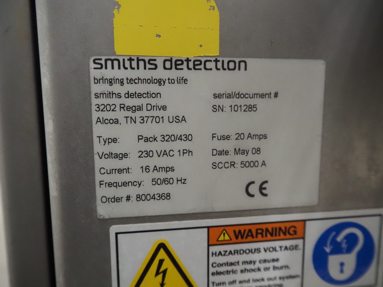 Smiths detection X-Ray scanner, type: Pack 320/430, X-ray tube assembly type: HI-RAY 7, serial number: 101285, year of construction: 05-2008, plastic belt, clearance: 455 mm x 240 mm, total dimensions: 1550 mm x 900 mm x 2100 mm. Kavel locatie: Bedrijfsweg 7, 8304 AA Emmeloord, Nederland
