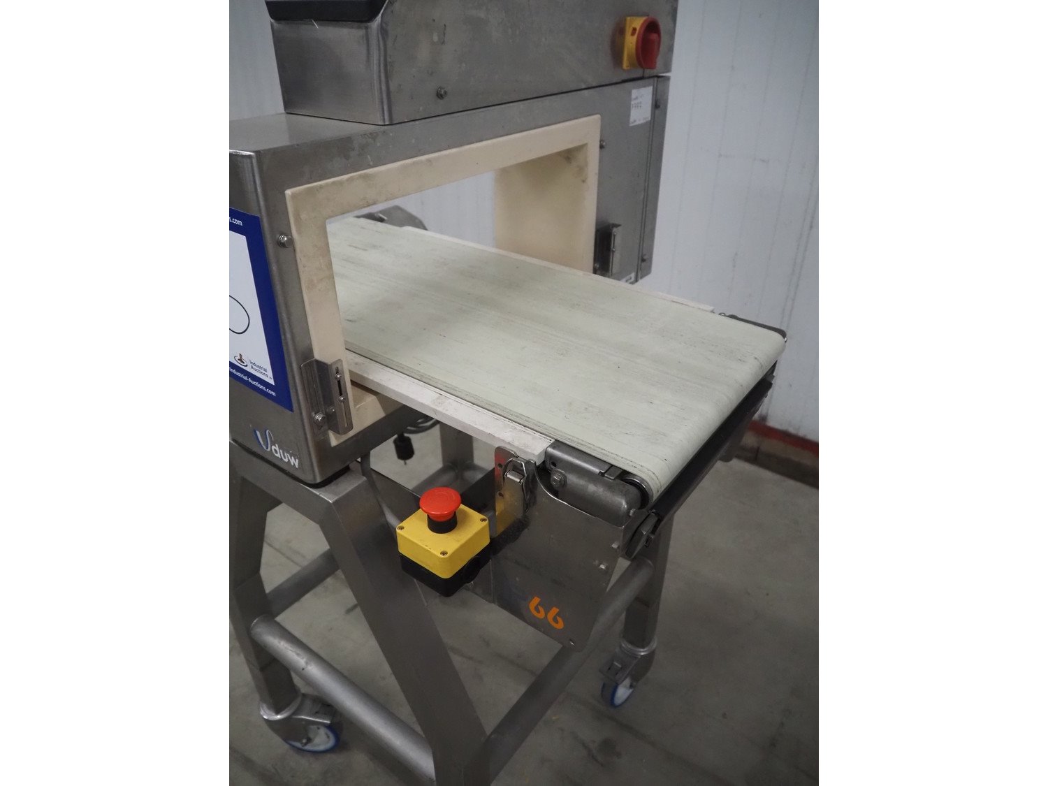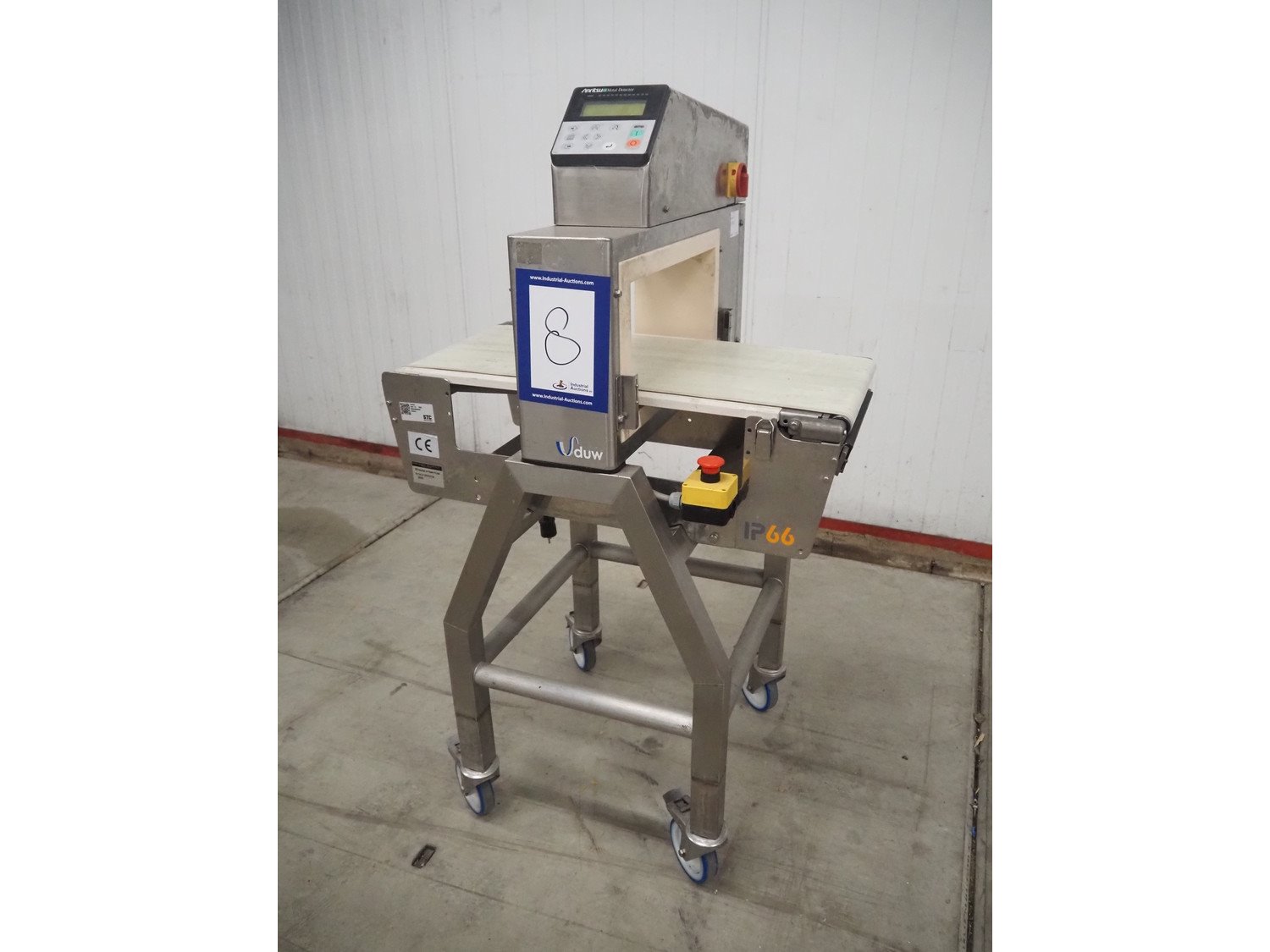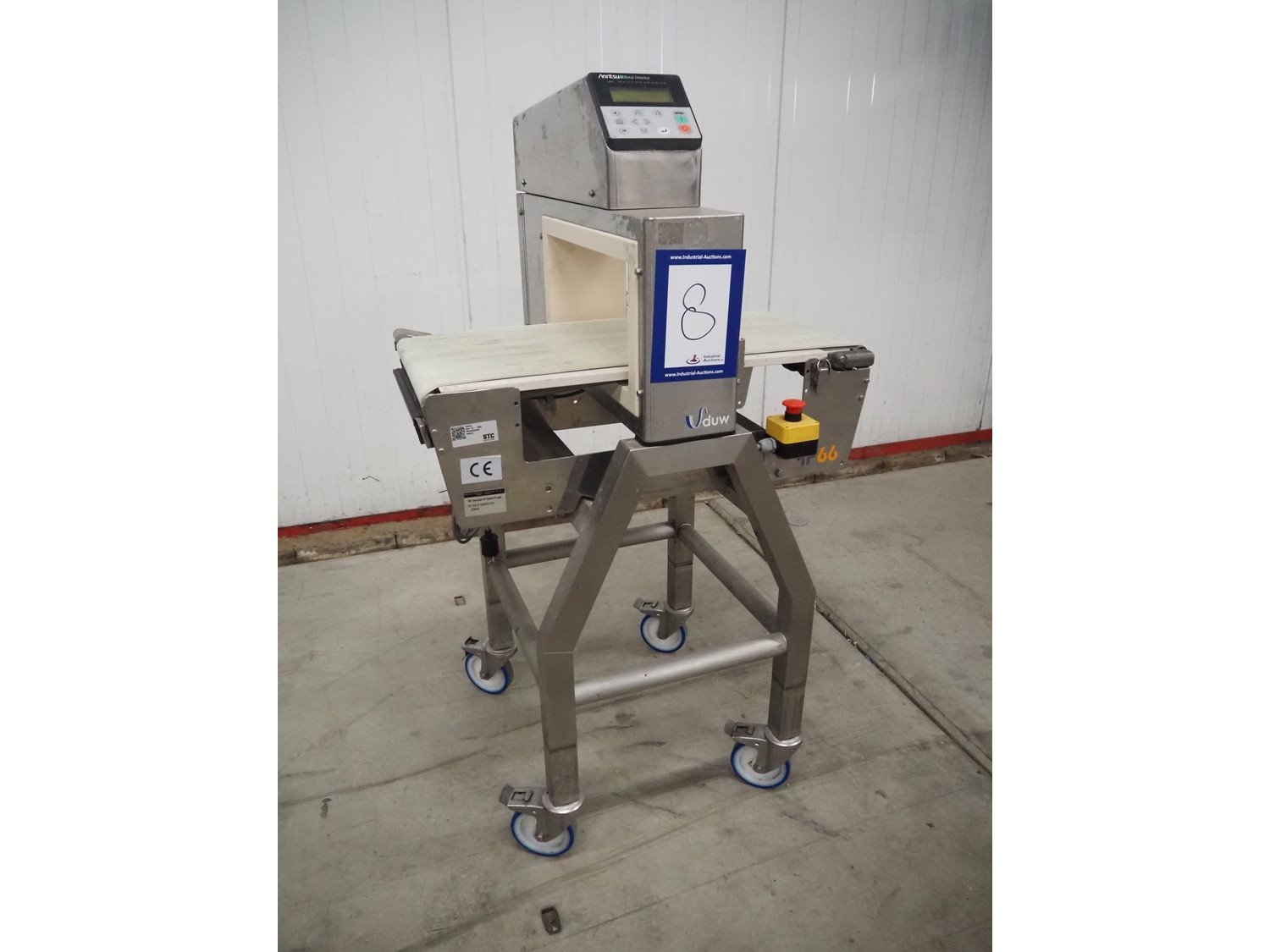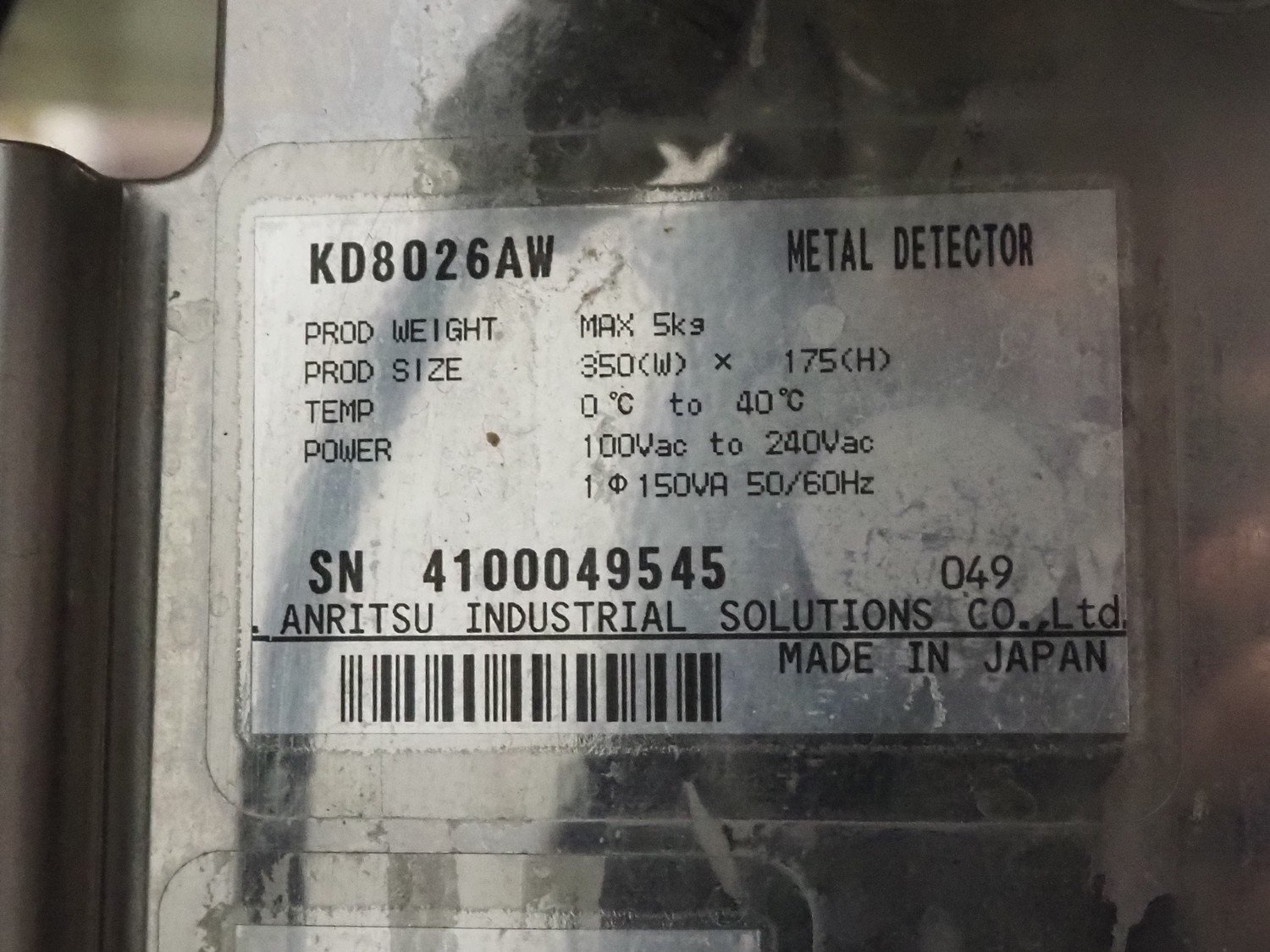 Anritsu mobile metal detector, type: KD8026AW, serial number: 4100049545, year of construction: 2004, 100-240 V, 1 Ph, 50/60 Hz, maximum product weight: 5 kg, plastic belt, belt width: 350 mm, clearance: 450 mm x 170 mm, total dimensions: 760 mm x 750 mm x 1130 mm. Kavel locatie: Bedrijfsweg 7, 8304 AA Emmeloord, Nederland