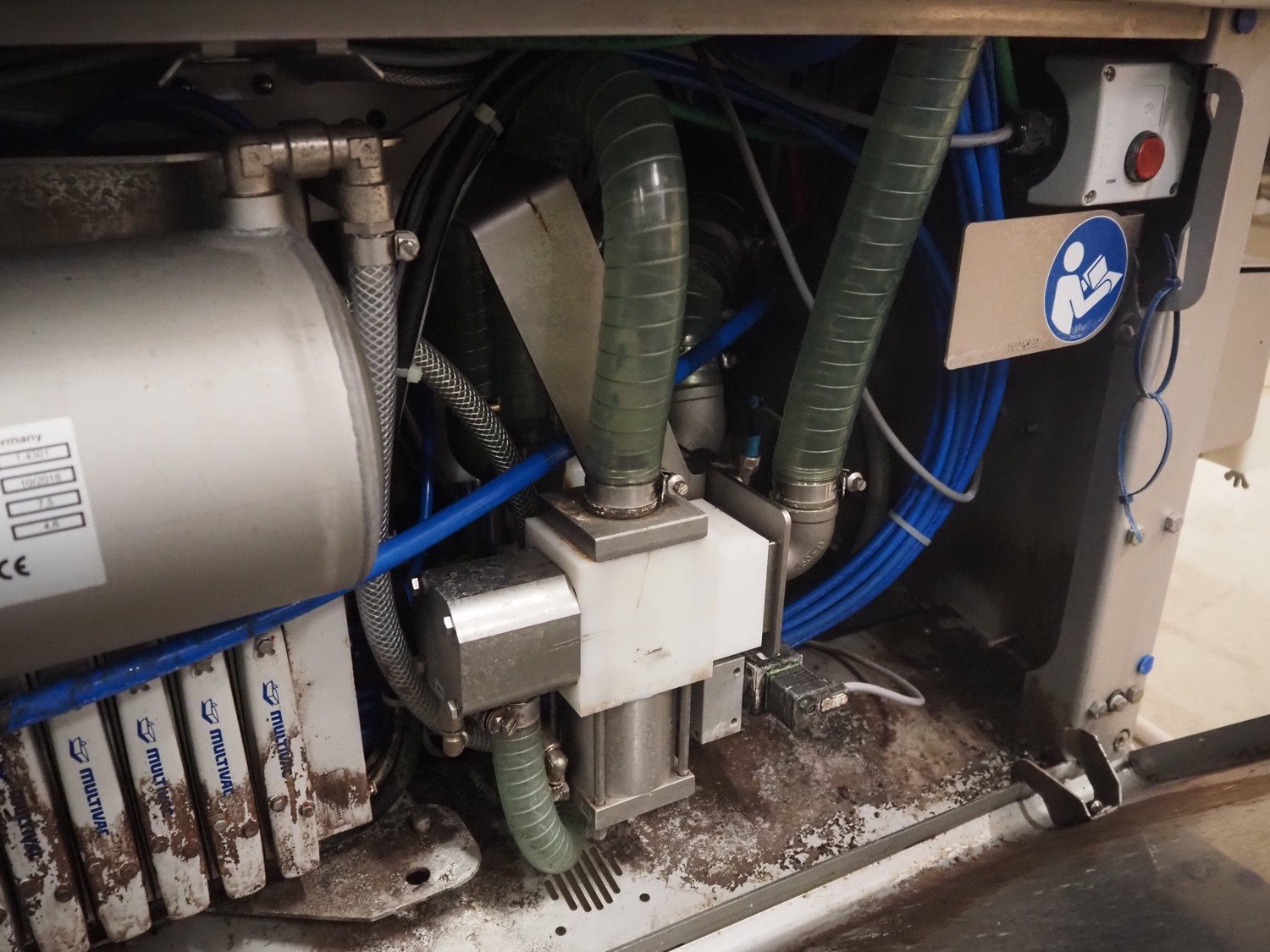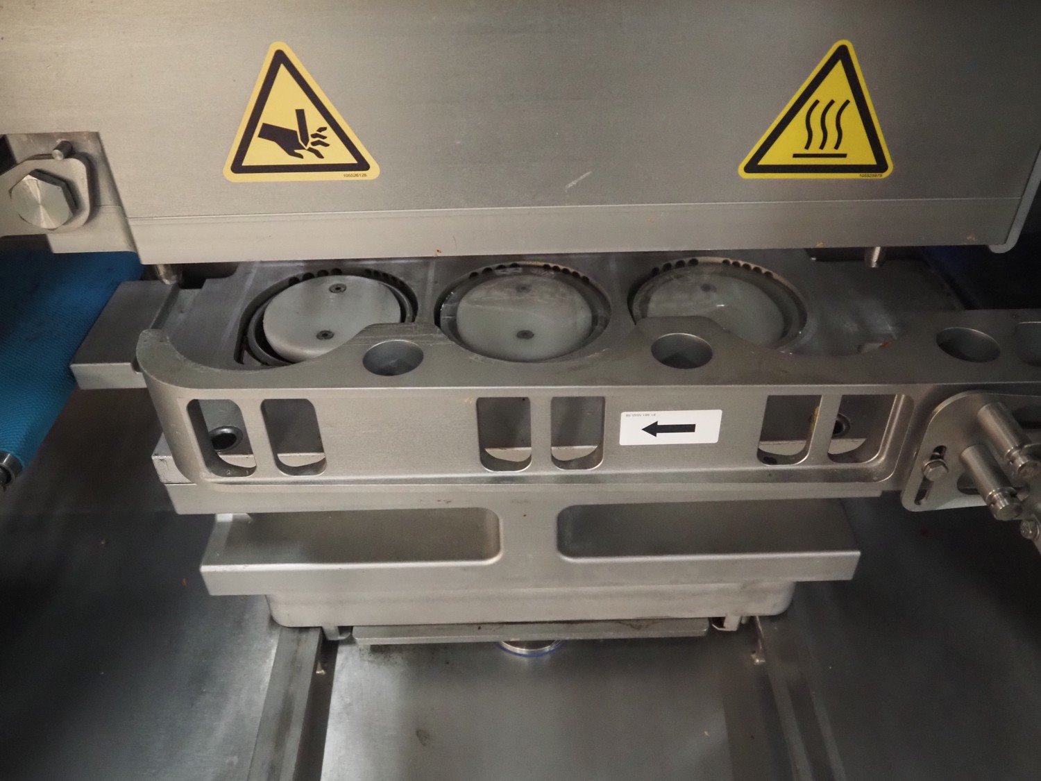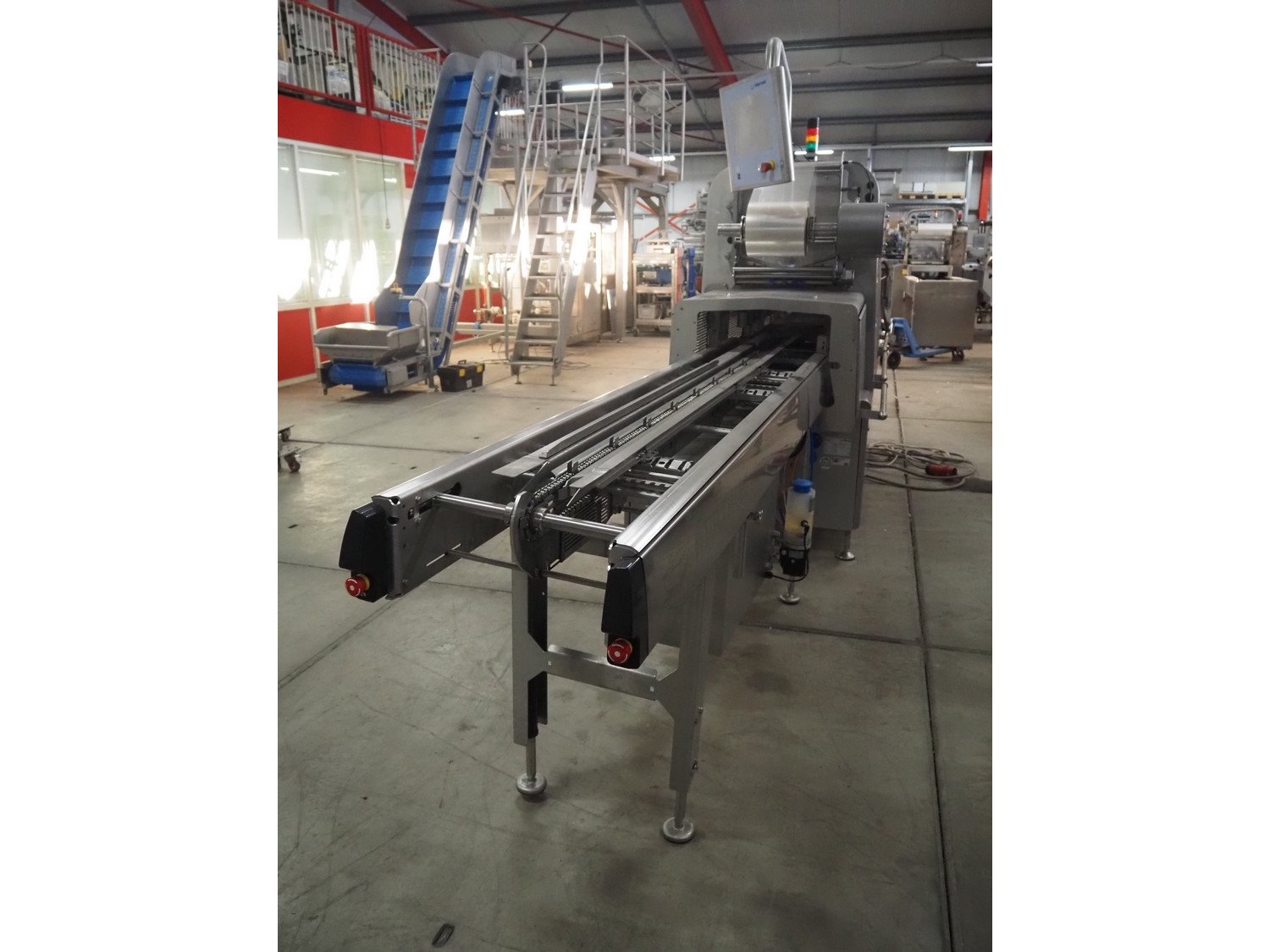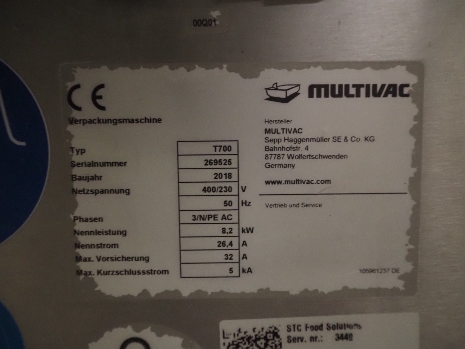 Multivac traysealer, type: T700, serial number: 269525, year of construction: 2018, 400/230 V, 3 Ph, 50 Hz, 26.4 A, 8.2 kW, operating hours: 10862, chain infeed belt, belt width: 185 mm, dye: (3x) Ø 120 mm, plastic outfeed belt, belt width: 245 mm, film width: 225 mm, total dimensions: 4900 mm x 1040 mm x 2050 mm. Without vacuum pump. Kavel locatie: Bedrijfsweg 7, 8304 AA Emmeloord, Nederland