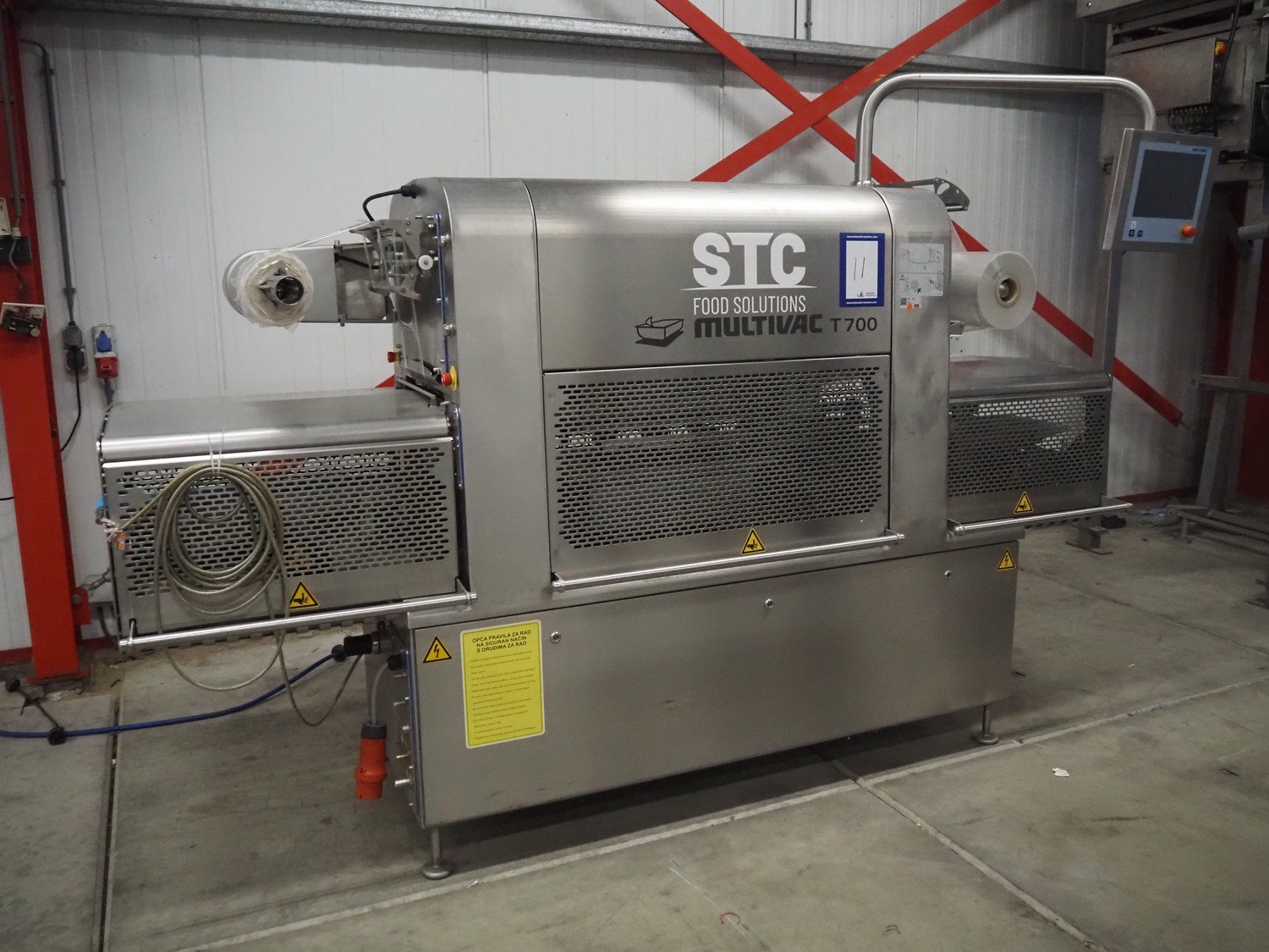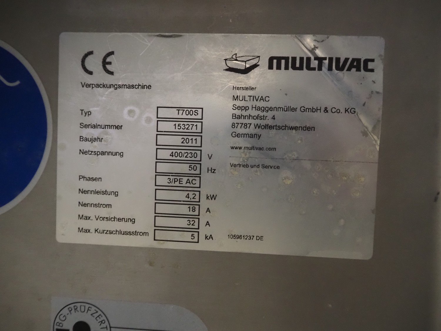 Multivac traysealer, type: T700S, serial number: 153271, year of construction: 2011, 400/230 V, 3 Ph, 50 Hz, 18/32 A, 4.2 kW, film width: 250 mm, plastic belt, belt width: 240 mm, dimensions dye: 175 mm x 120 mm, total dimensions: 2900 mm x 900 mm x 2050 mm. Technical condition unknown. Kavel locatie: Bedrijfsweg 7, 8304 AA Emmeloord, Nederland