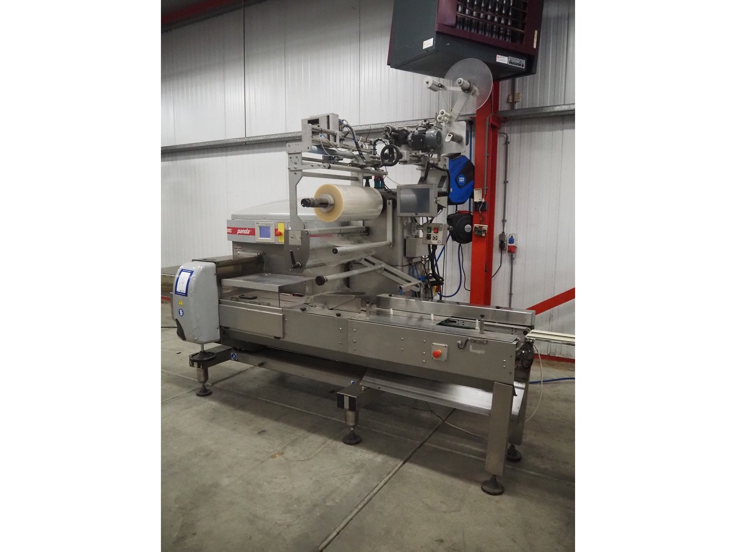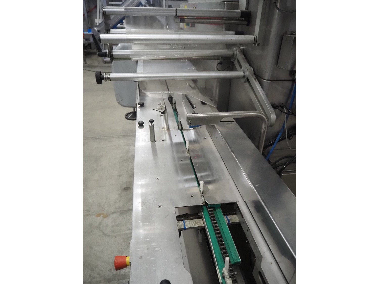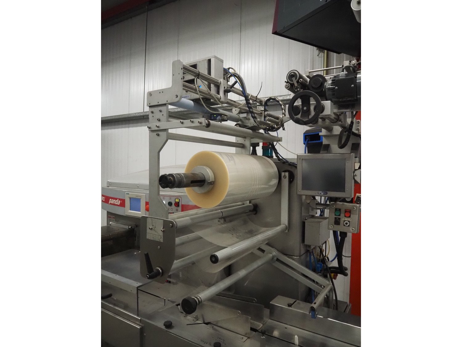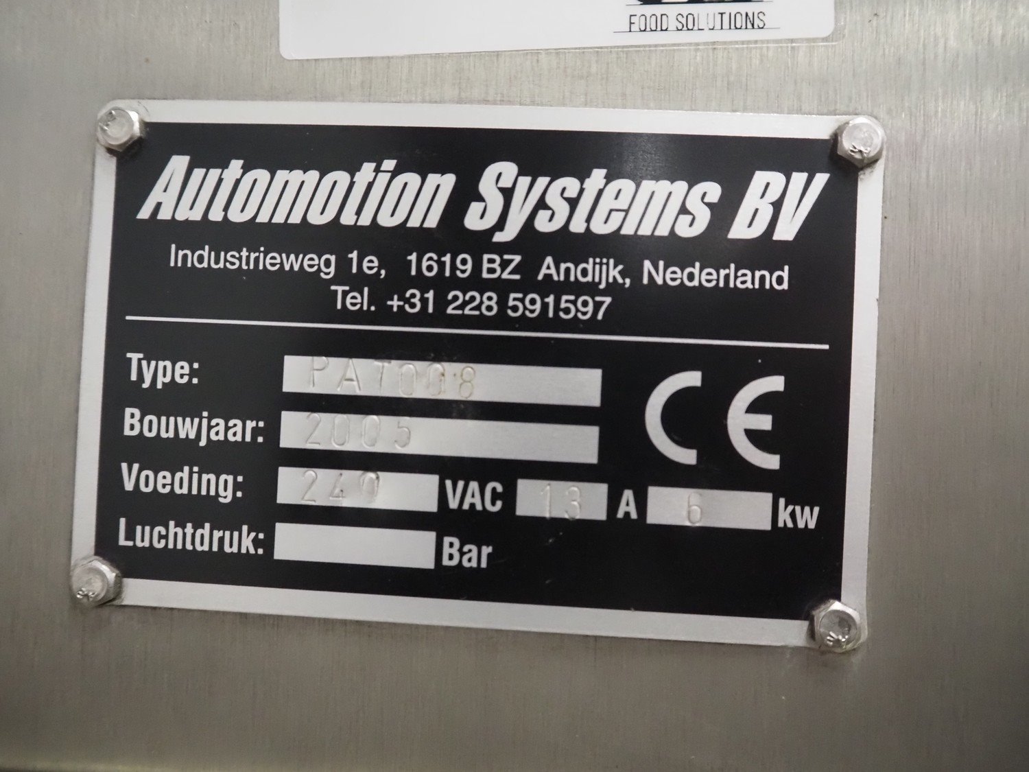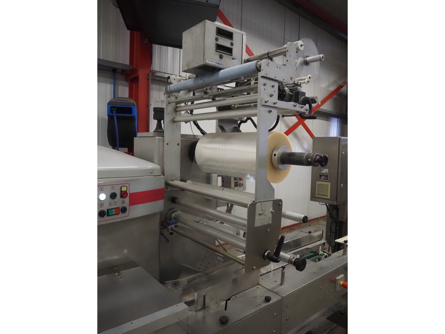 Record flowpacker with Automation Systems BV infeed belt, type infeed belt: PAT008, year of construction: 2005, 240 V, 13 A, 6 kW, plastic belt, belt width: 200 mm, total dimensions infeed belt: 2700 mm x 800 mm x 1800 mm, model flowpacker: PANDA MD ST, serial number: 15-06-297, year of construction: 2006, 6 kW, film width: 480 mm, seal length: 280 mm, plastic outfeed belt, belt width: 200 mm, total dimensions: 3300 mm x 1400 mm x 2400 mm. Kavel locatie: Bedrijfsweg 7, 8304 AA Emmeloord, Nederland
