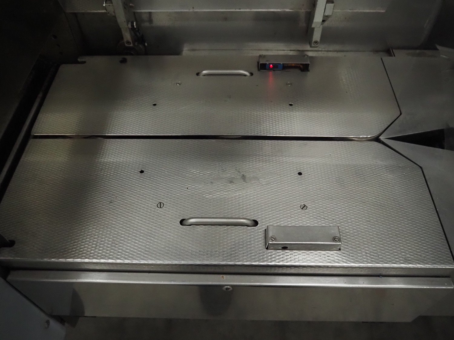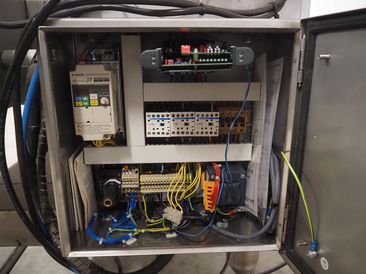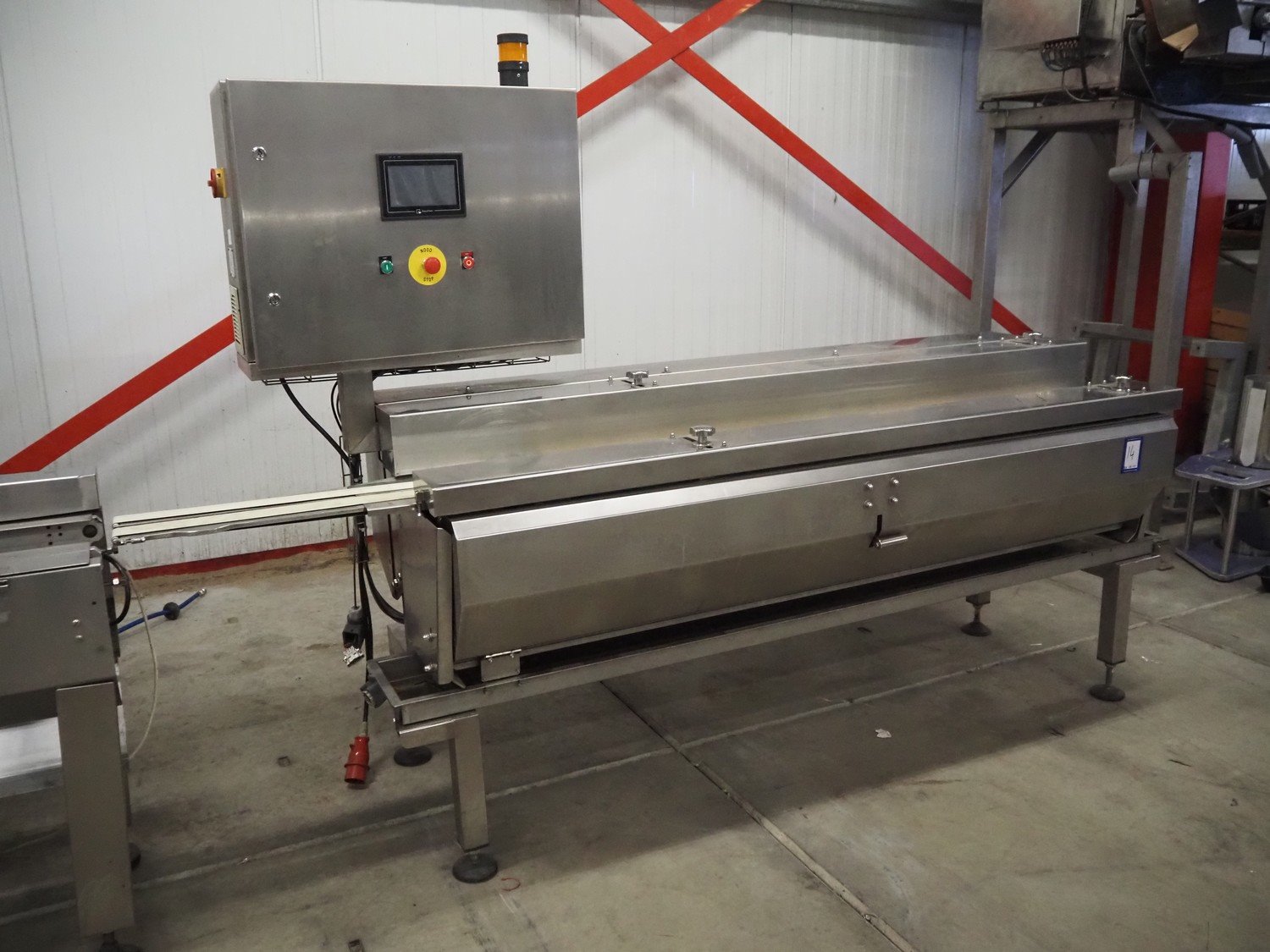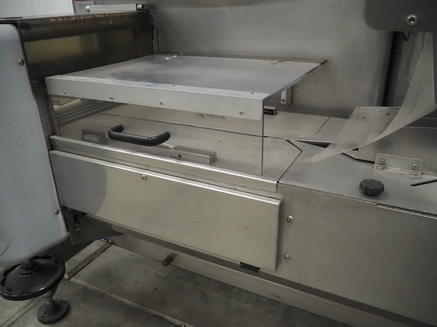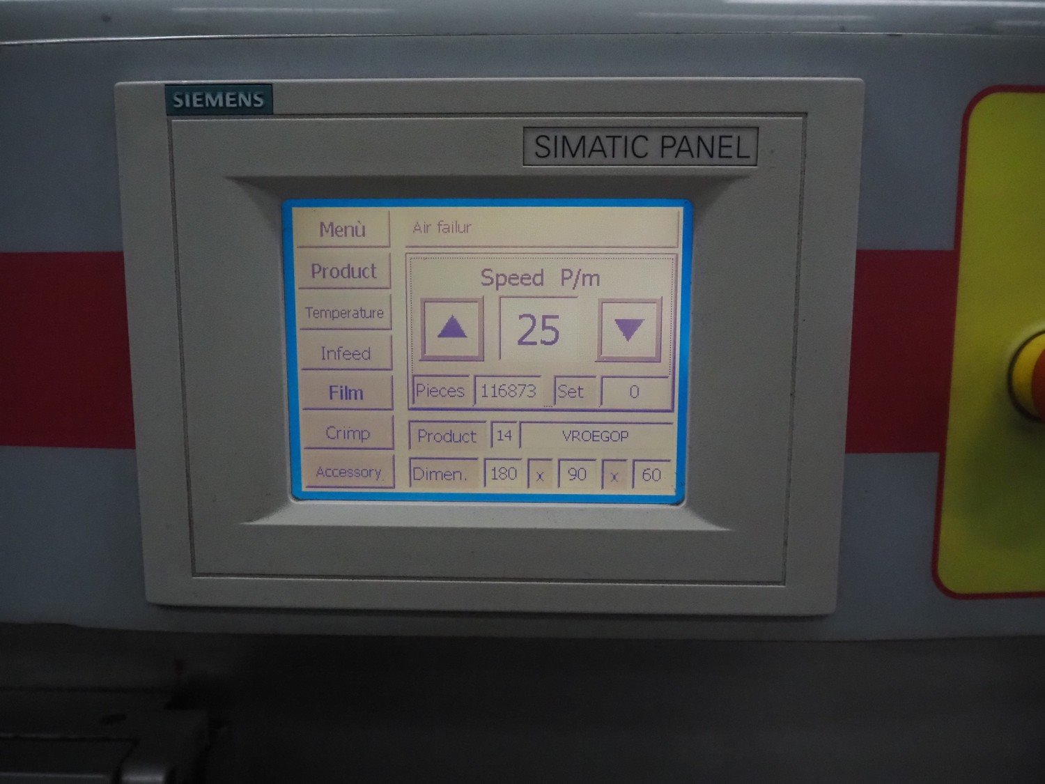 Record flowpacker with Automation Systems BV infeed belt, type infeed belt: PAT008, year of construction: 2005, 240 V, 13 A, 6 kW, plastic belt, belt width: 200 mm, total dimensions infeed belt: 2700 mm x 800 mm x 1800 mm, model flowpacker: PANDA MD ST, serial number: 15-06-297, year of construction: 2006, 6 kW, film width: 480 mm, seal length: 280 mm, plastic outfeed belt, belt width: 200 mm, total dimensions: 3300 mm x 1400 mm x 2400 mm. Kavel locatie: Bedrijfsweg 7, 8304 AA Emmeloord, Nederland