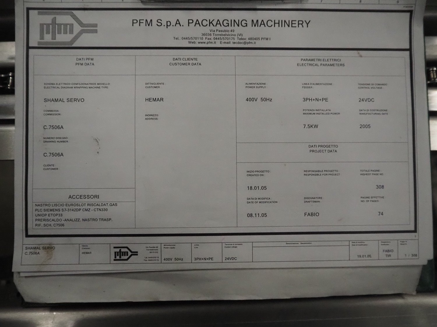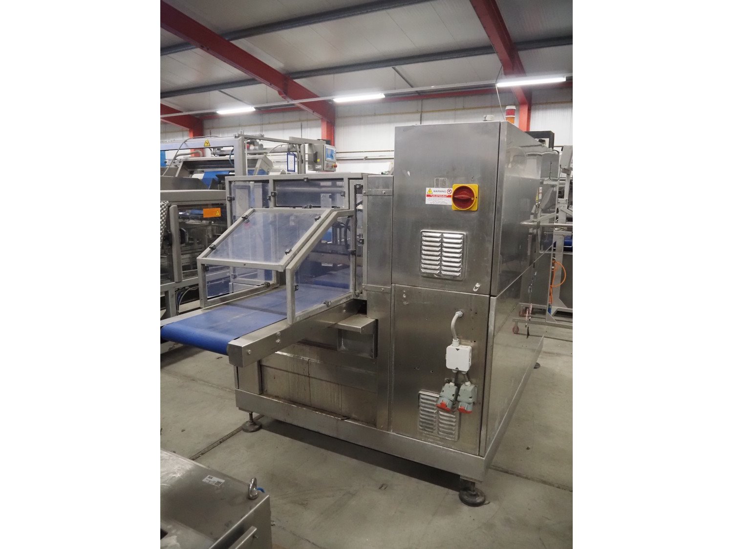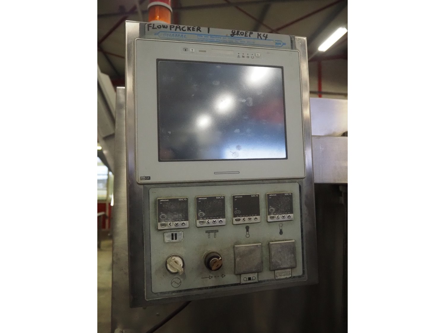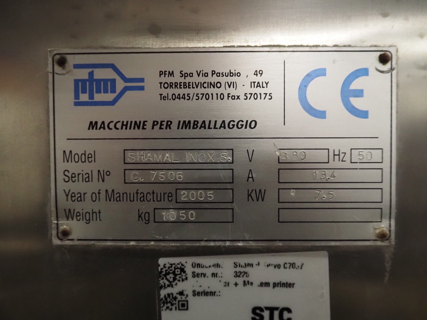 PFM flowpacker, model: SHAMAL INOX S, serial number: C. 7506, year of construction: 2005, 380 V, 50 Hz, 13.4 A, 7.5 kW, weight: 1050 kg, plastic belt, belt width: 350 mm, seal length: 350 mm, total dimensions: 3300 mm x 1500 mm x 1800 mm. Kavel locatie: Bedrijfsweg 7, 8304 AA Emmeloord, Nederland