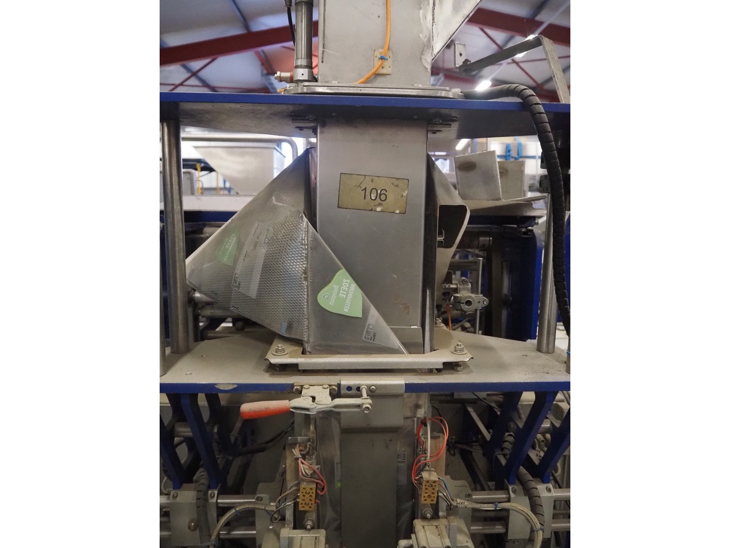 Jasa Packaging Systems vertical form-fill and seal machine, type: J350 0, machine number: 11217, year of construction: 2005, 400 V, 3 Ph, 16 A, 4.51 kW, film width: 610 mm, dimensions clearance: 160 mm x 100 mm, seal length: 360 mm, seal width: 390 mm, total dimensions: 2100 mm x 1230 mm x 2400 mm. Cover broken. Kavel locatie: Bedrijfsweg 7, 8304 AA Emmeloord, Nederland