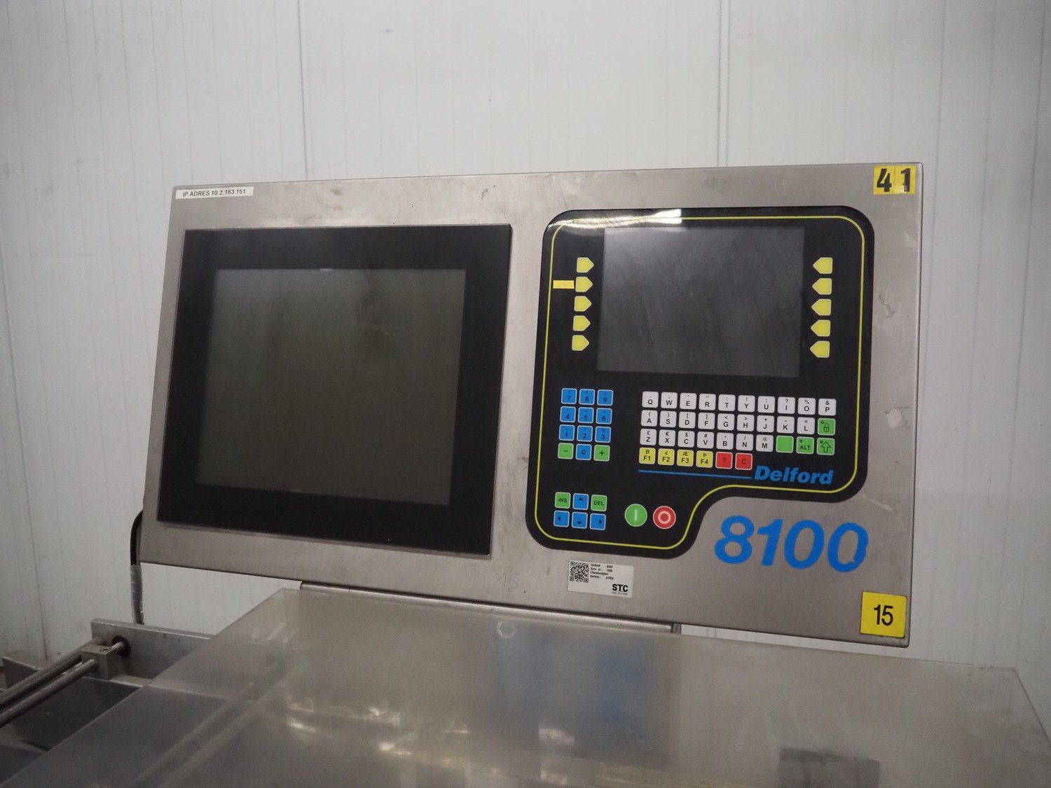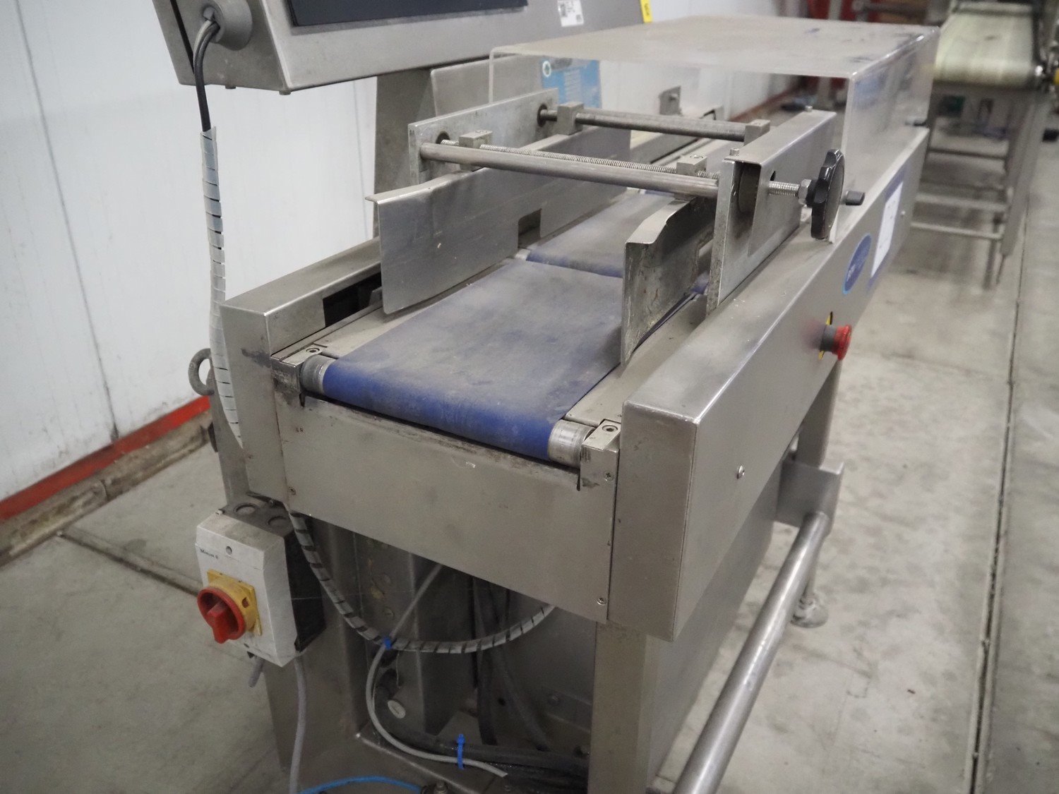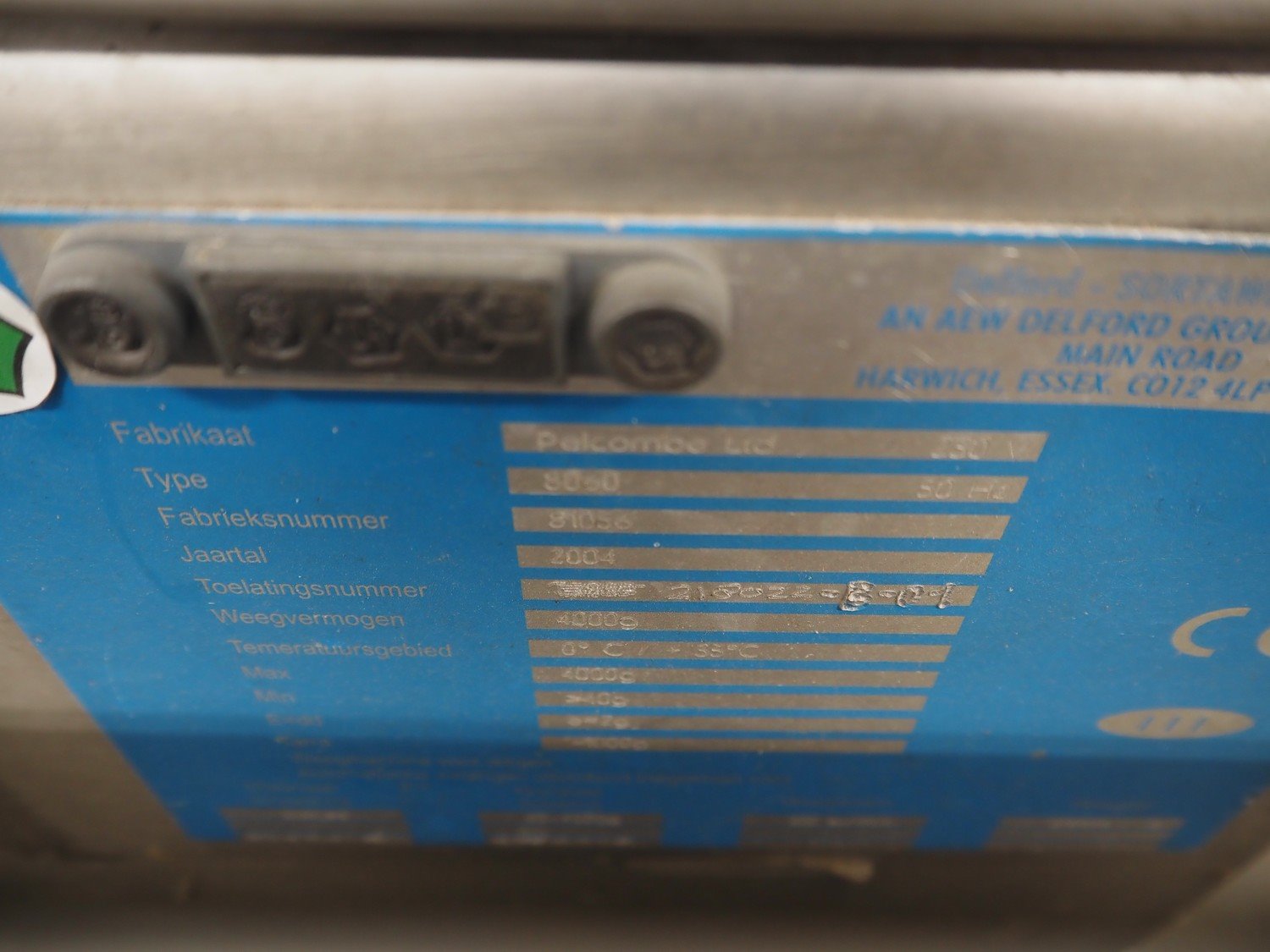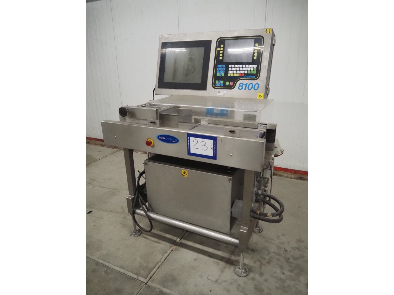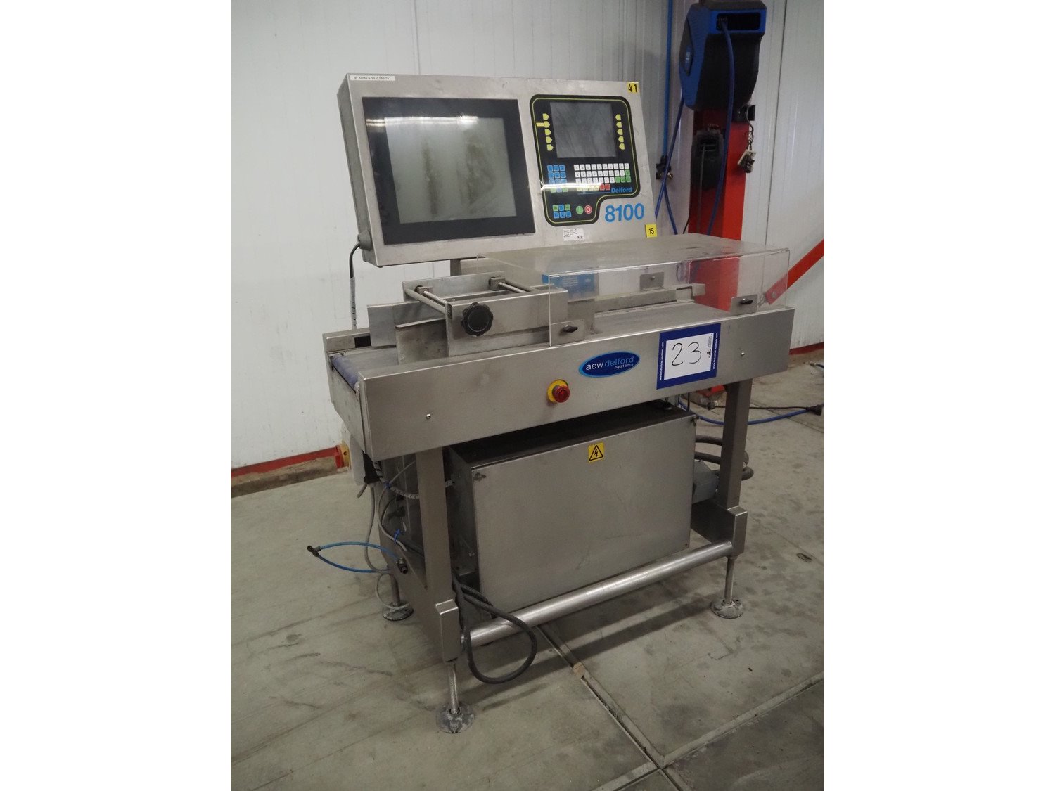 AEW Delford checkweigher, type: 8060, fabrication number: 81056, year of construction: 2004, 230 V, 50 Hz, weighing range: 40-4000 g, e=2g, temperature range: 0-35 °C, plastic belt, belt width: 195 mm, total dimensions: 700 mm x 1200 mm x 1600 mm. Kavel locatie: Bedrijfsweg 7, 8304 AA Emmeloord, Nederland