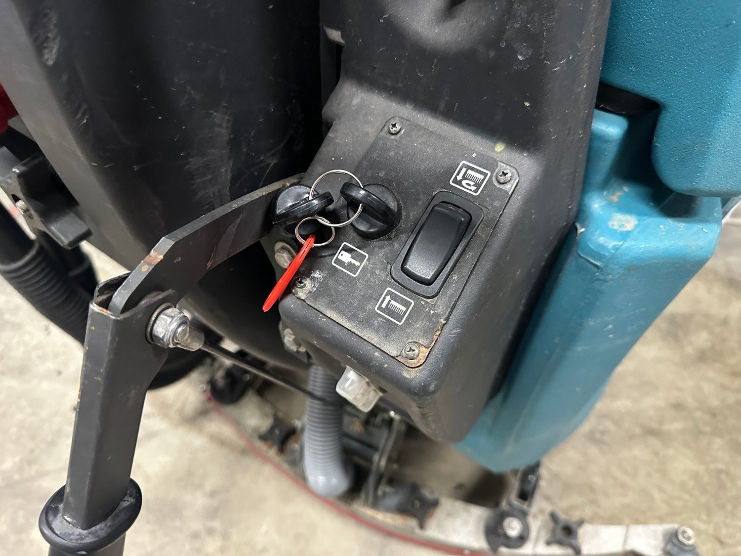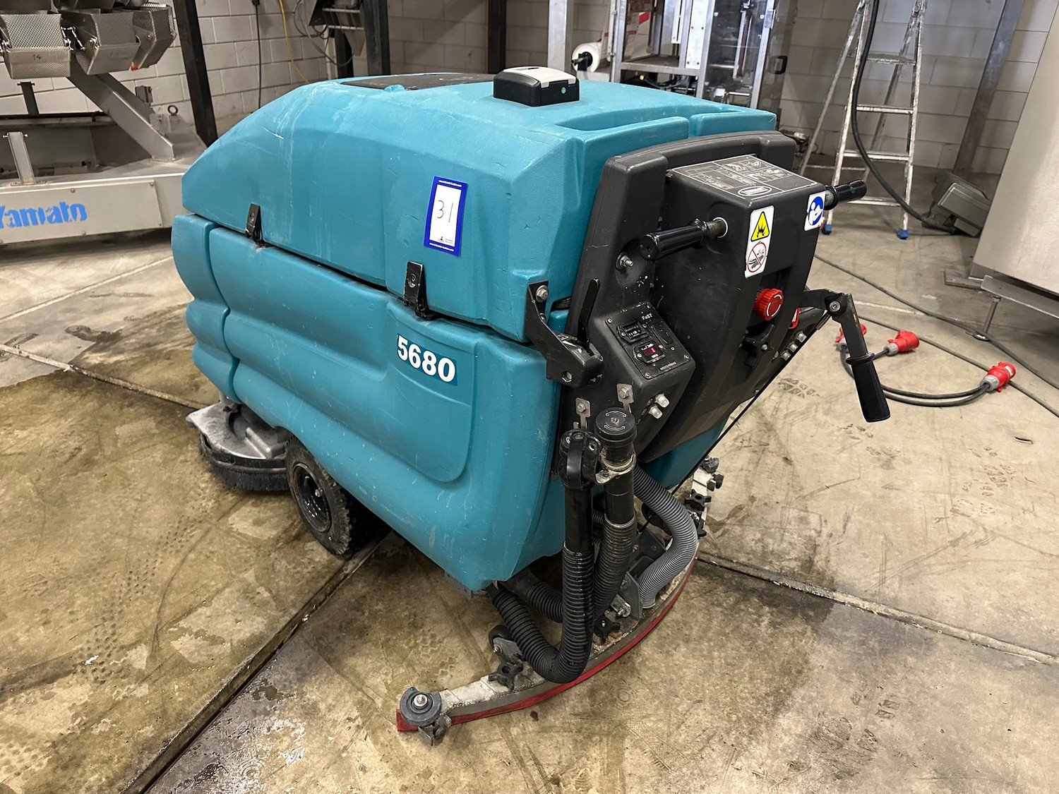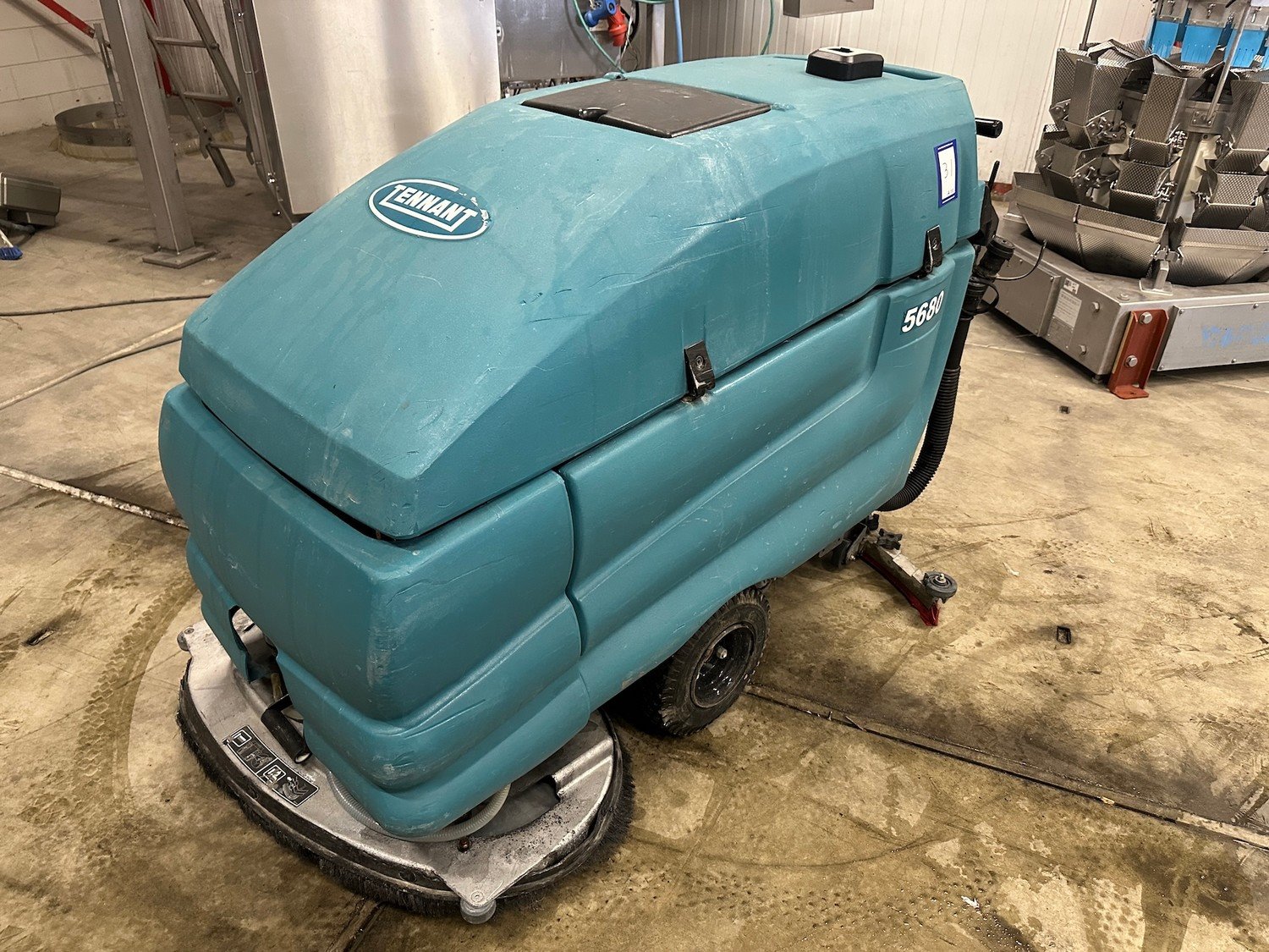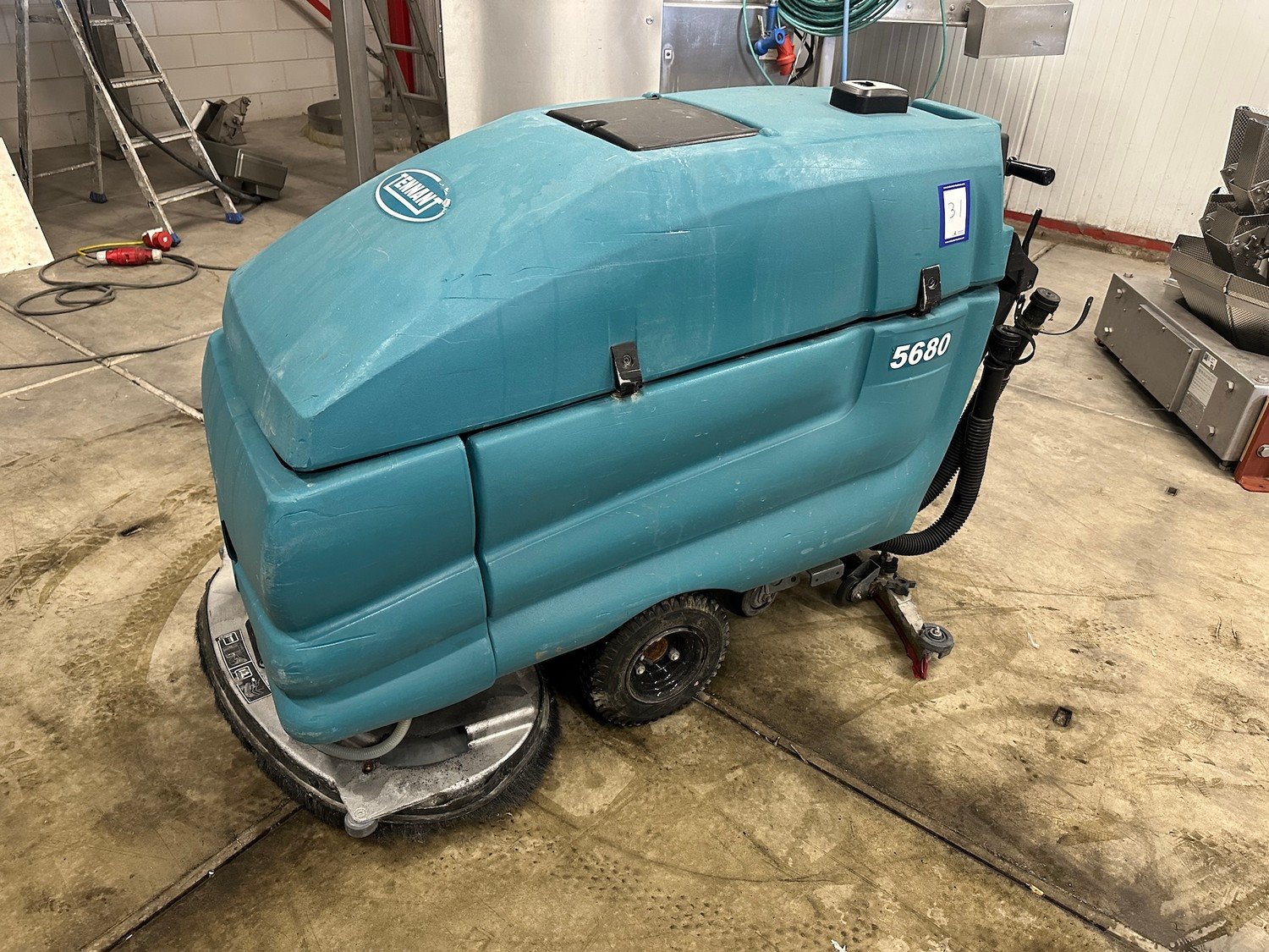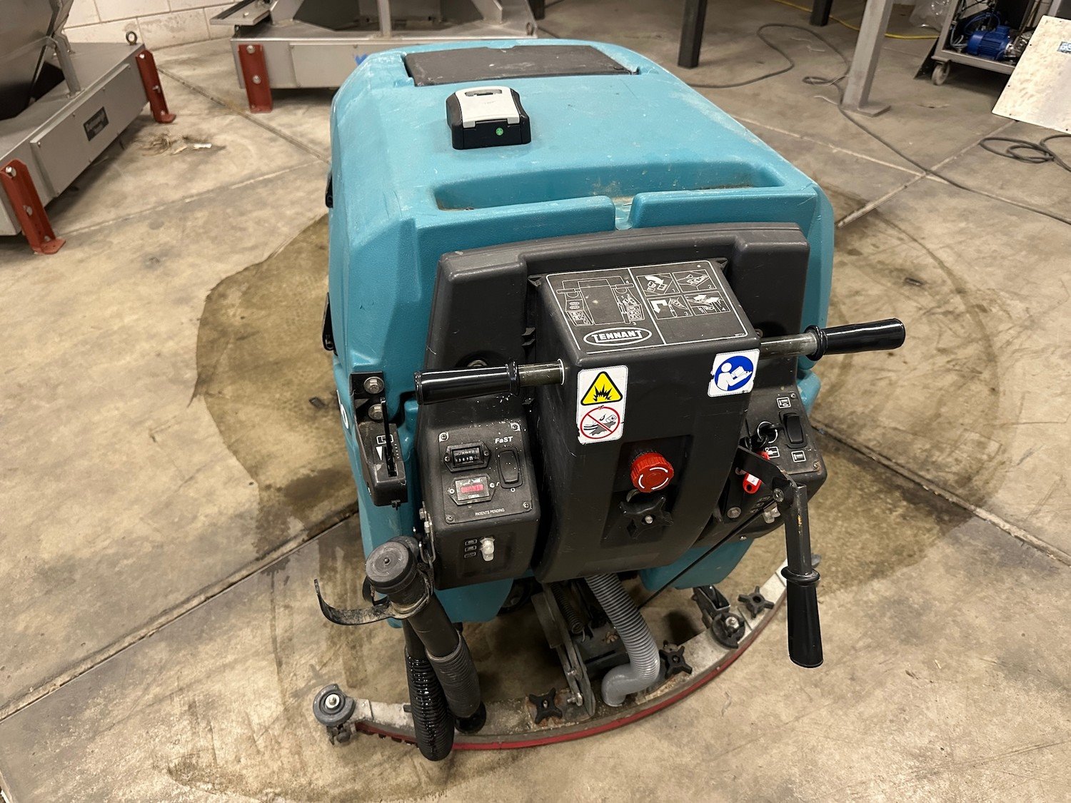 Tennant floor scrubbing machine, dimensions: 1550 mm x 700 mm x 1100 mm. Kavel locatie: Bedrijfsweg 7, 8304 AA Emmeloord, Nederland